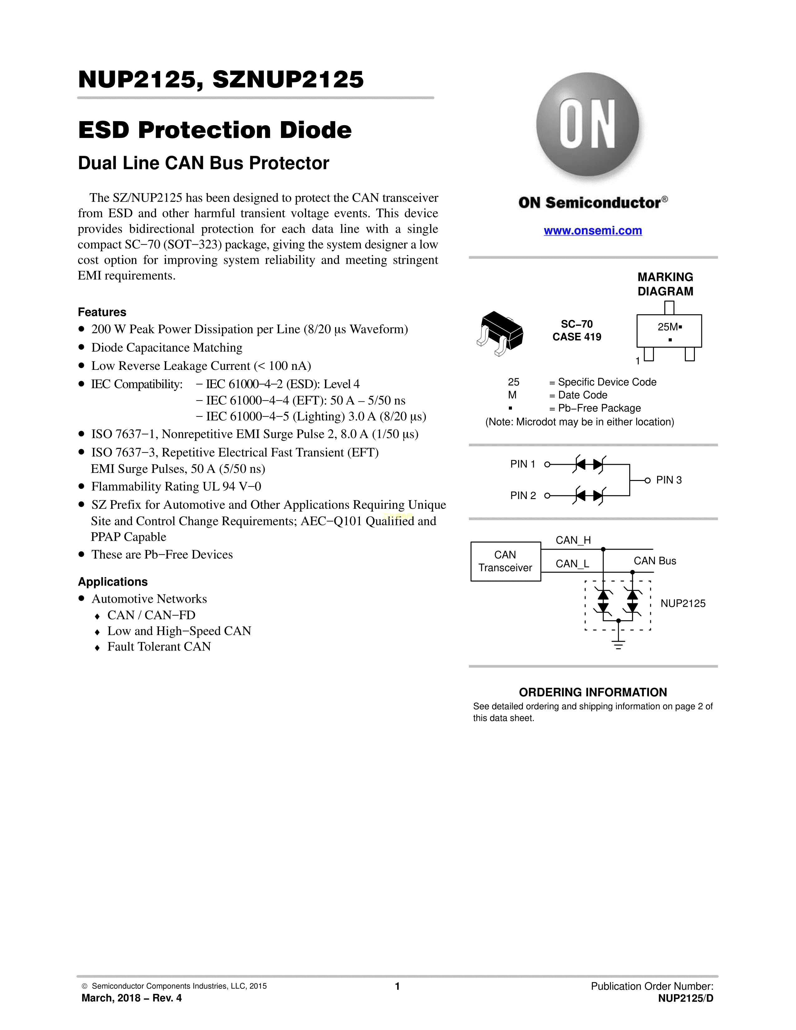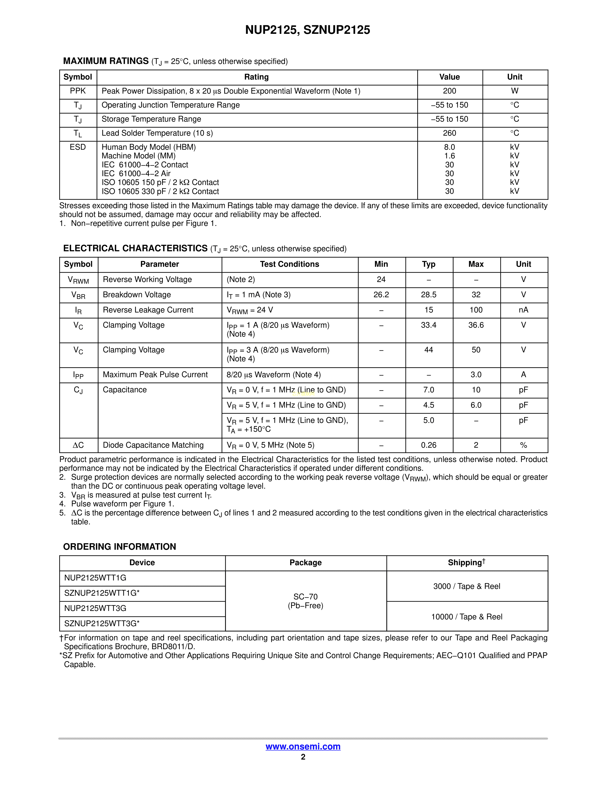 NUP2125WTT1G数据手册SC-70封装onsemi(安森美)PDF规格书,中英文下载