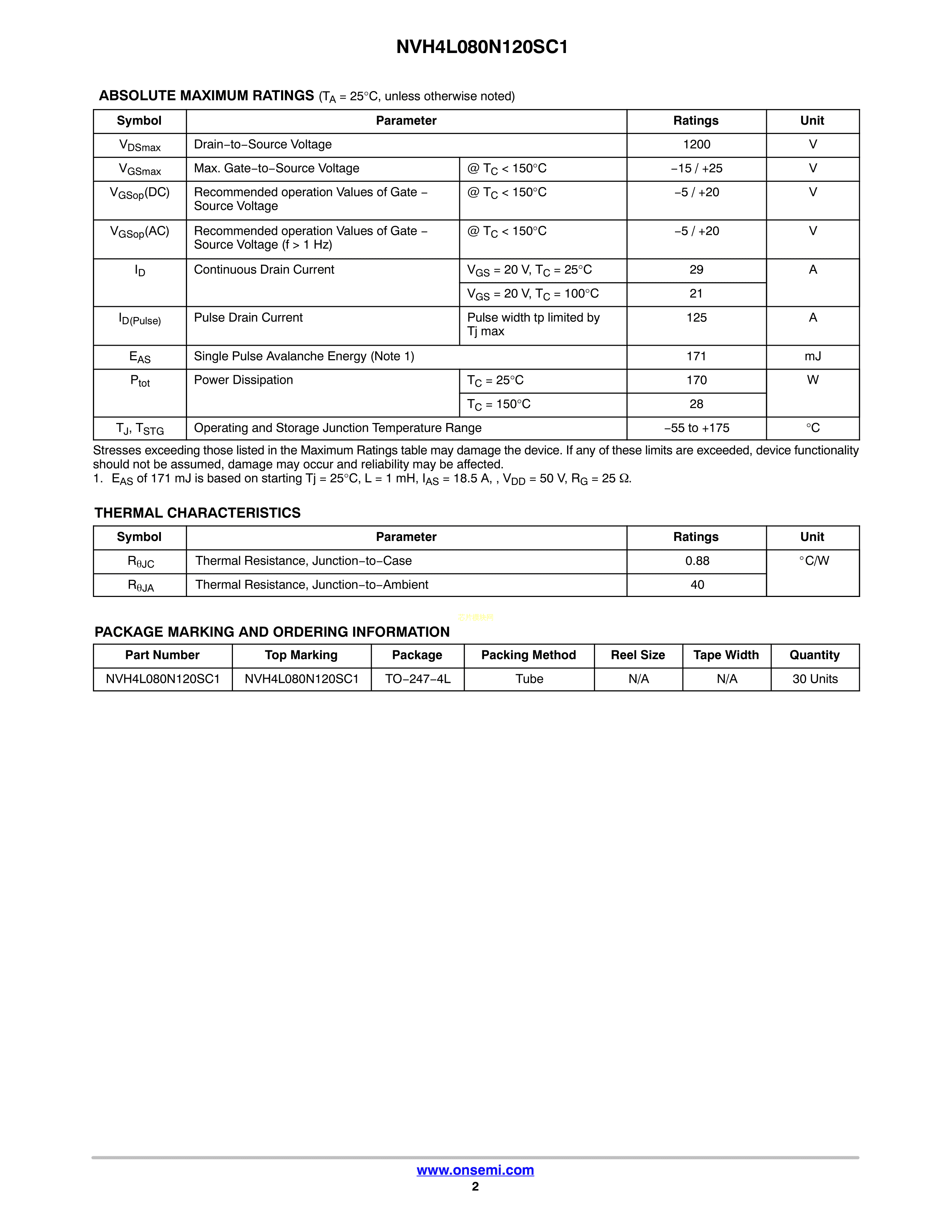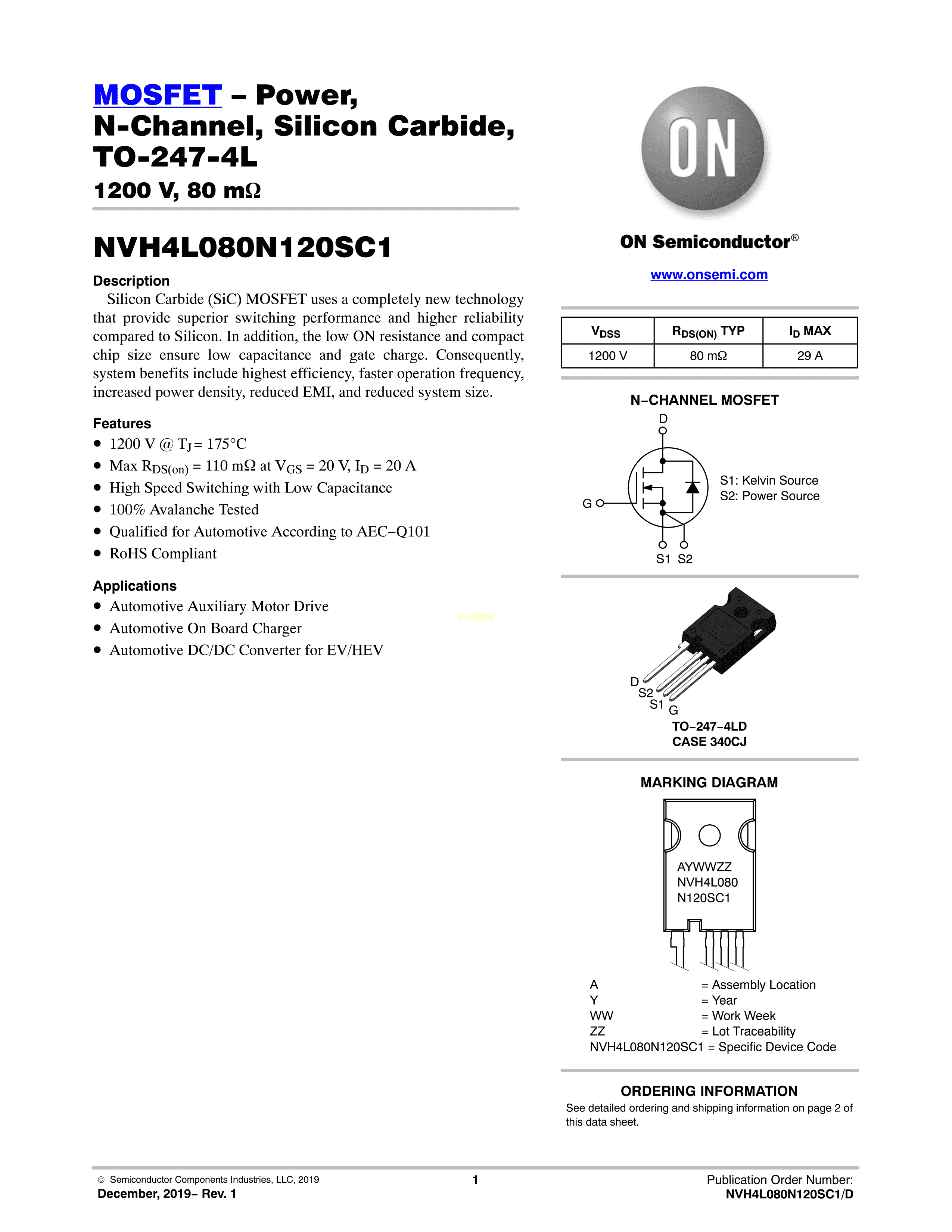 NVH4L080N120SC1数据手册TO-247-4封装onsemi(安森美)PDF规格书,中英文
