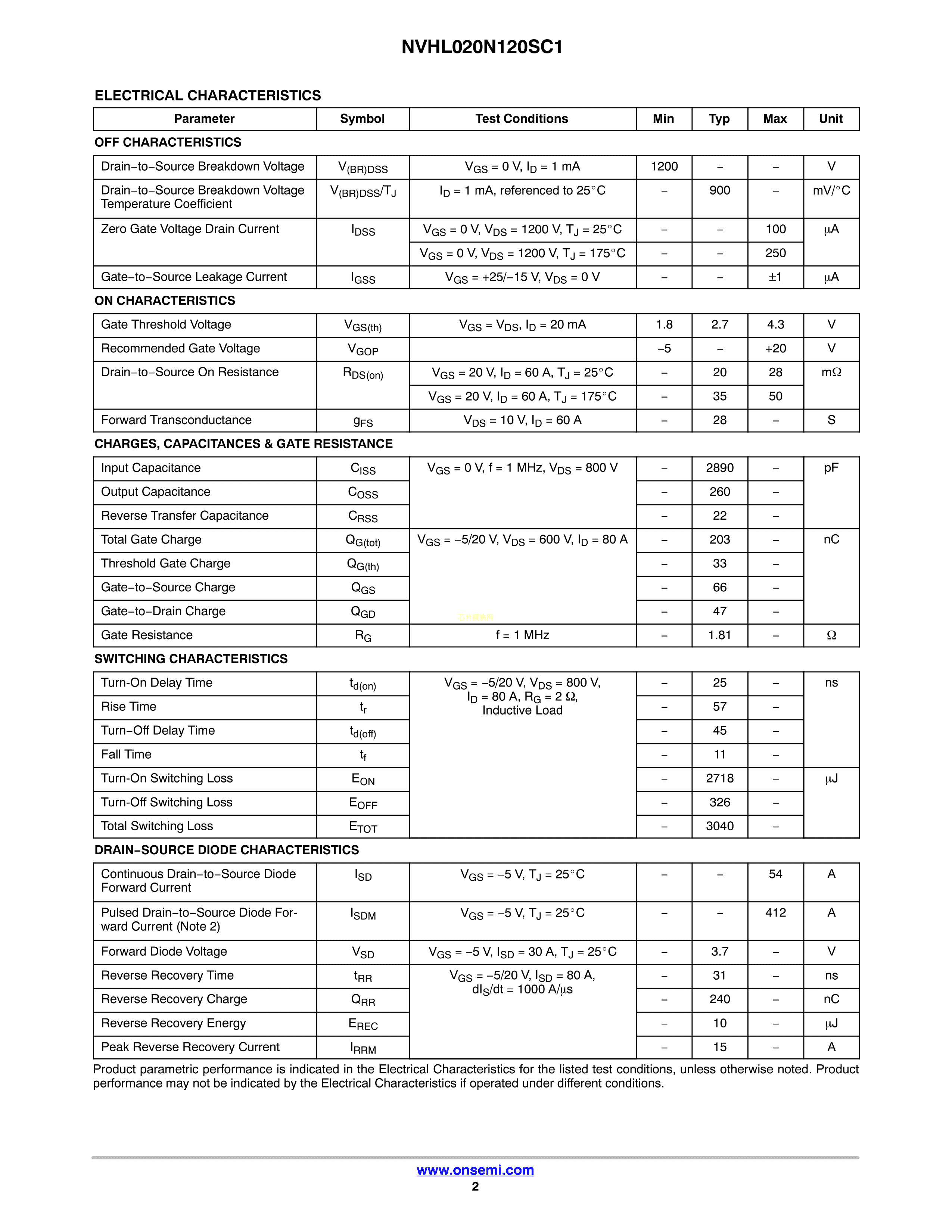 NVHL020N120SC1数据手册TO-247-3LD封装onsemi(安森美)PDF规格书,中英