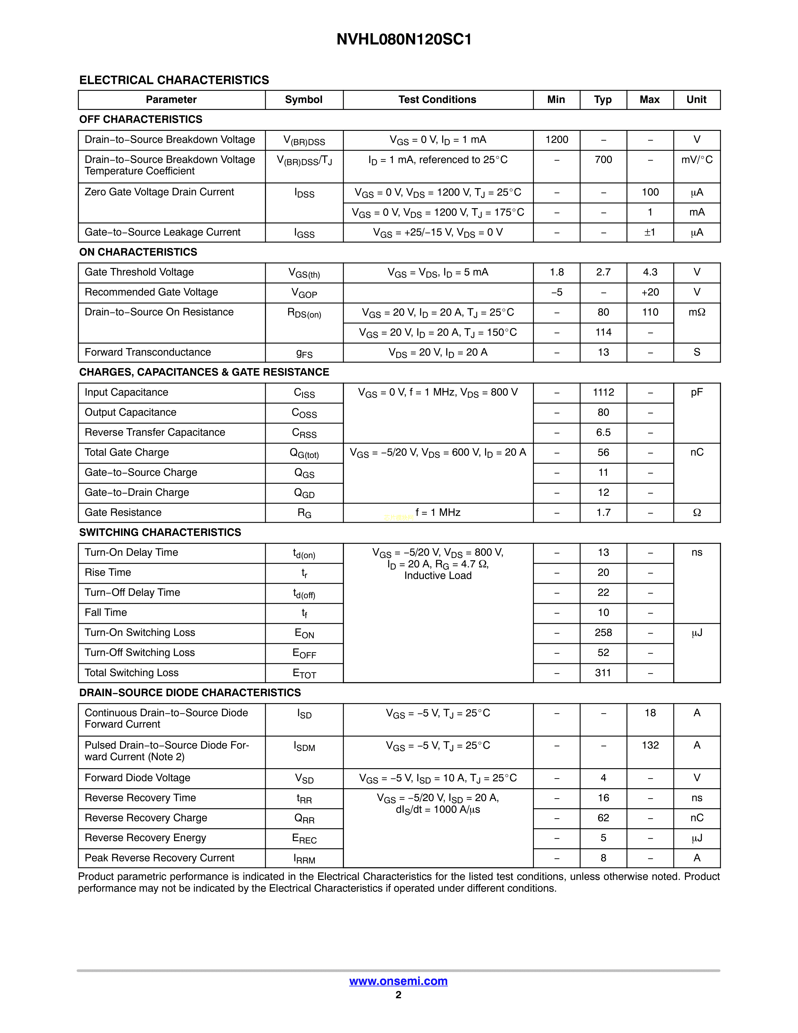 NVHL080N120SC1数据手册TO-247-3封装onsemi(安森美)PDF规格书,中英文下