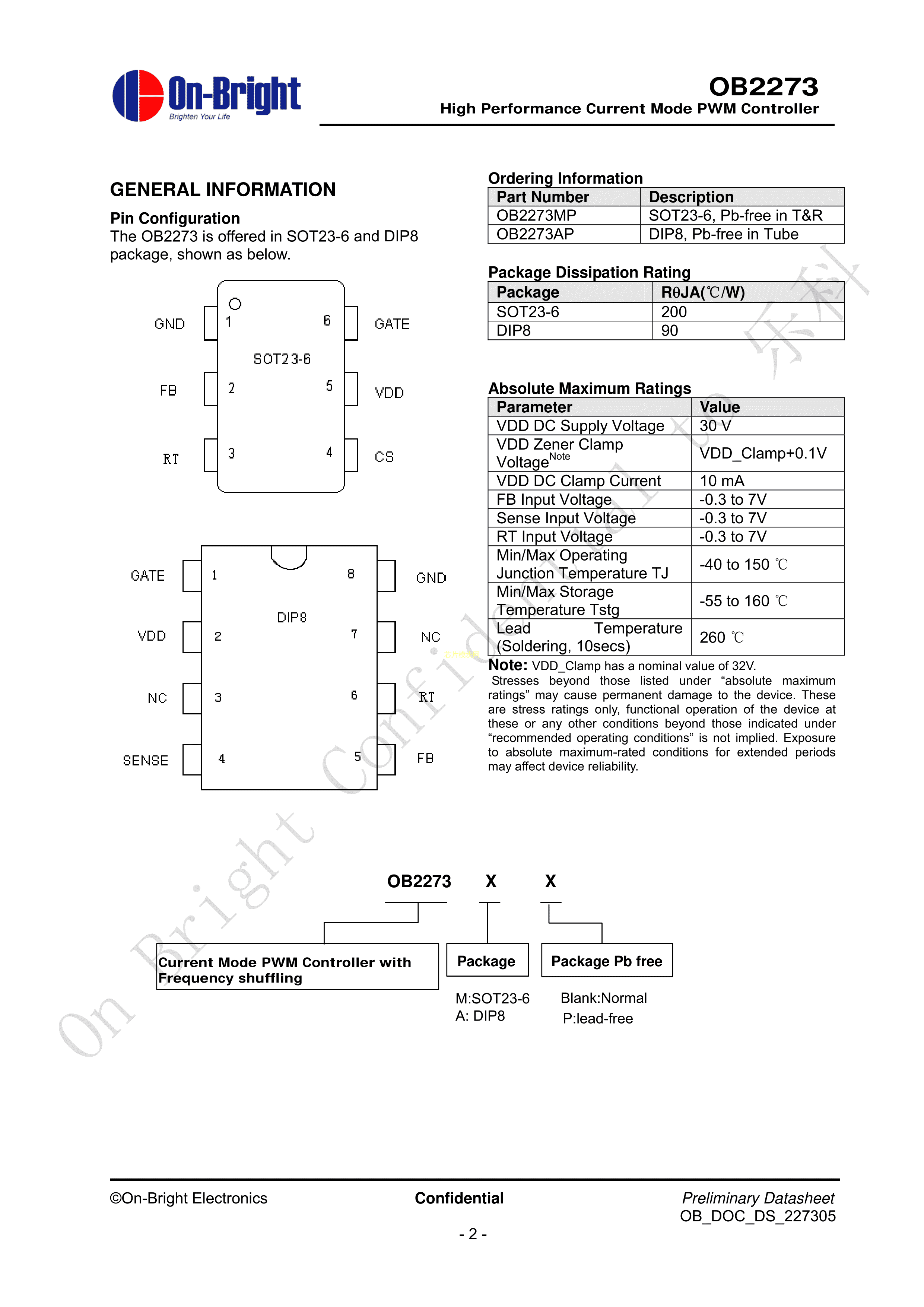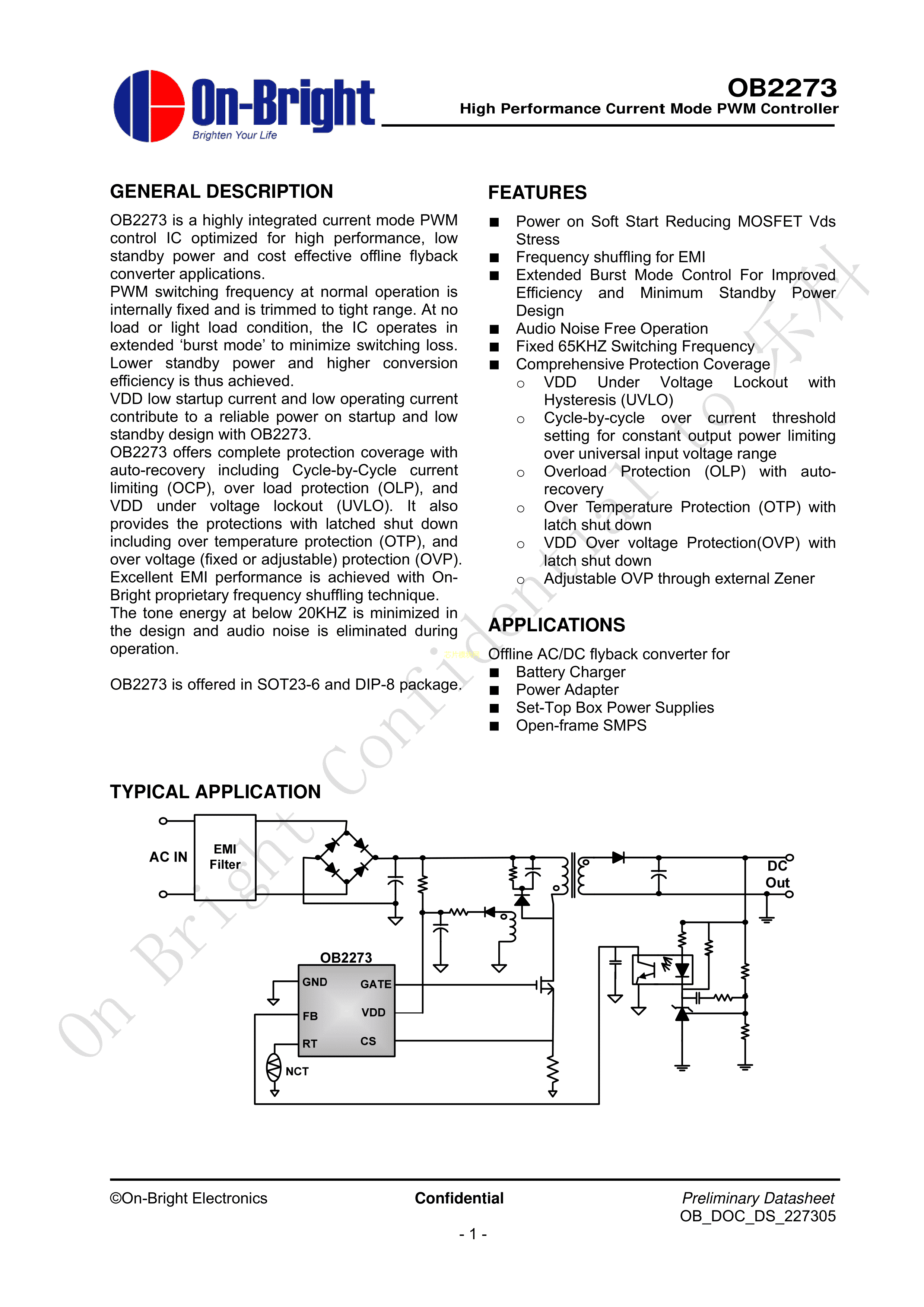 OB2273MP数据手册SOT-23-6封装OB(昂宝)PDF规格书,中英文下载