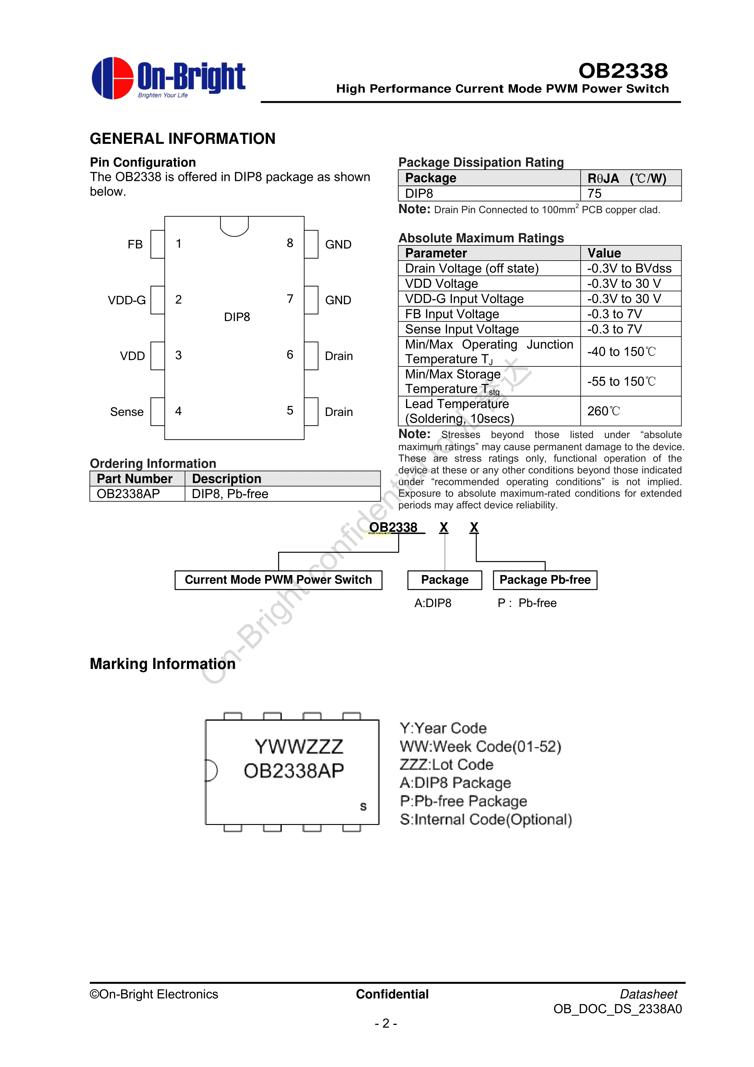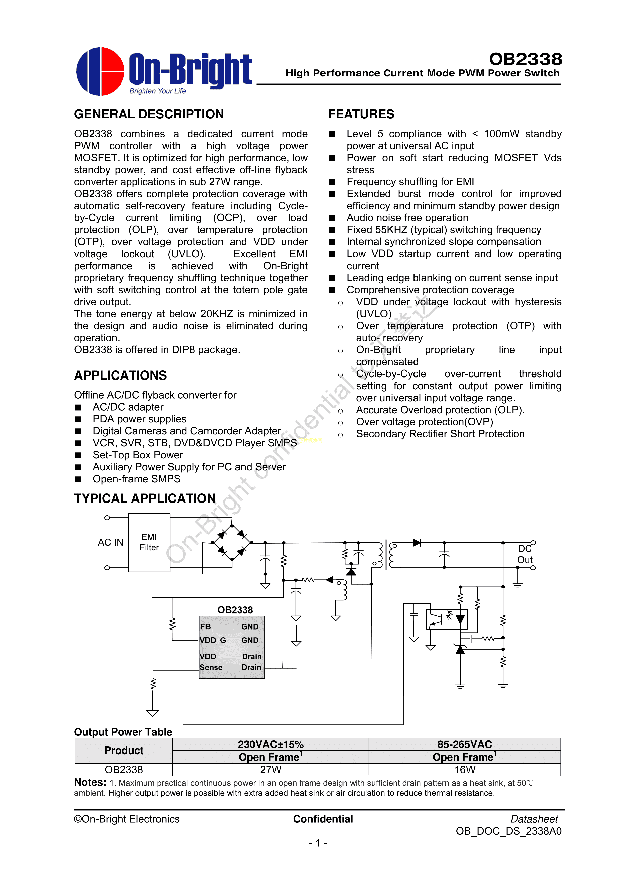 OB2338AP数据手册DIP-8封装OB(昂宝)PDF规格书,中英文下载