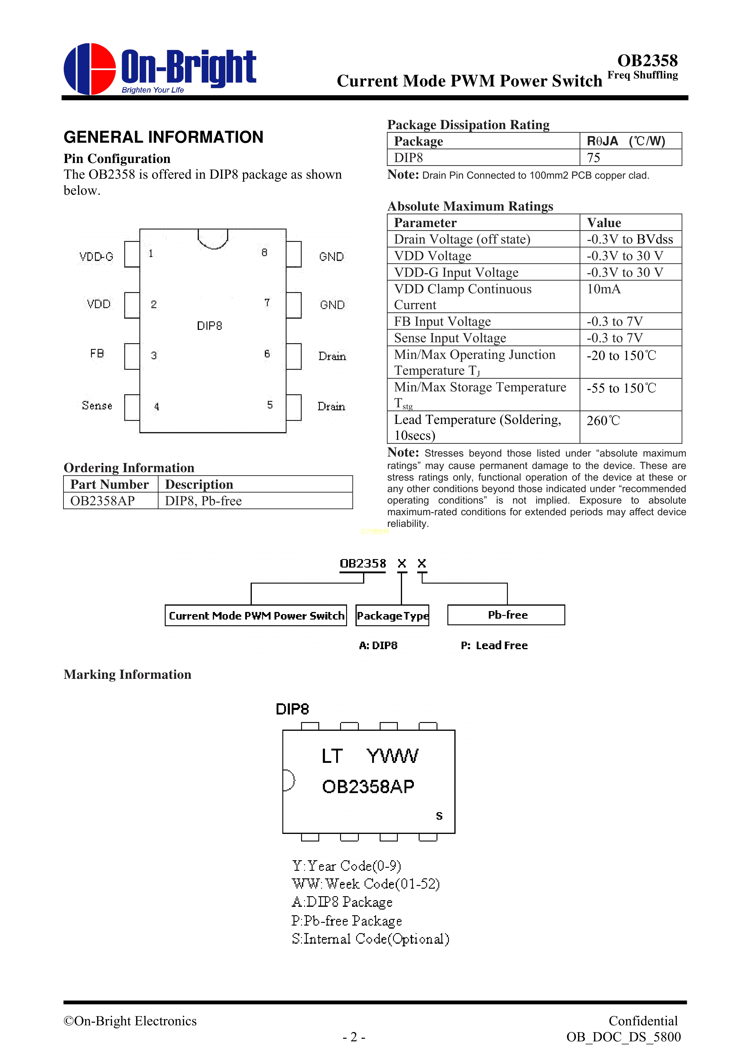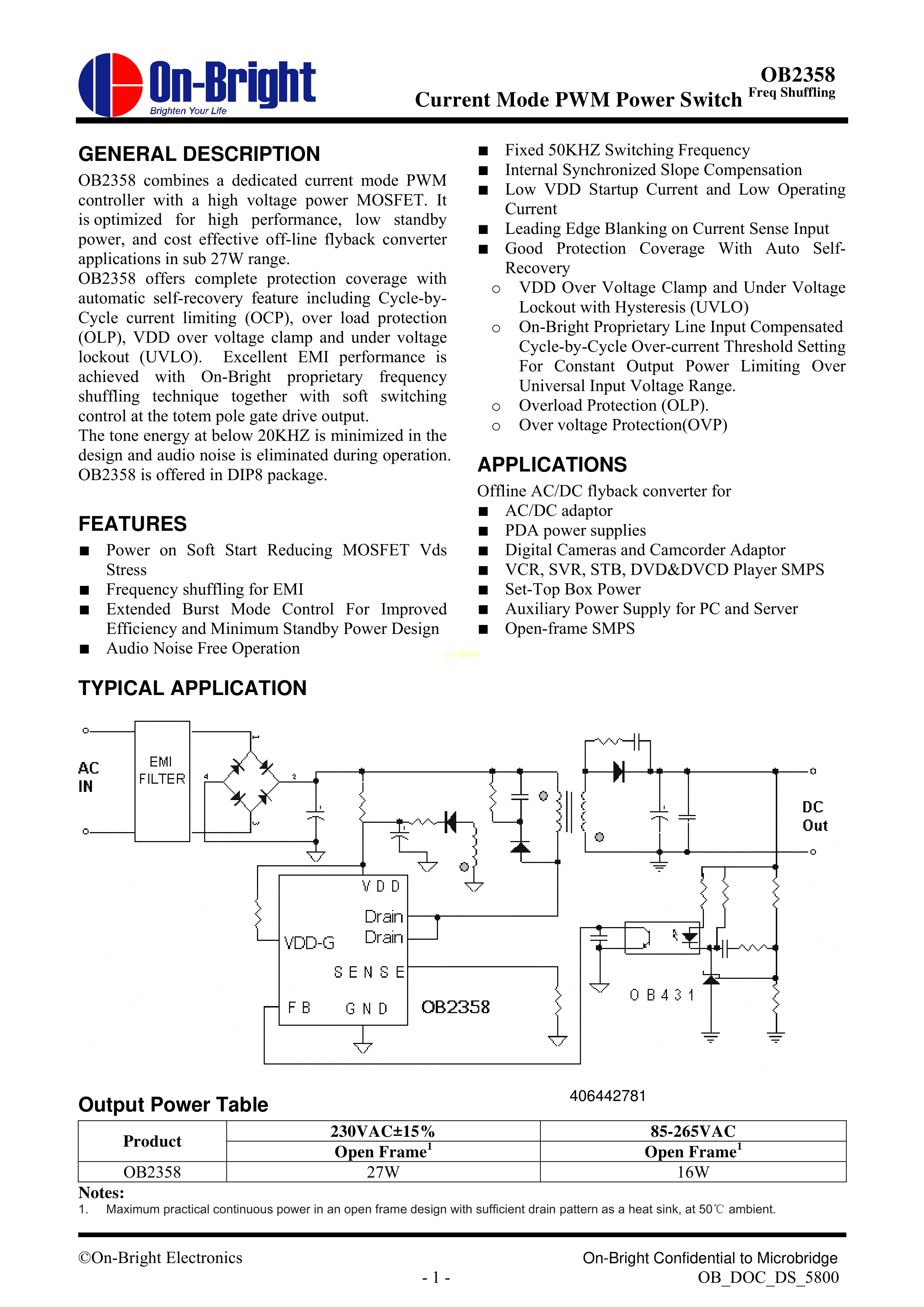 OB2358AP数据手册DIP-8封装OB(昂宝)PDF规格书,中英文下载