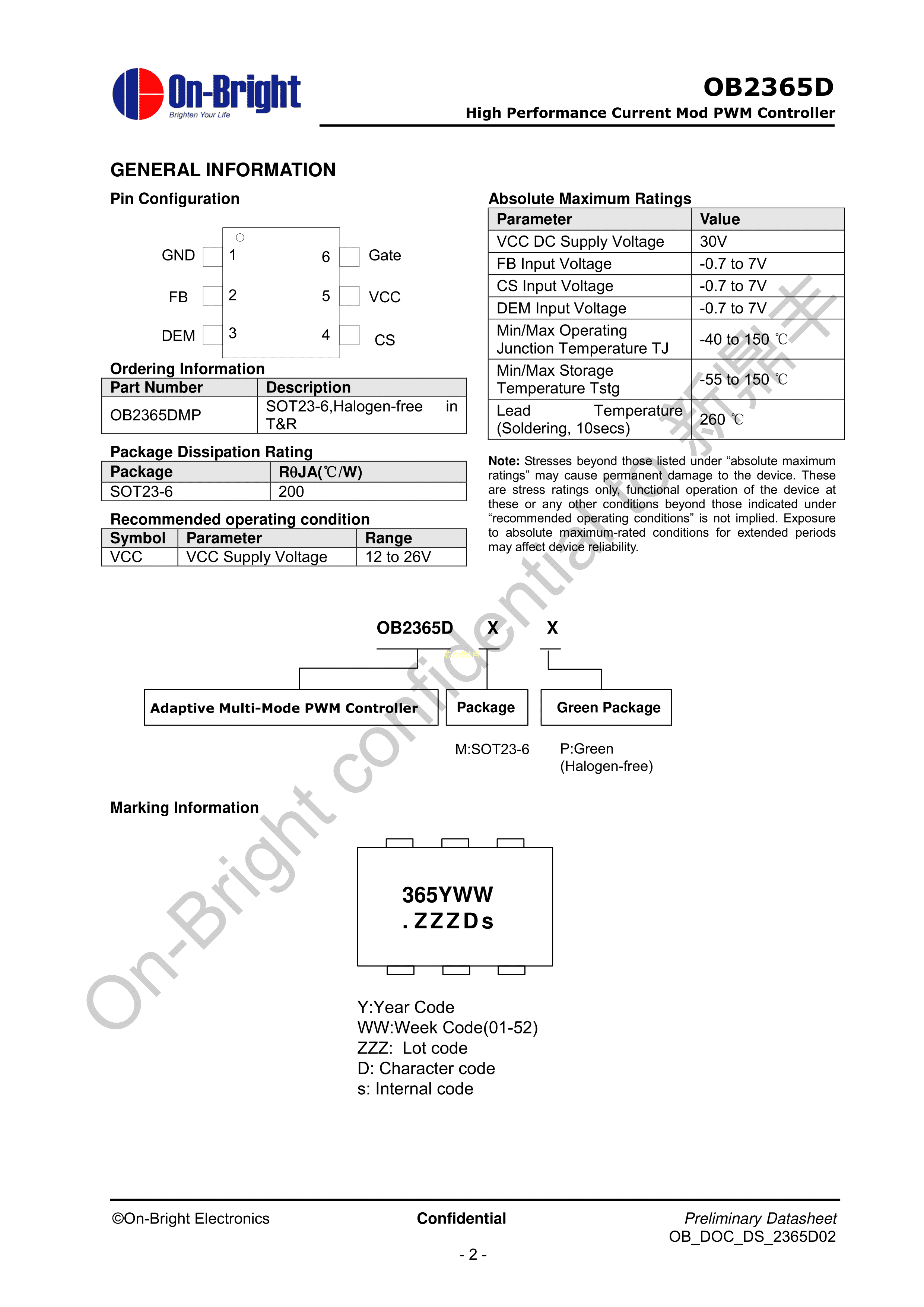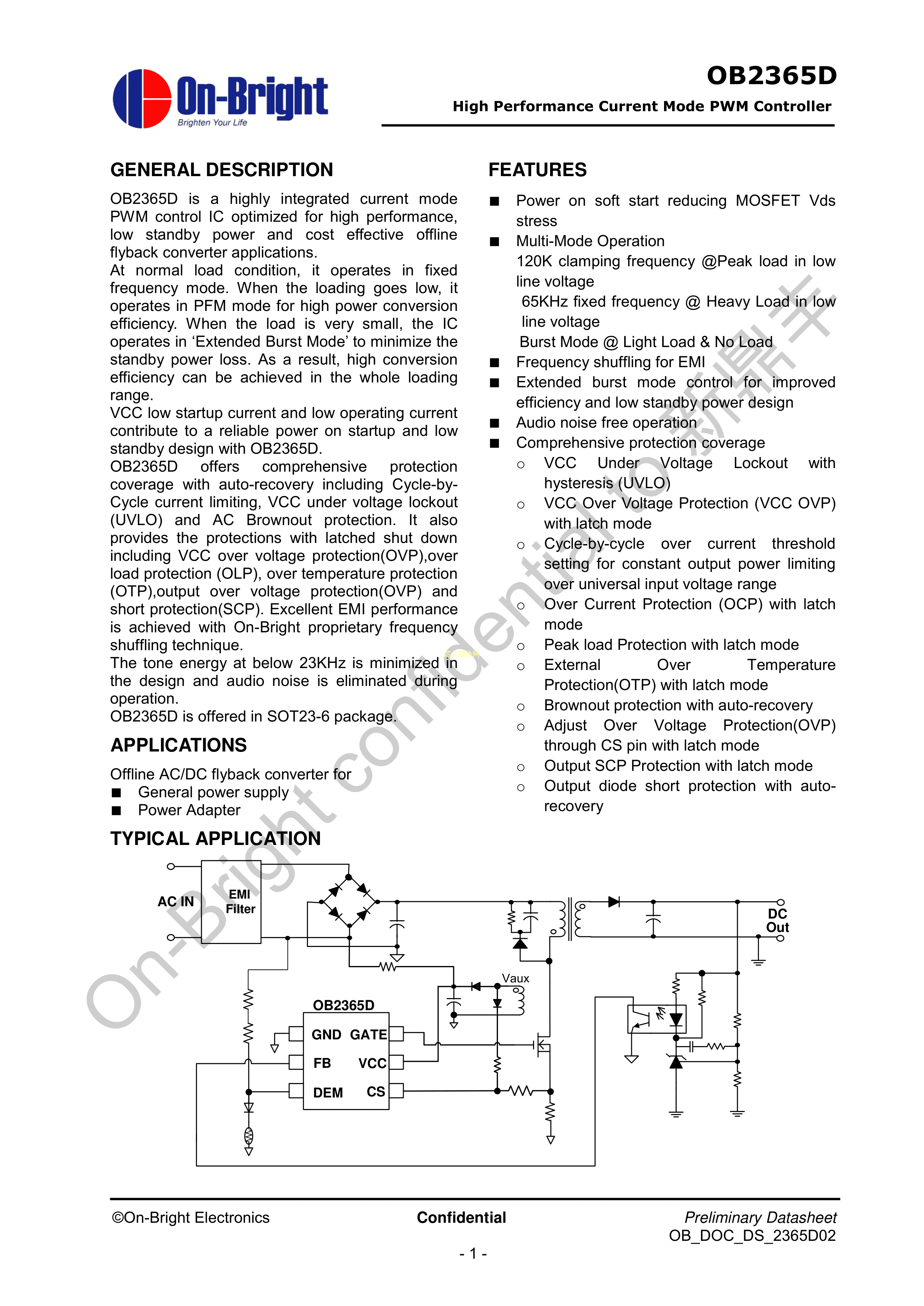 OB2365DMP数据手册SOT-23-6封装OB(昂宝)PDF规格书,中英文下载