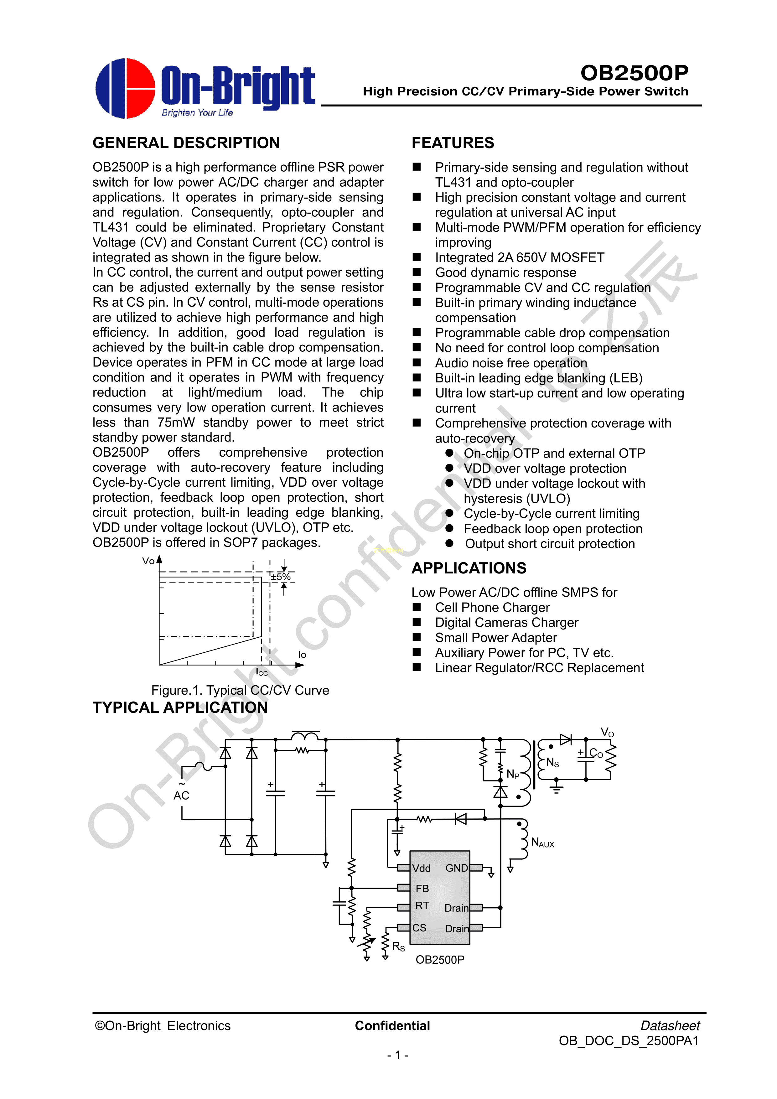 OB2500PCPA数据手册SOP-7封装OB(昂宝)PDF规格书,中英文下载
