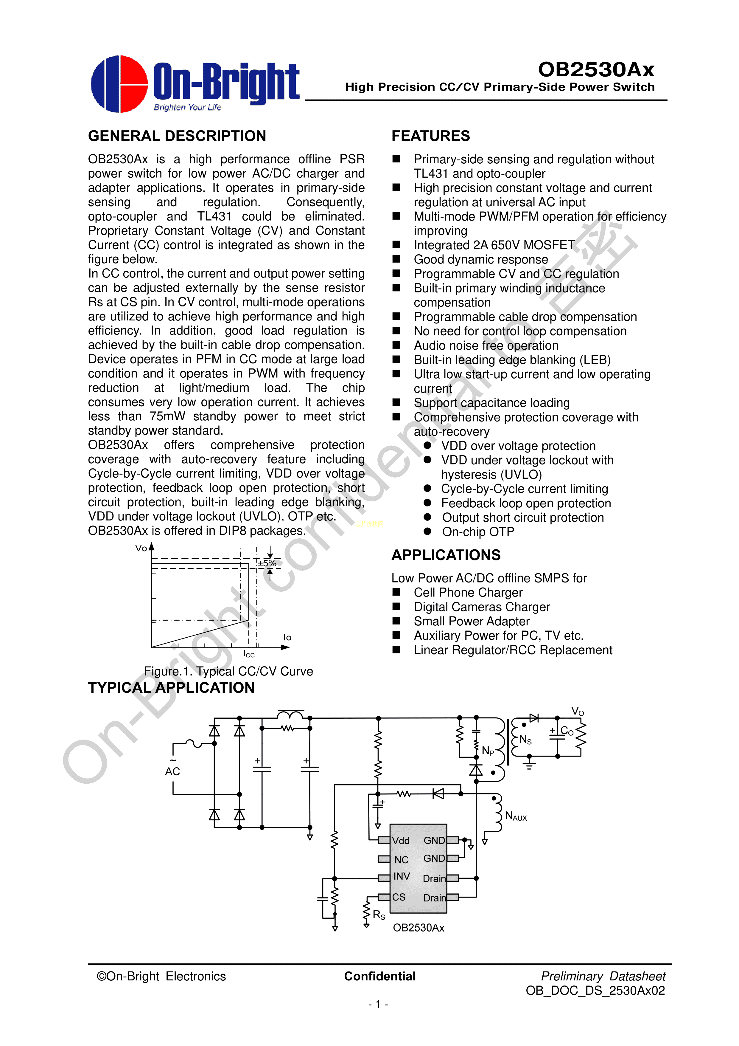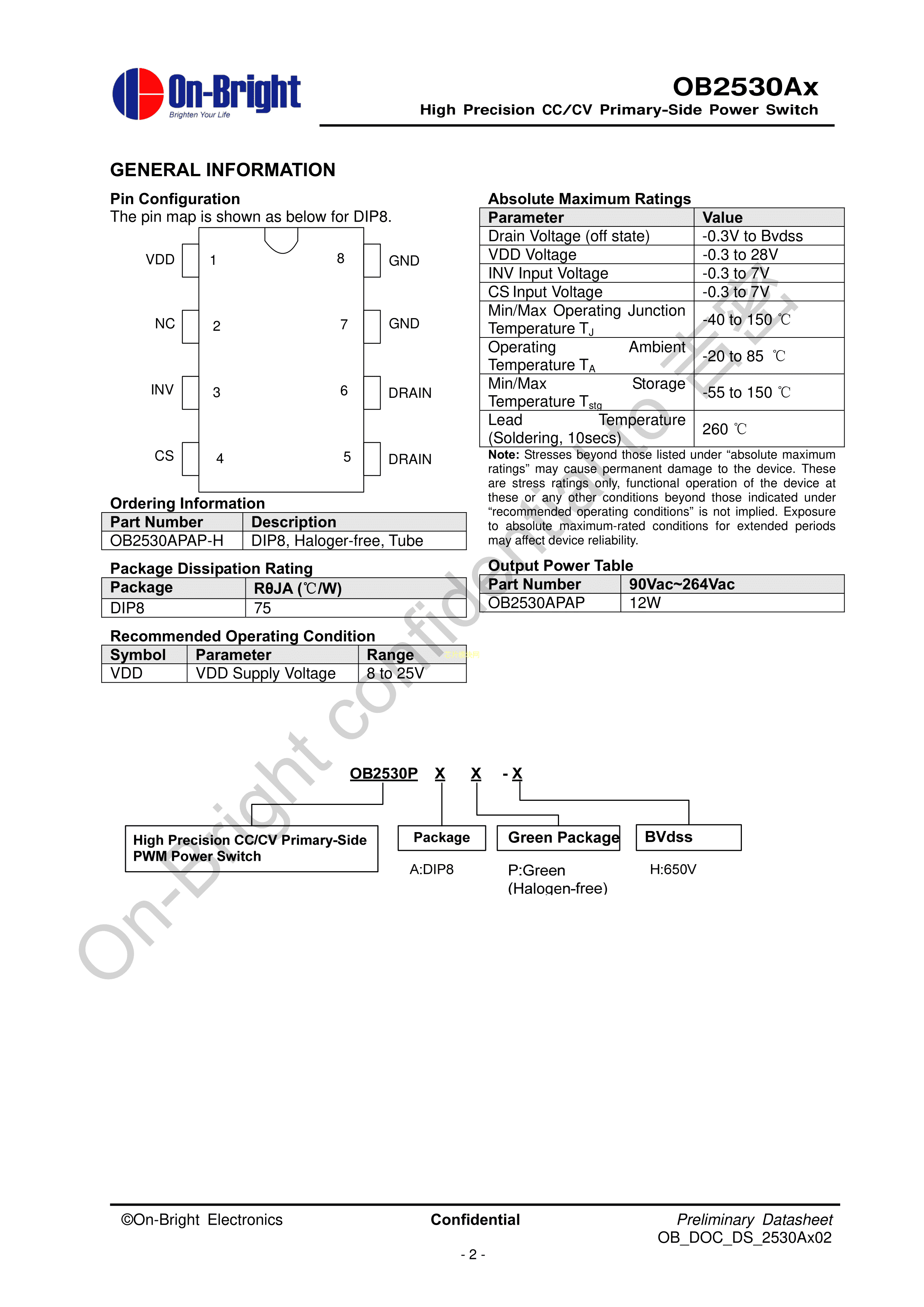 OB2530APAP-H数据手册DIP-8封装OB(昂宝)PDF规格书,中英文下载