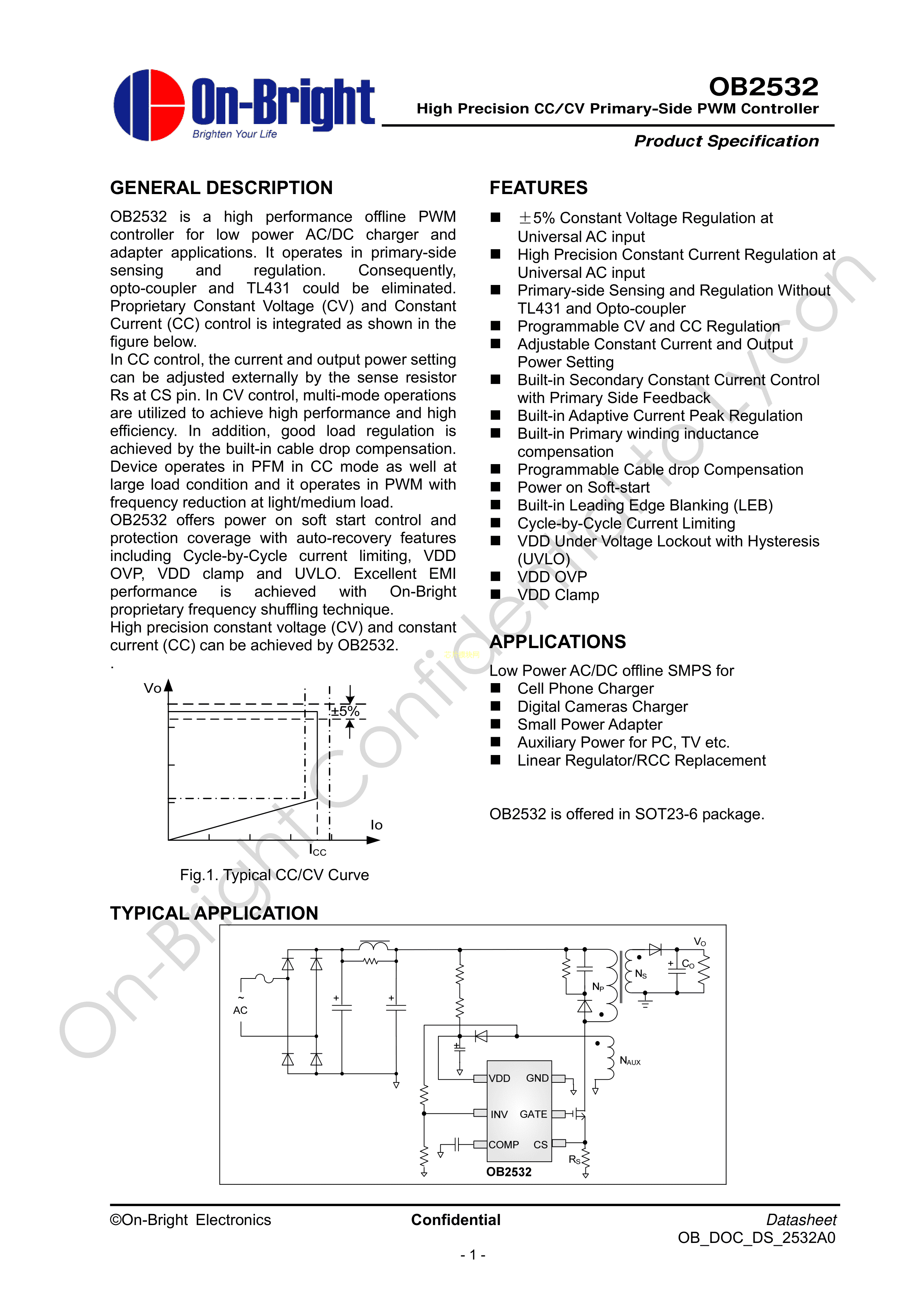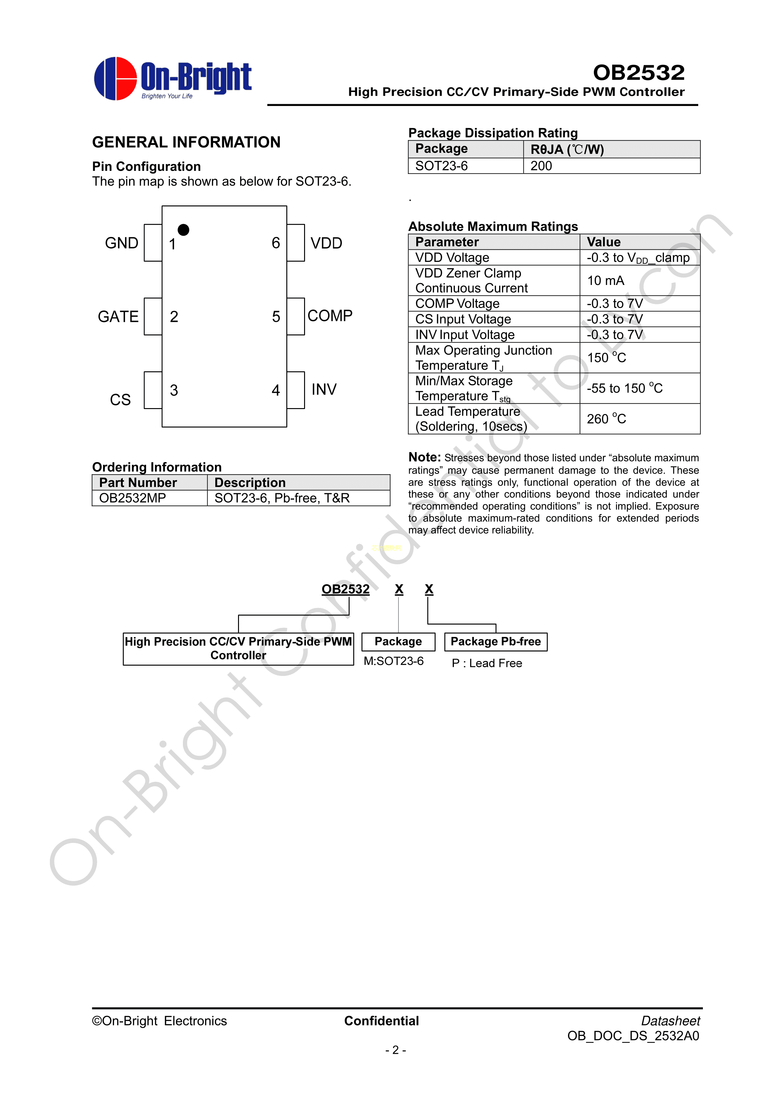 OB2532MP数据手册SOT-23-6封装OB(昂宝)PDF规格书,中英文下载