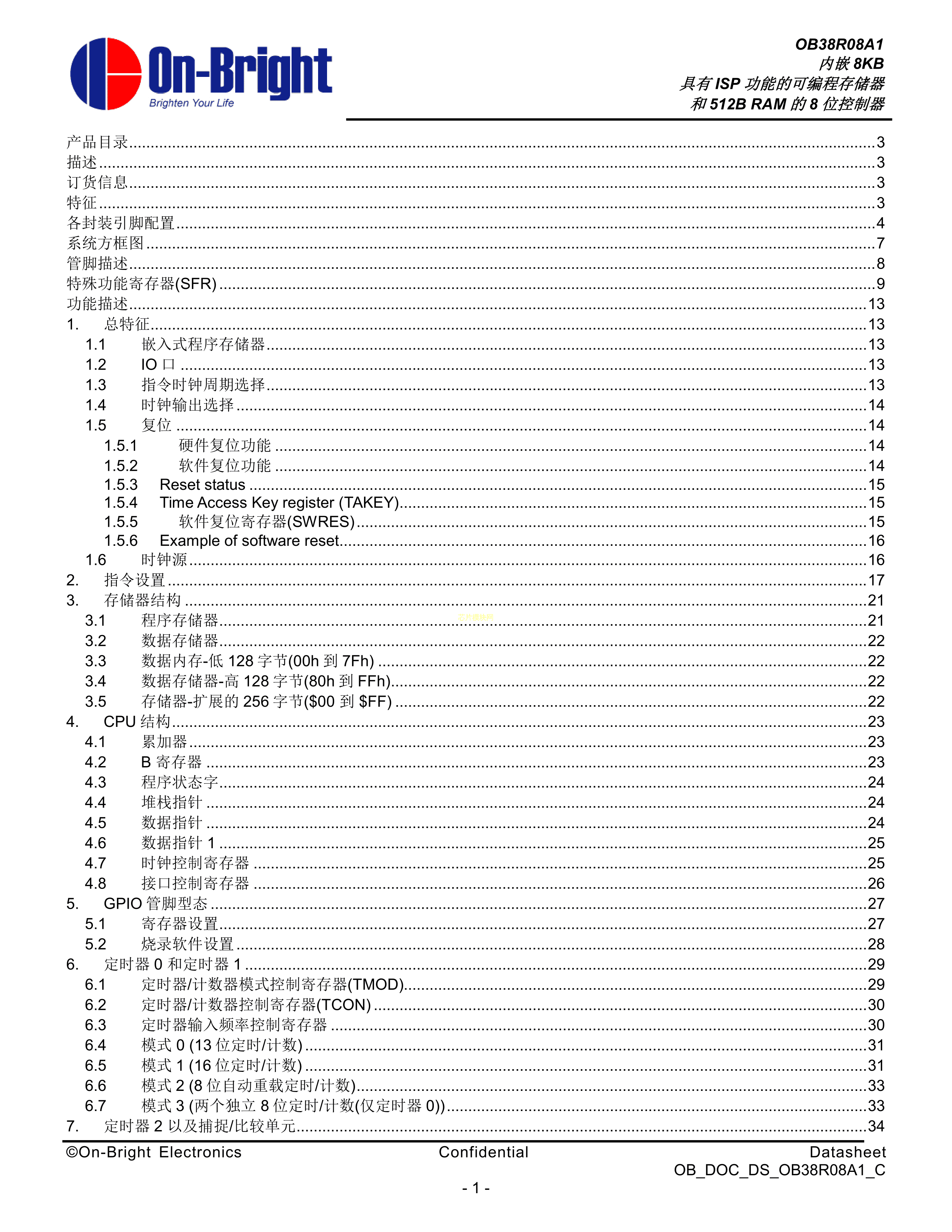 OB38R08A1W08OP数据手册SOP8(150mil)封装OB(昂宝)PDF规格书,中英文下载