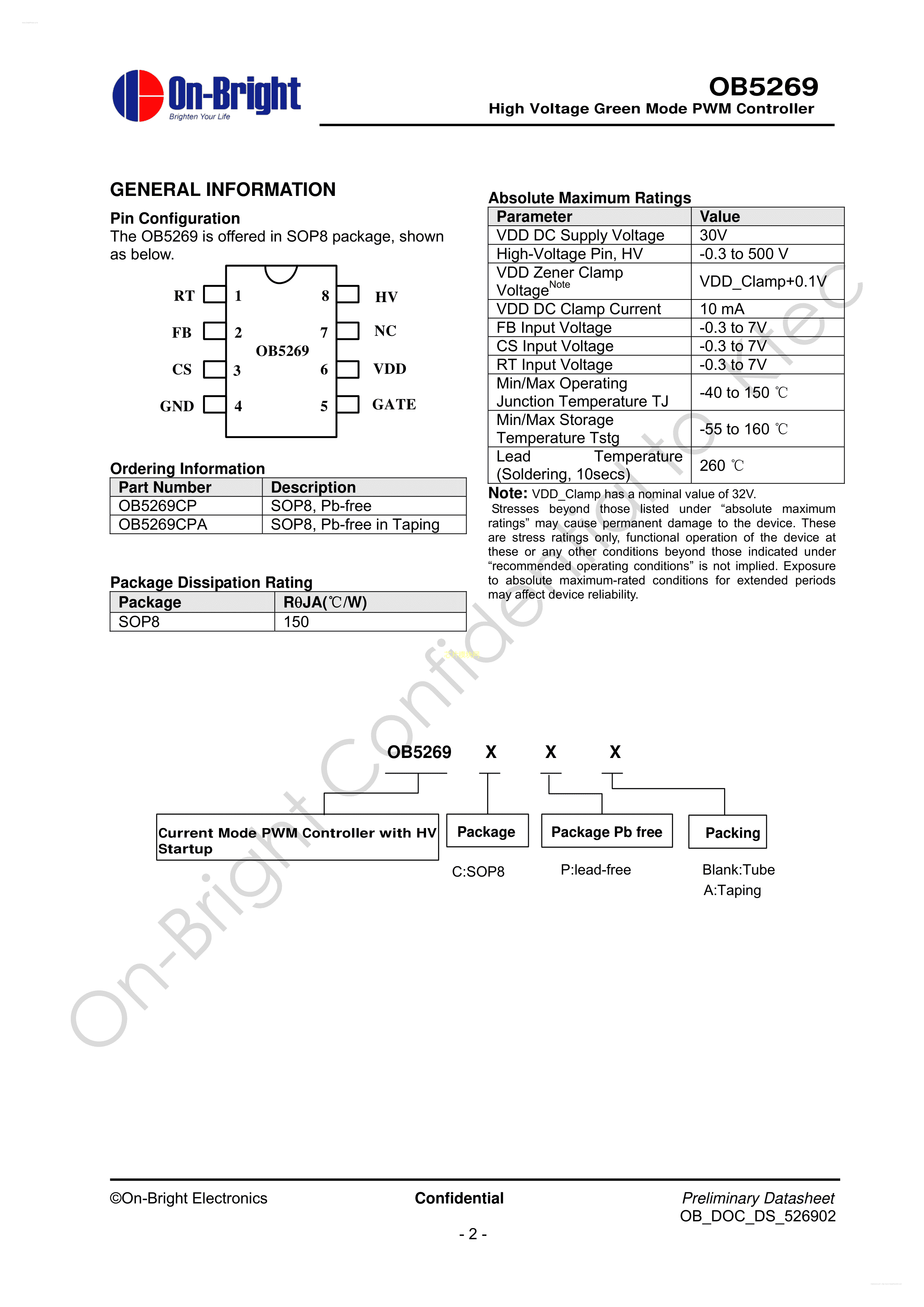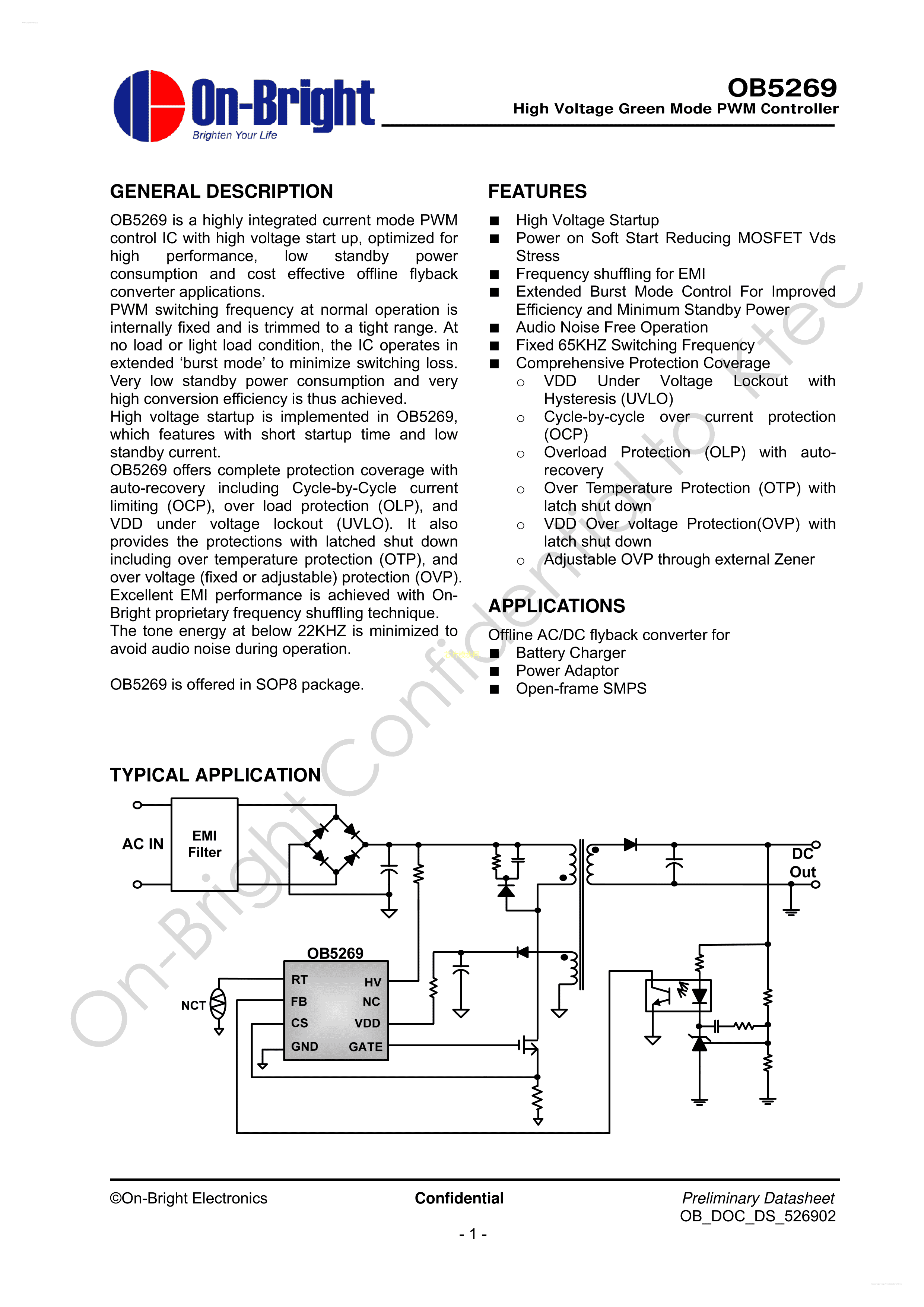 OB5269CPA数据手册SOP-8_150mil封装OB(昂宝)PDF规格书,中英文下载