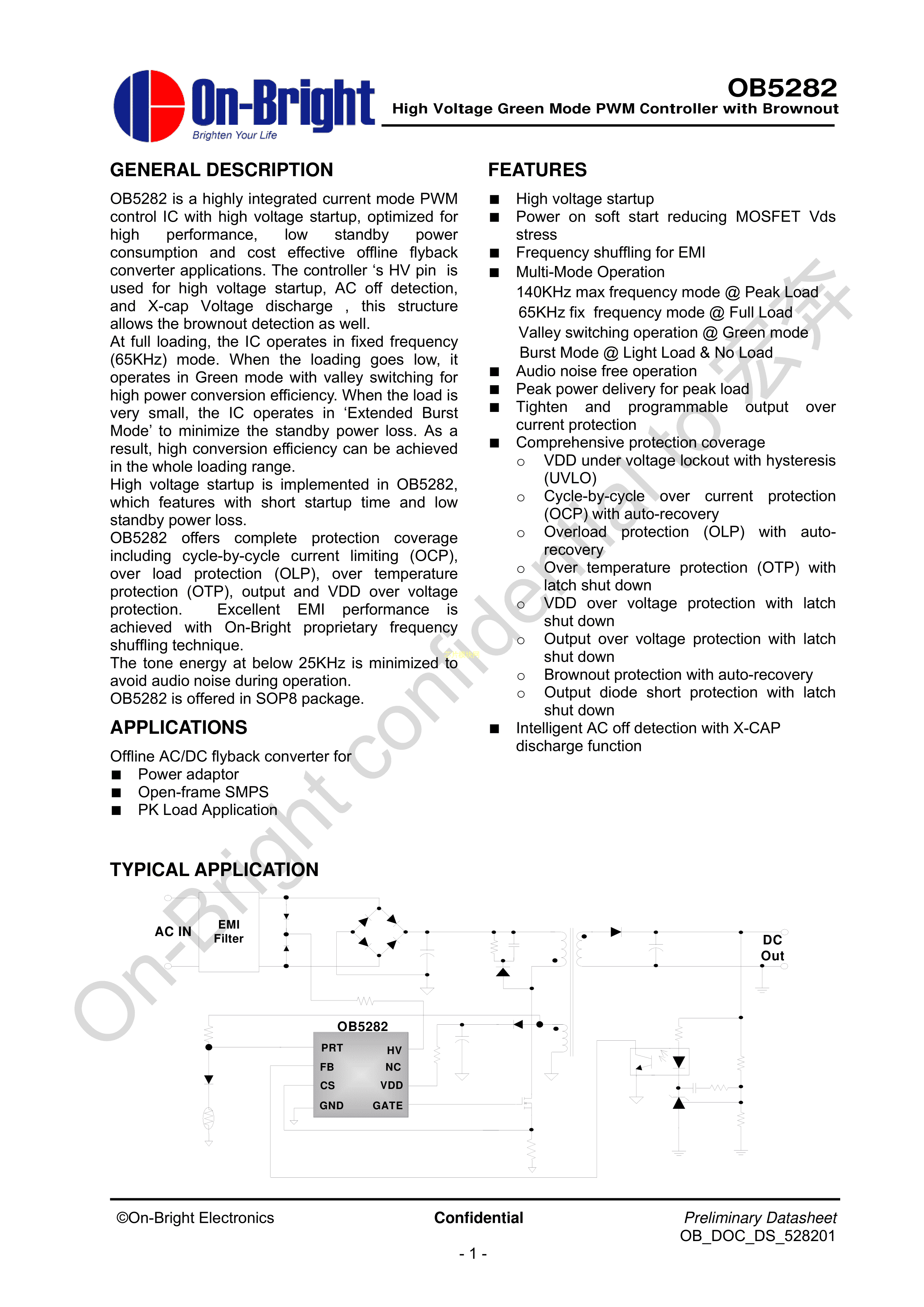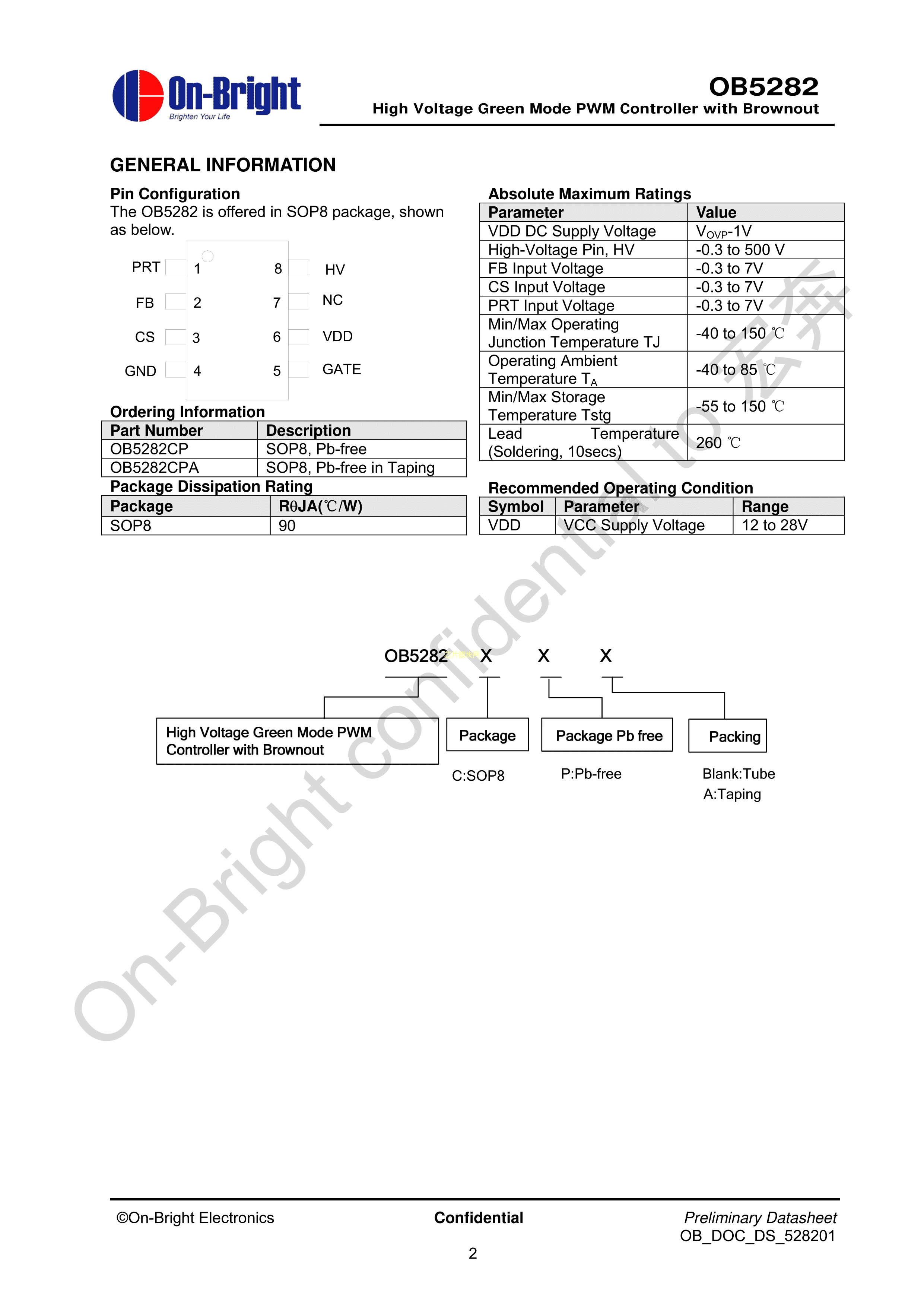 OB5282CPA数据手册SOP-8_150mil封装OB(昂宝)PDF规格书,中英文下载