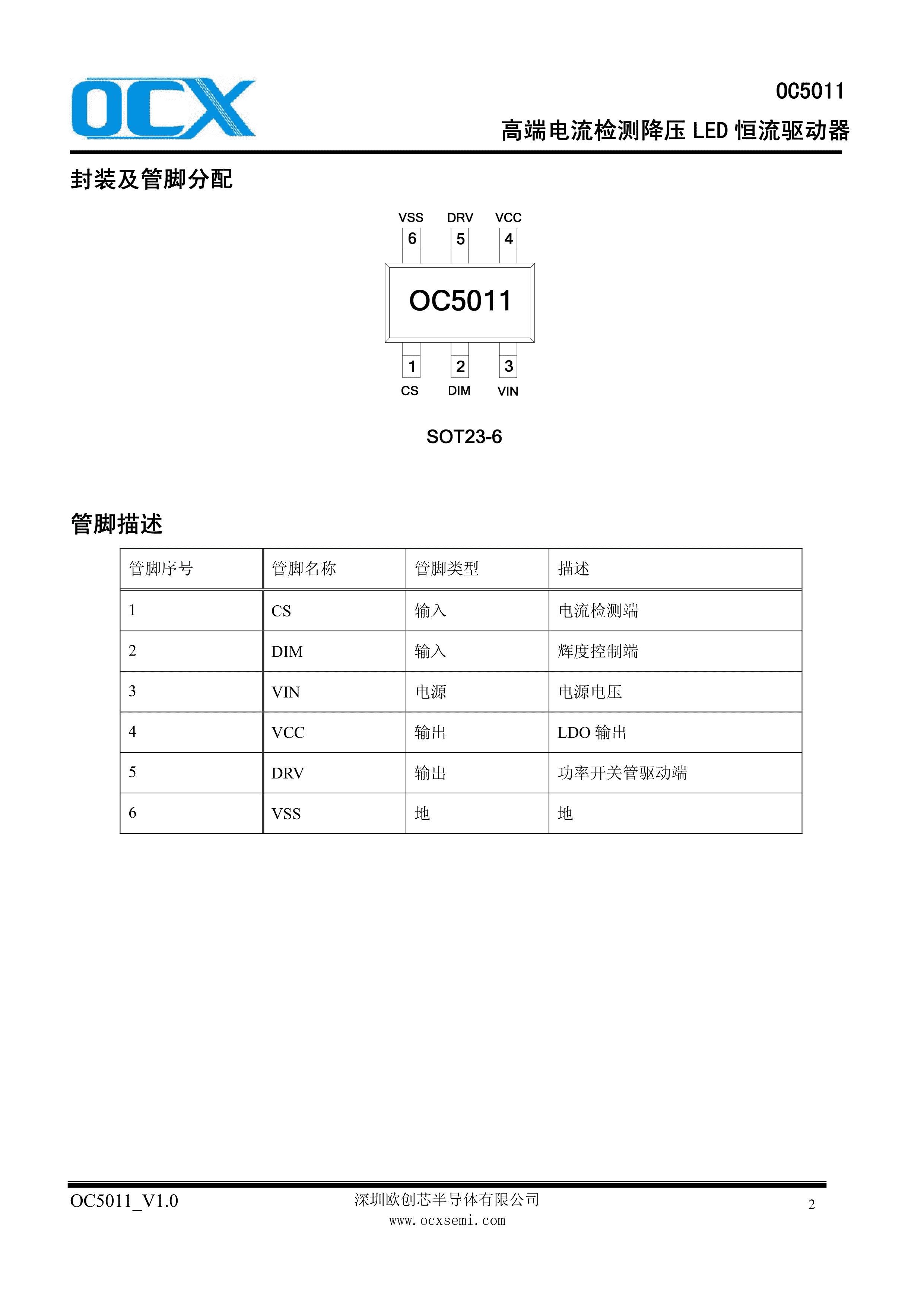 OC5011数据手册SOT-23-6封装OCX(欧创芯)PDF规格书,中英文下载