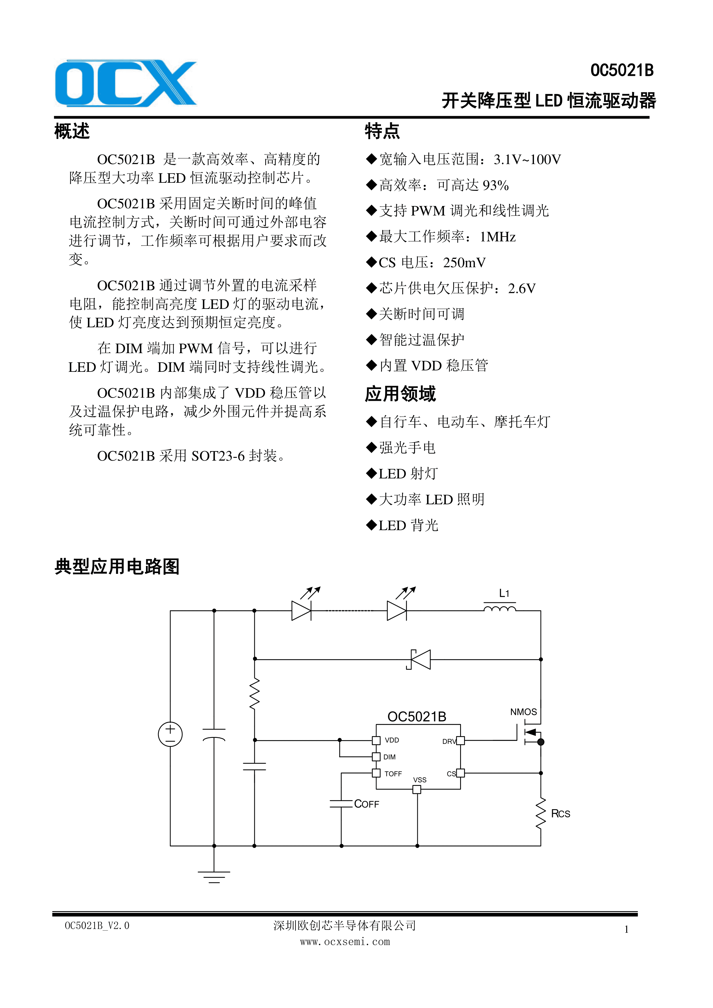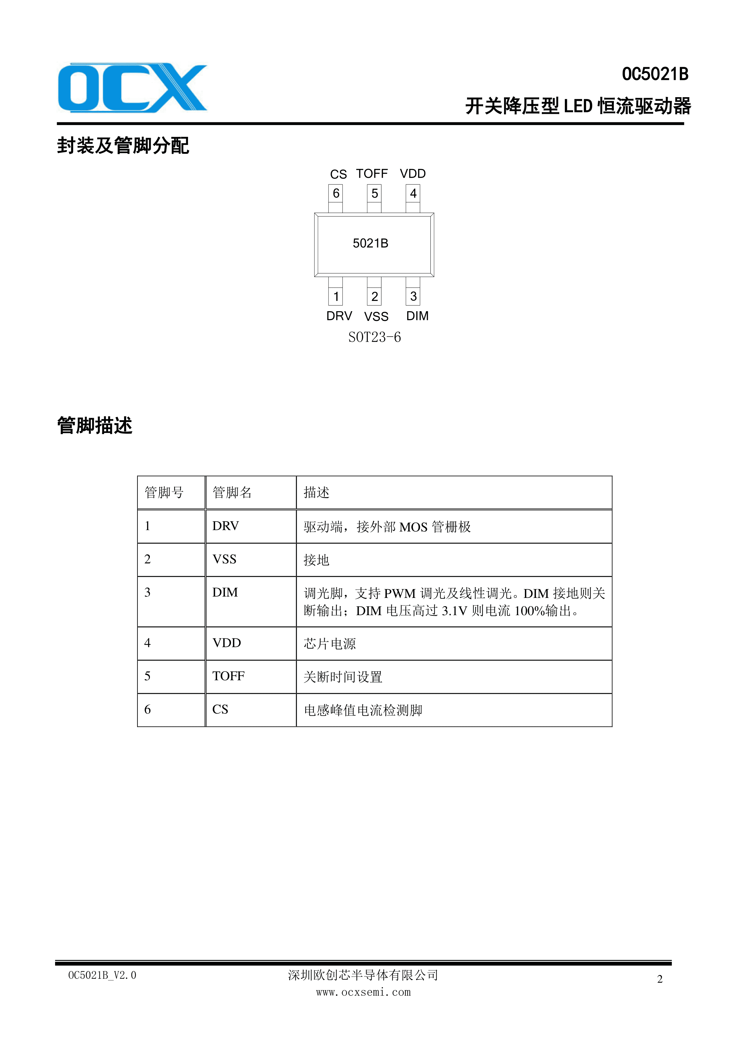 OC5021B数据手册SOT-23-6封装OCX(欧创芯)PDF规格书,中英文下载