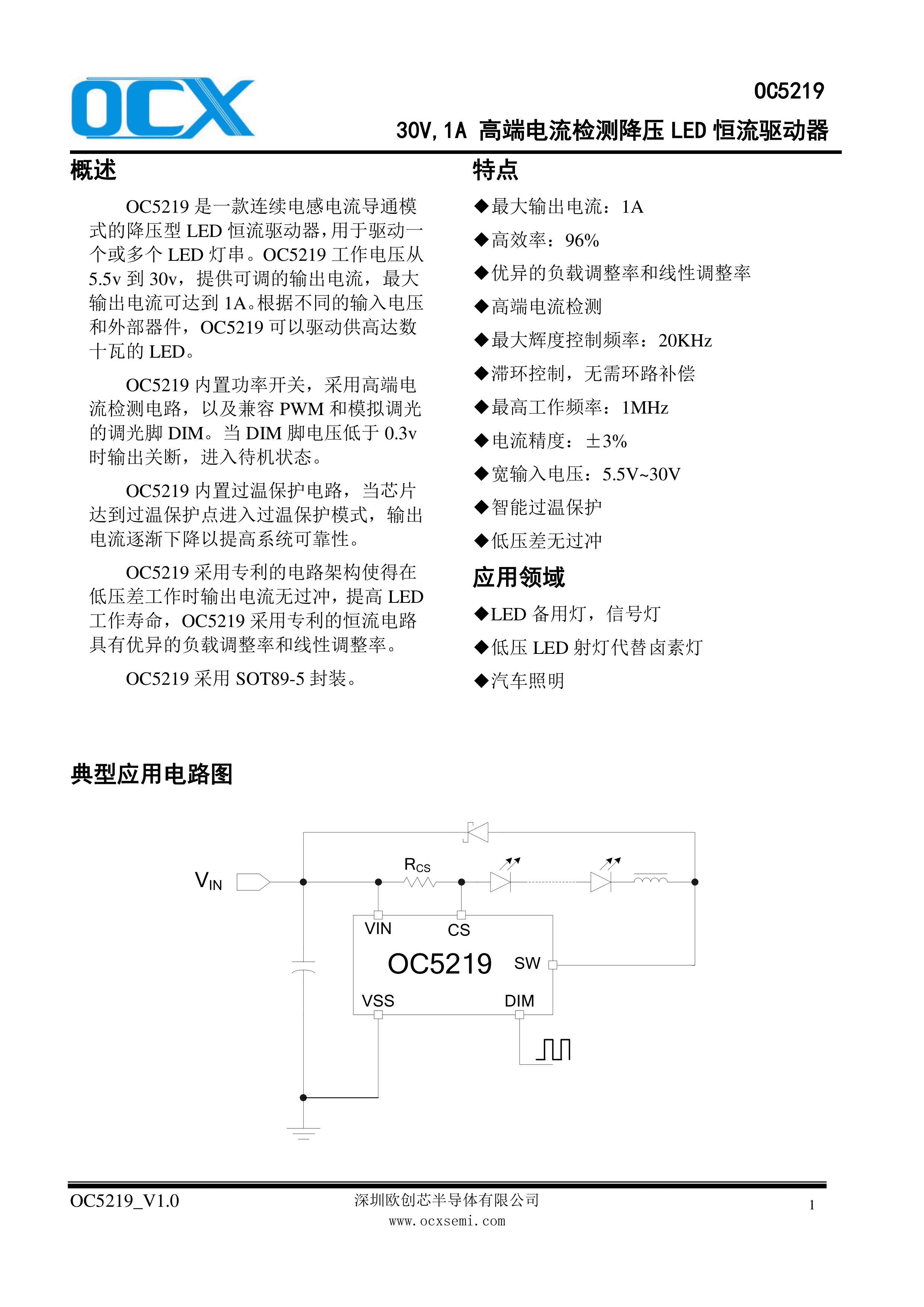 OC5219数据手册SOT89-5封装OCX(欧创芯)PDF规格书,中英文下载