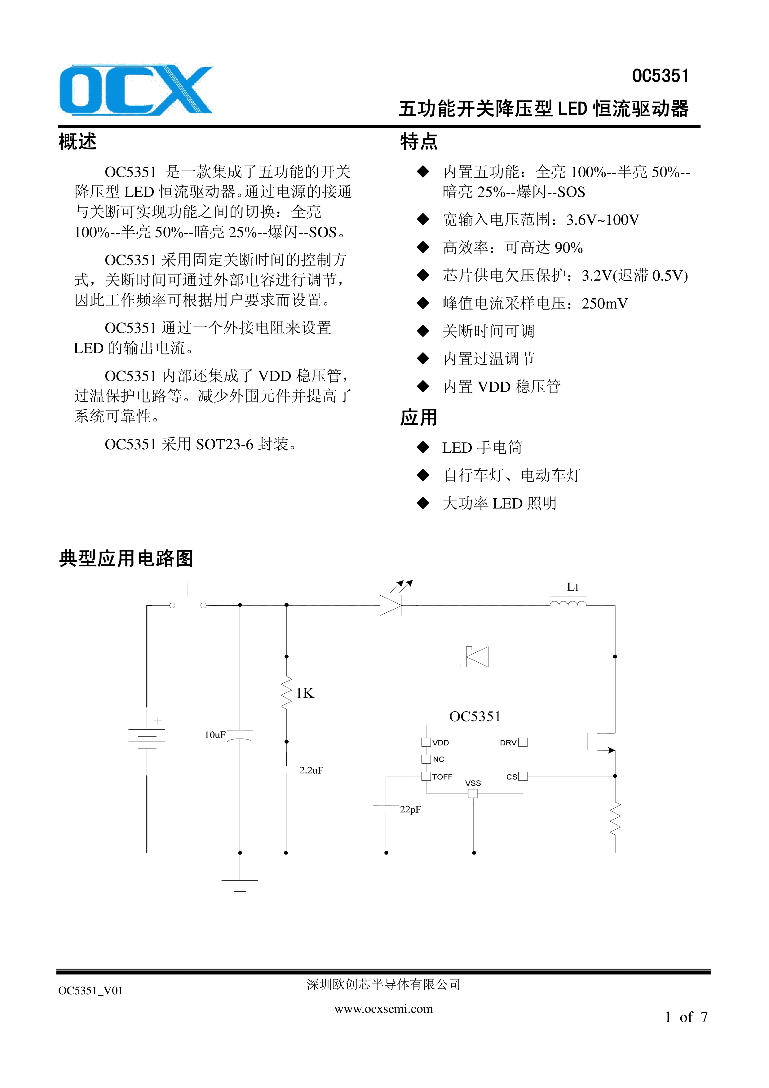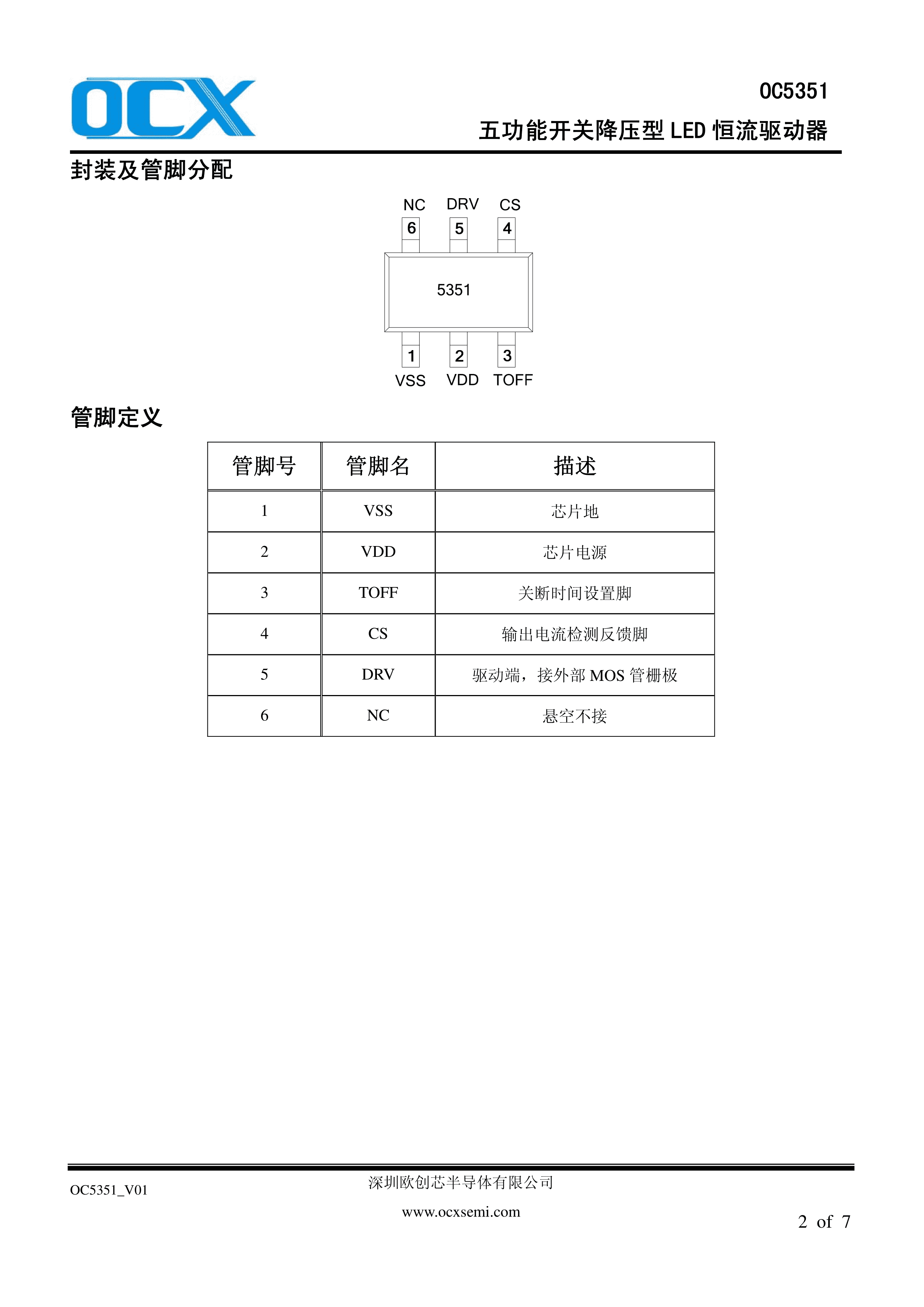 OC5351数据手册SOT-23-6封装OCX(欧创芯)PDF规格书,中英文下载