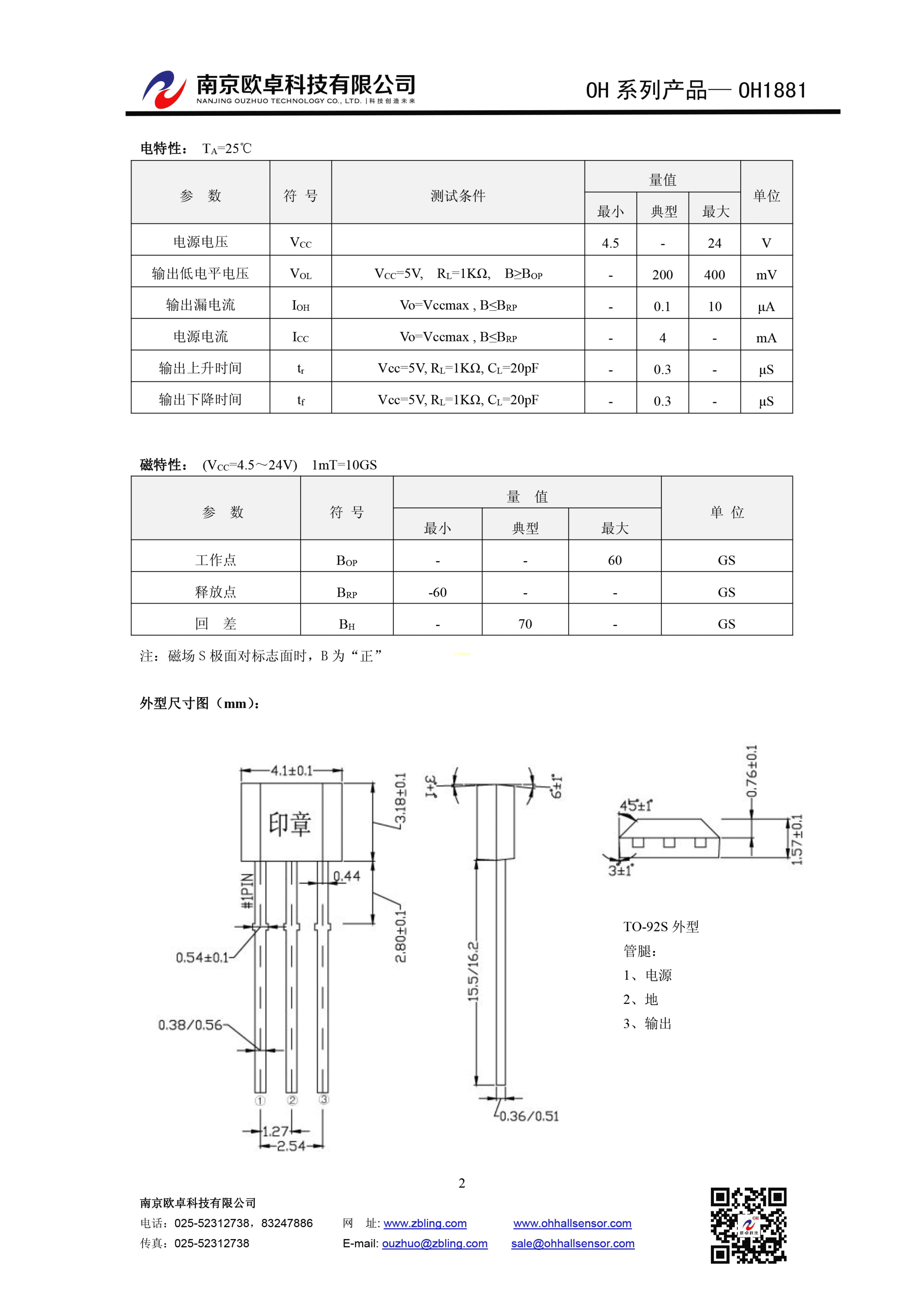 OH1881数据手册TO-92S封装南京欧卓.pdf