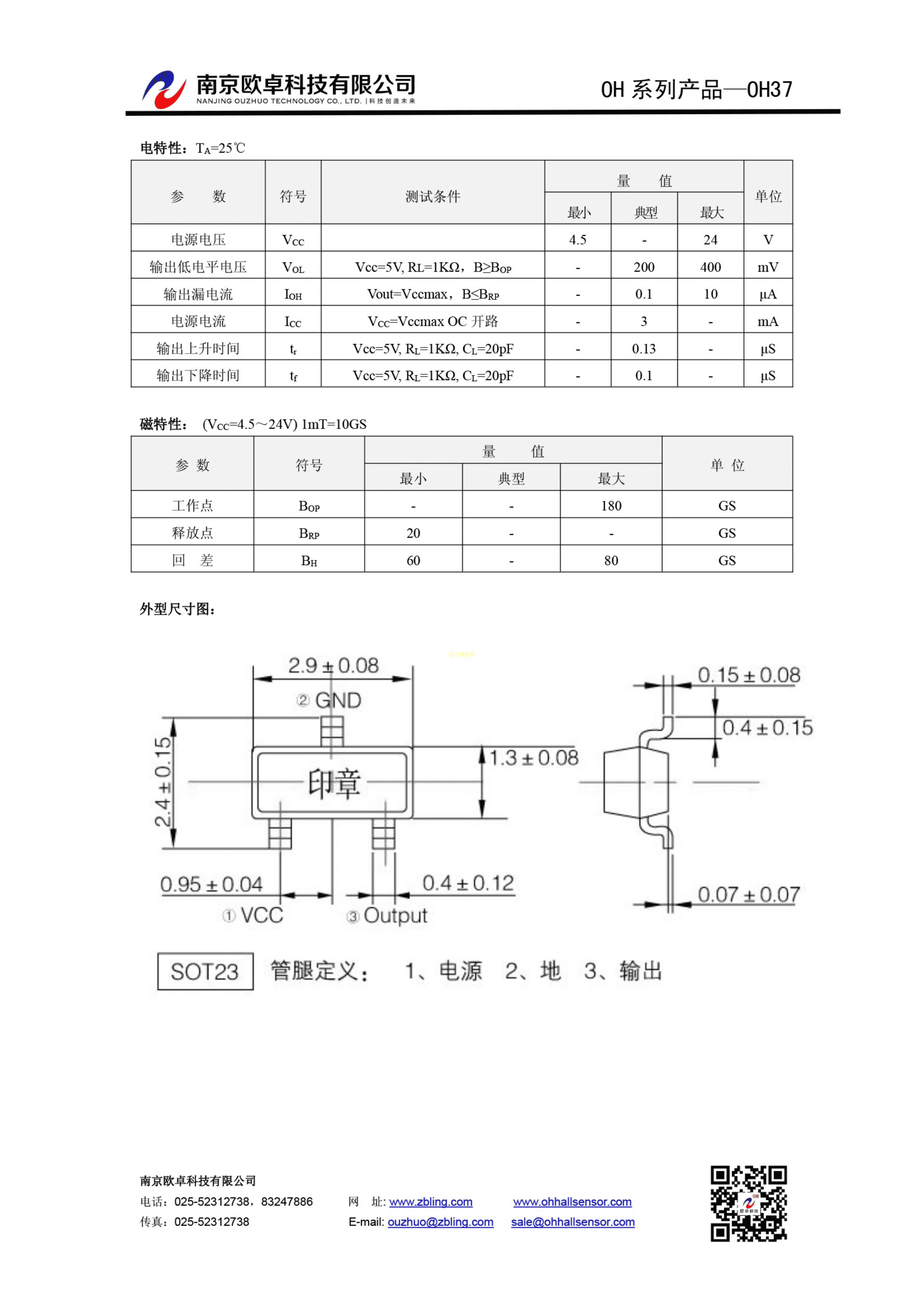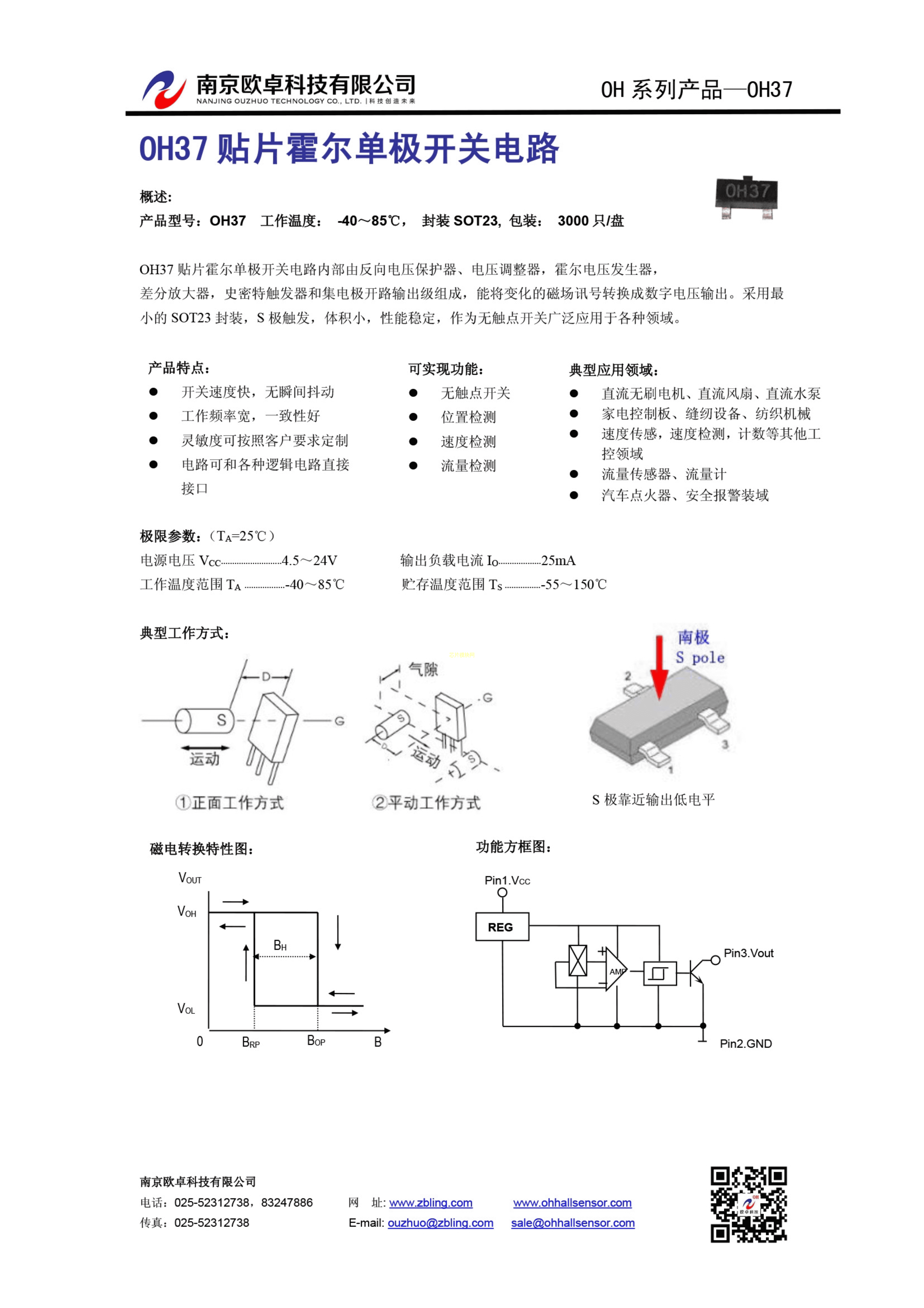 OH37数据手册SOT-23(SOT-23-3)封装南京欧卓PDF规格书,中英文下载