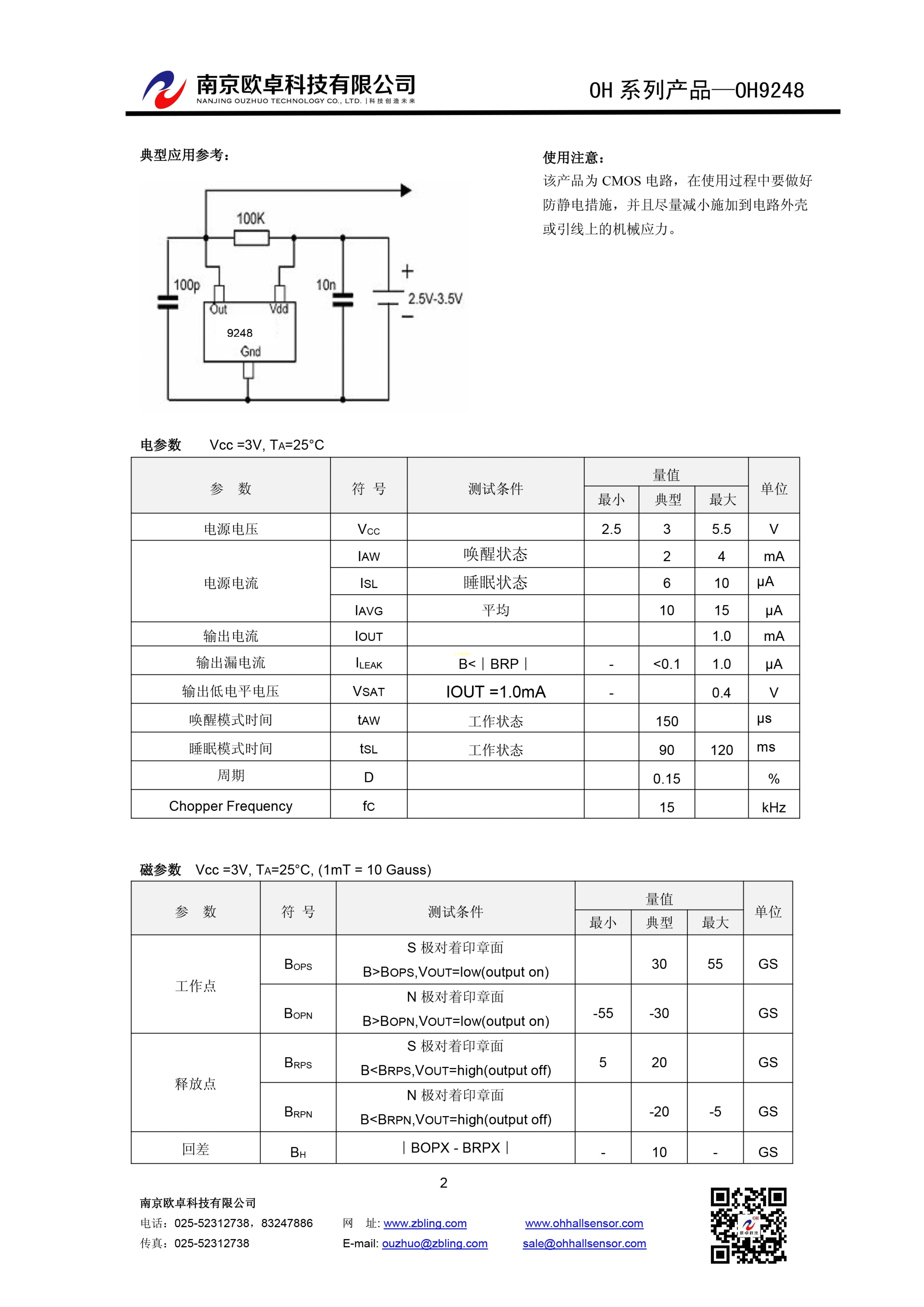 OH9248数据手册TO-92S封装南京欧卓.pdf