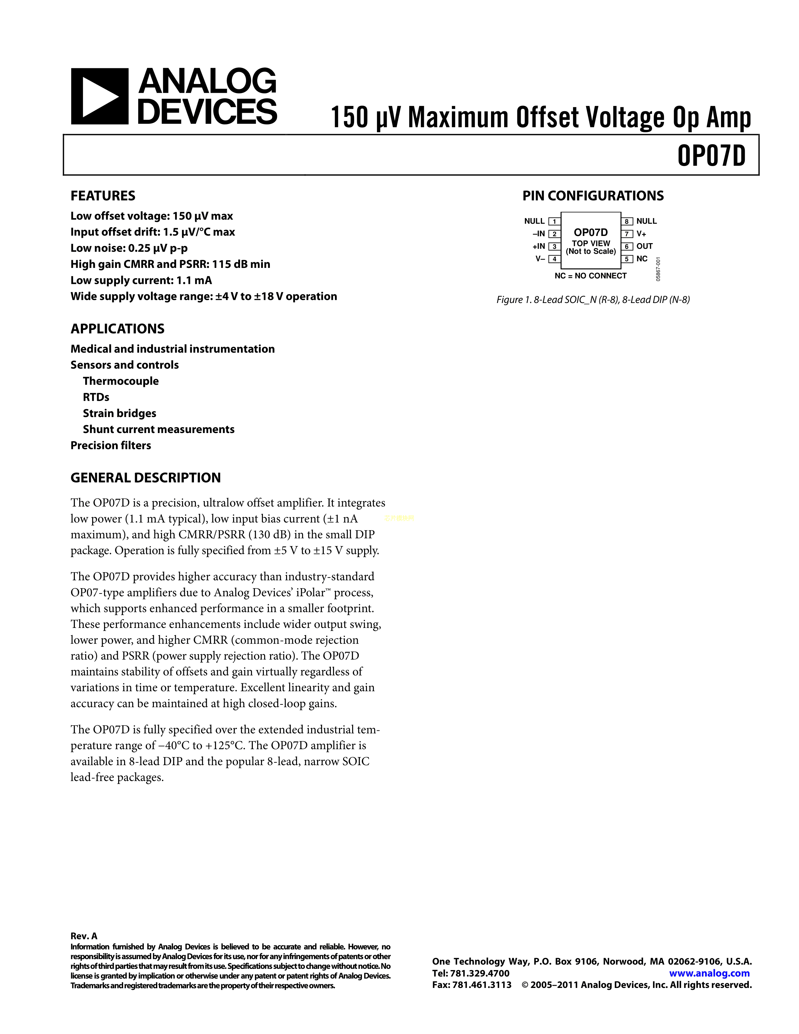 OP07DRZ-REEL7数据手册SOIC-8_150mil封装ADI(亚德诺)-LINEARPDF