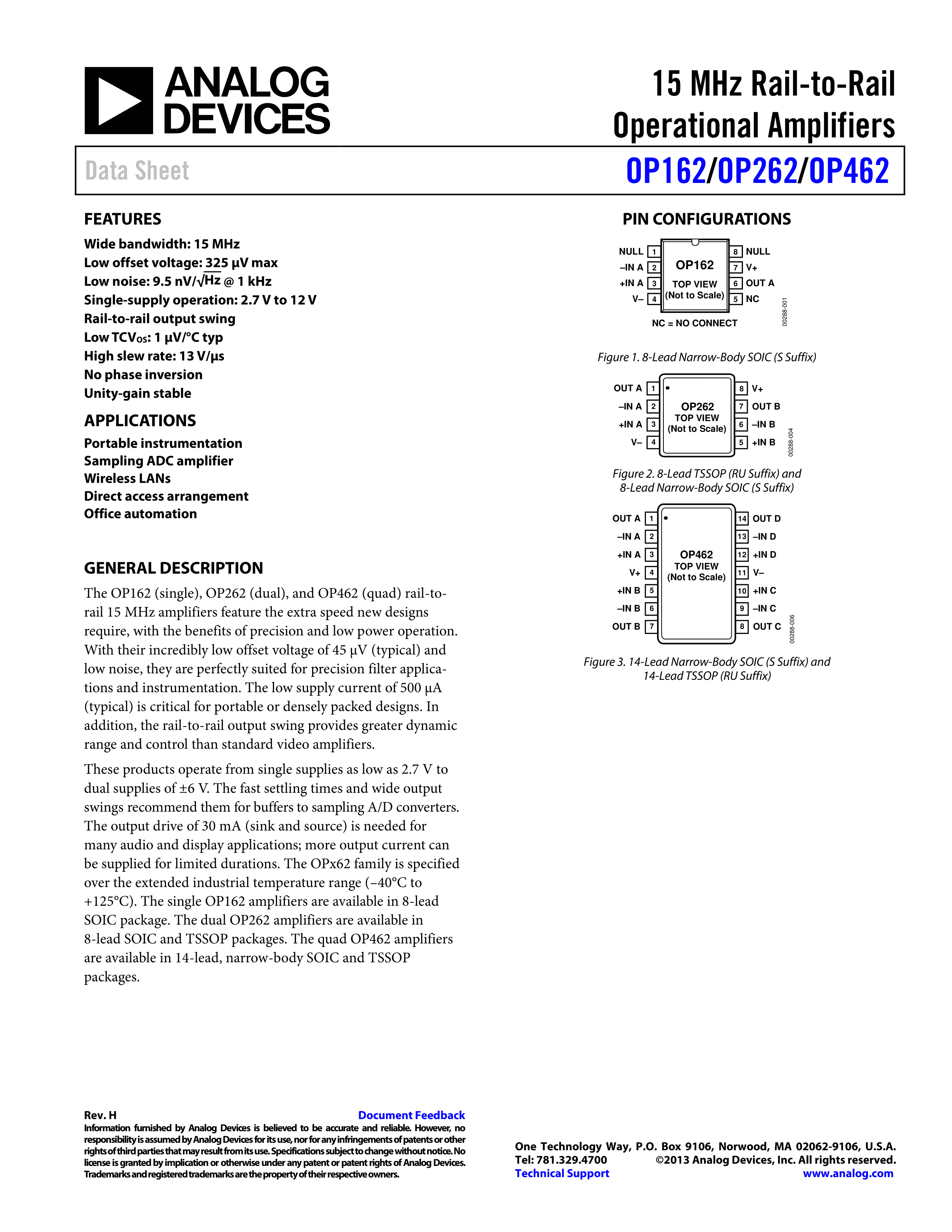 OP162GSZ数据手册SOIC-8封装ADI(亚德诺)-LINEARPDF规格书,中英文下载