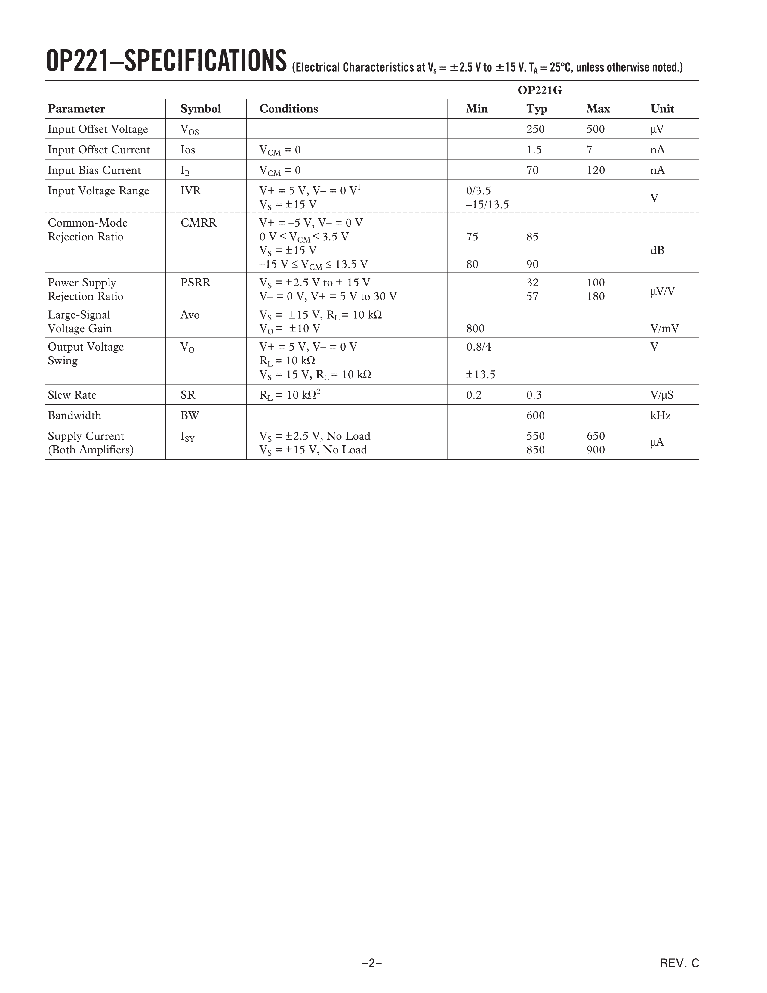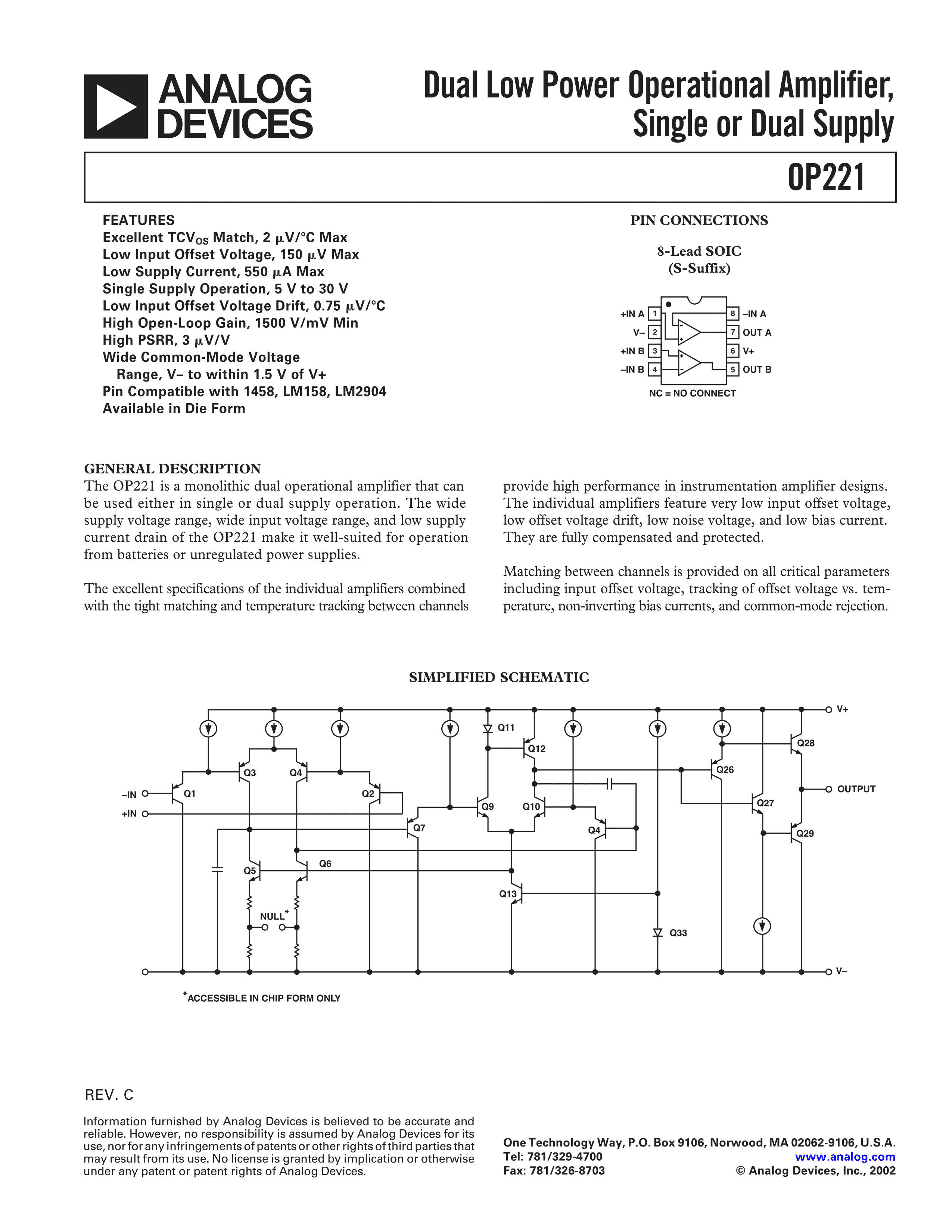 OP221GSZ数据手册SOIC-8封装ADI(亚德诺)-LINEARPDF规格书,中英文下载