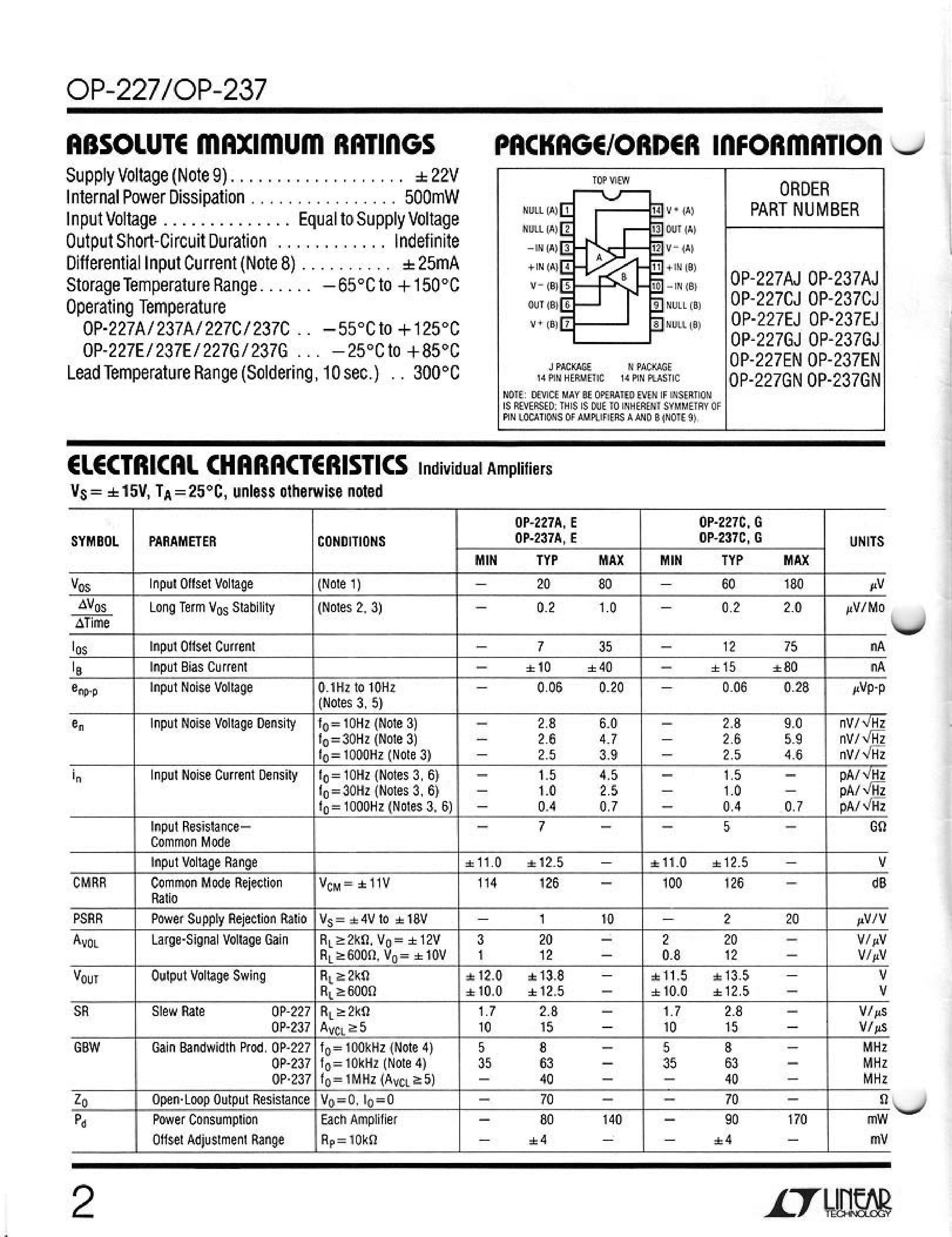 OP237GN#PBF数据手册PDIP-14封装ADI(亚德诺)-LINEARPDF规格书,中英文下