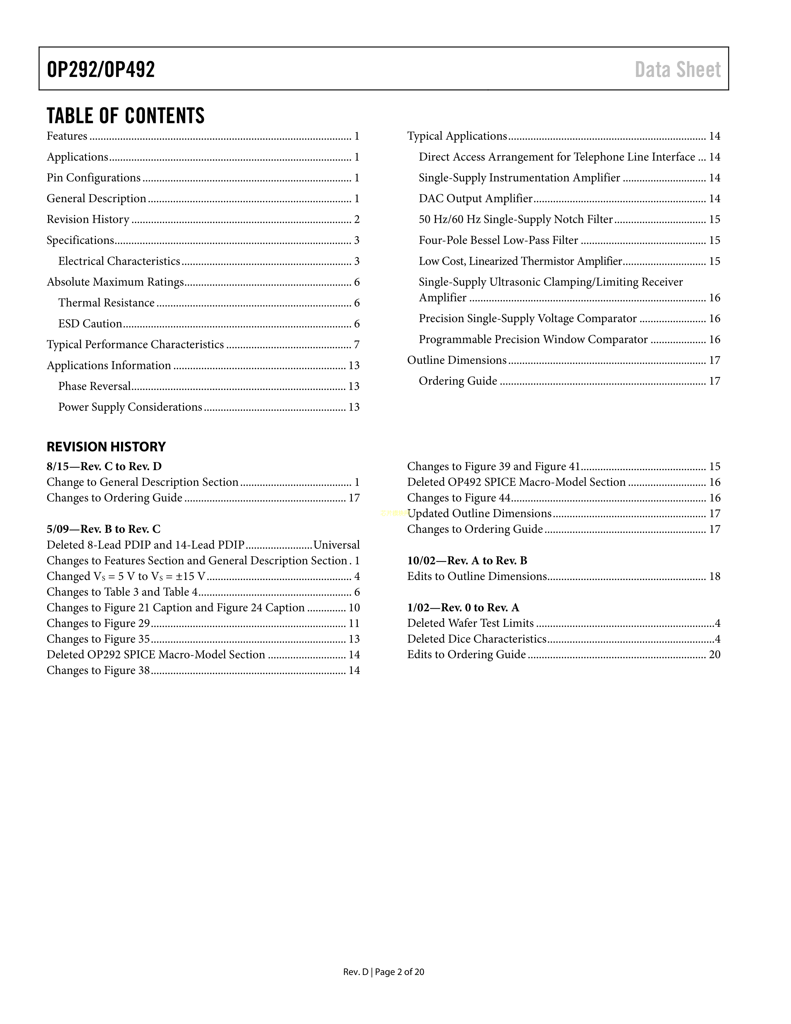 OP292GSZ-REEL数据手册SOIC-8封装ADI(亚德诺)-LINEARPDF规格书,中英文