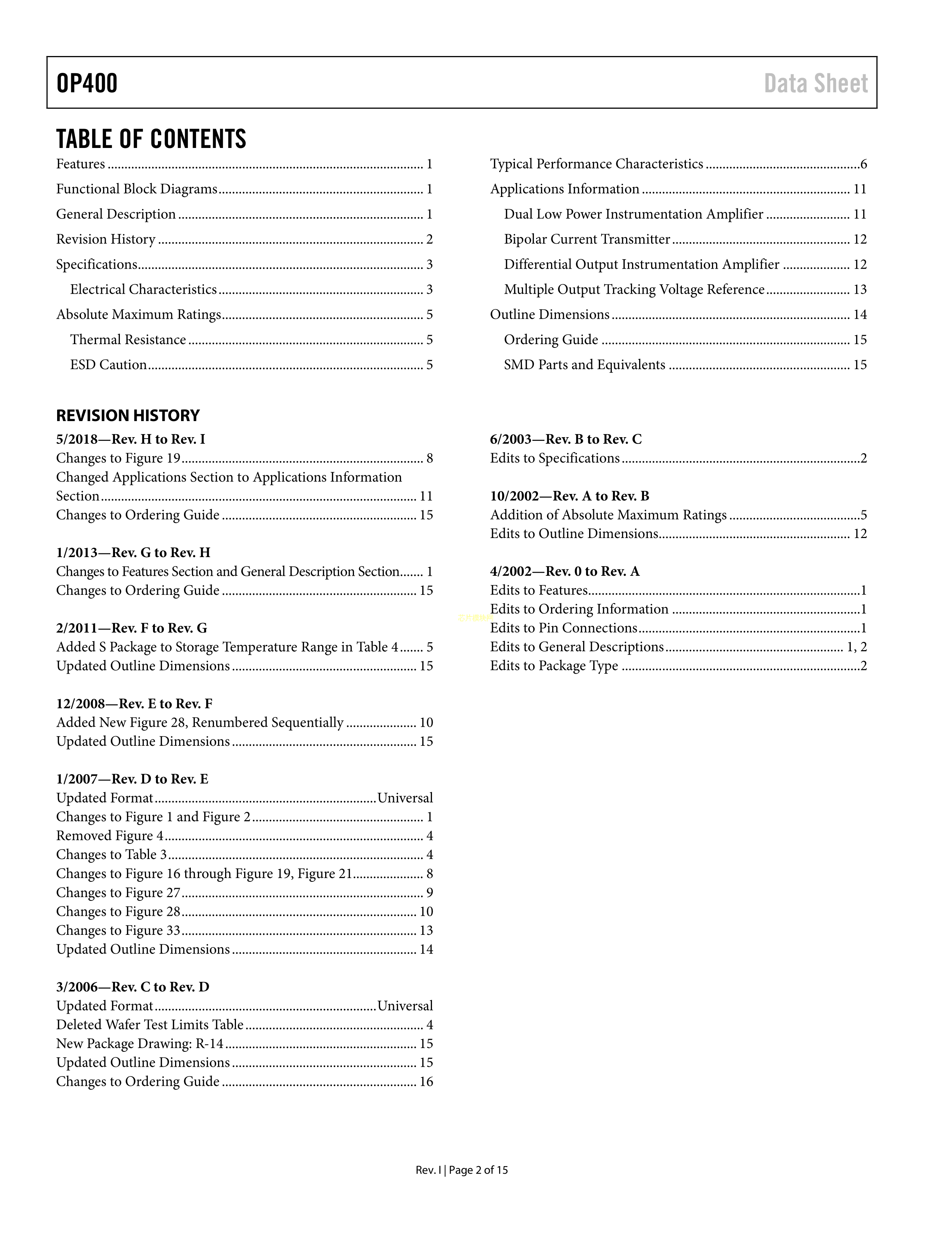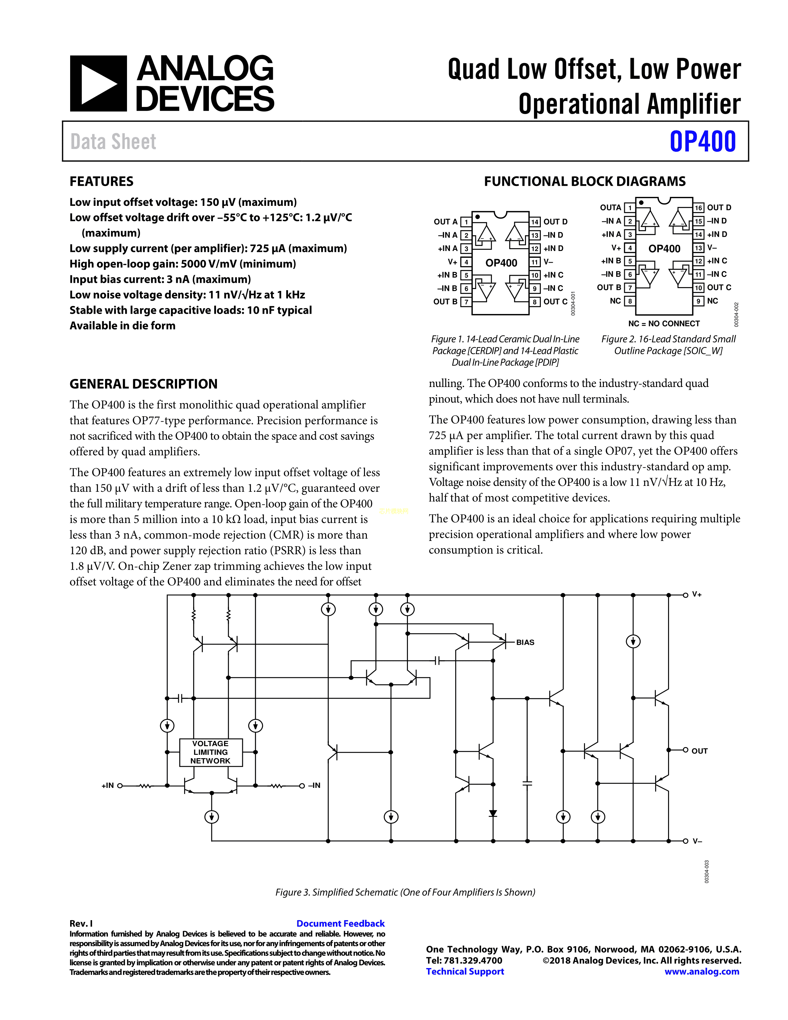 OP400HPZ数据手册PDIP-14封装ADI(亚德诺)-LINEARPDF规格书,中英文下载