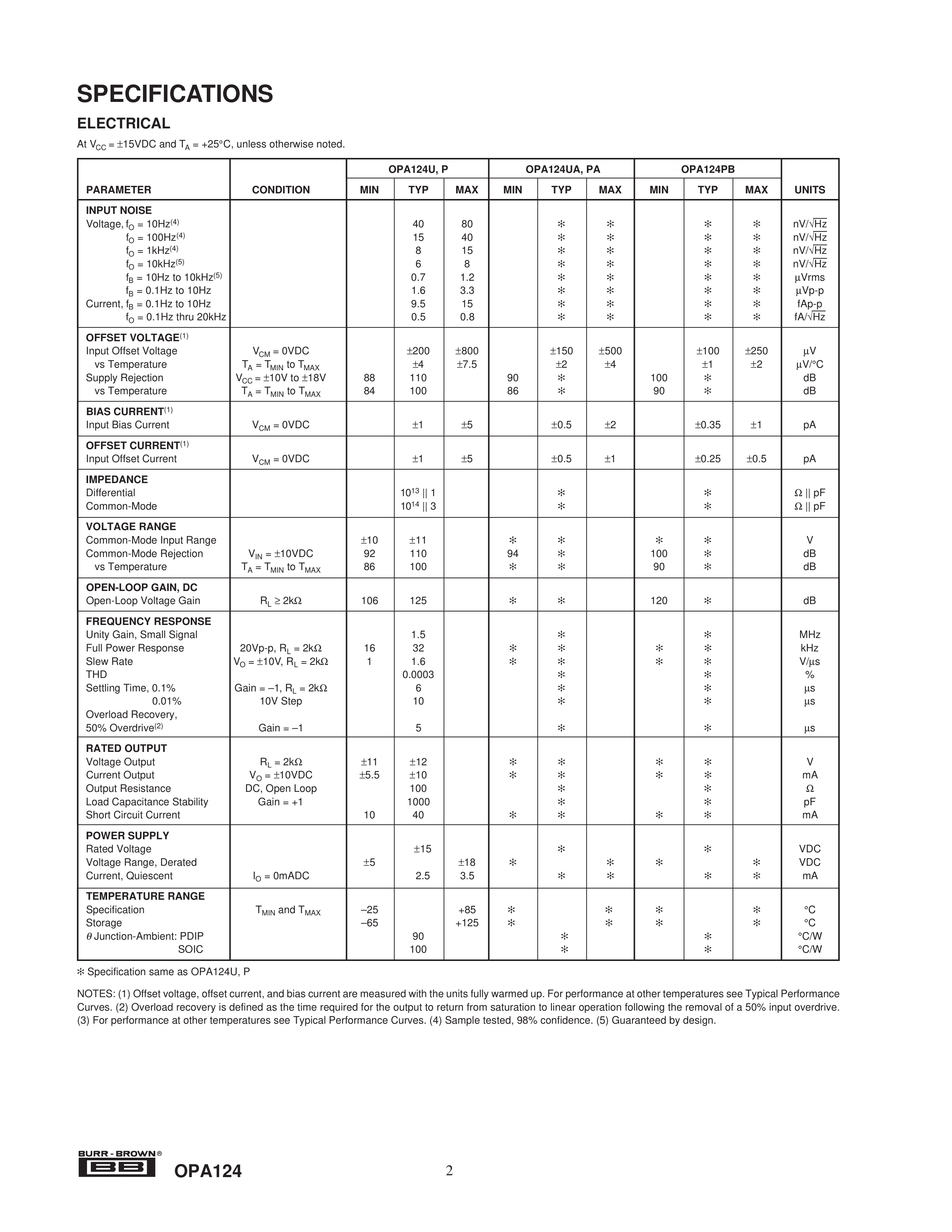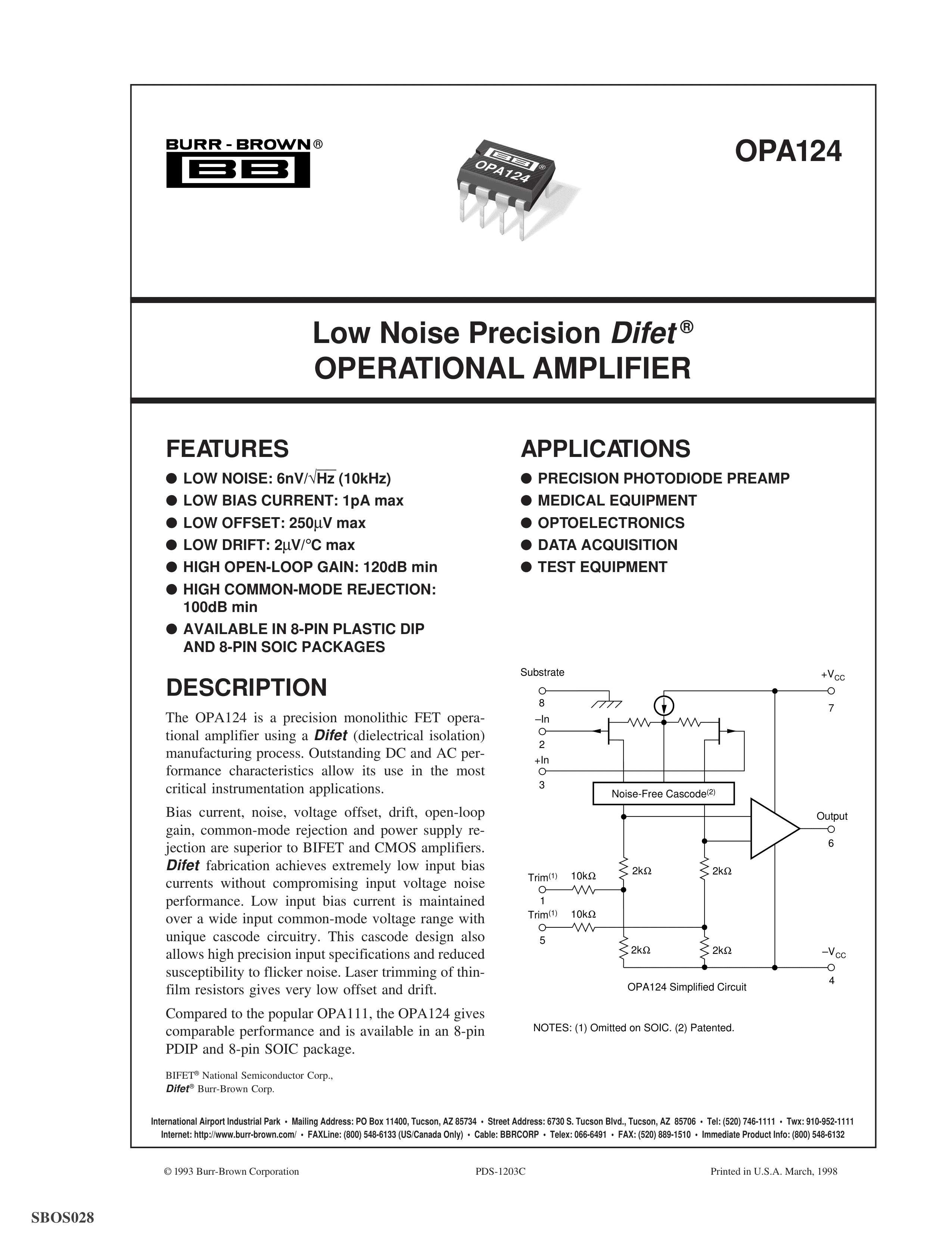 OPA124U数据手册SOIC-8_150mil封装TI(德州仪器)PDF规格书,中英文下载