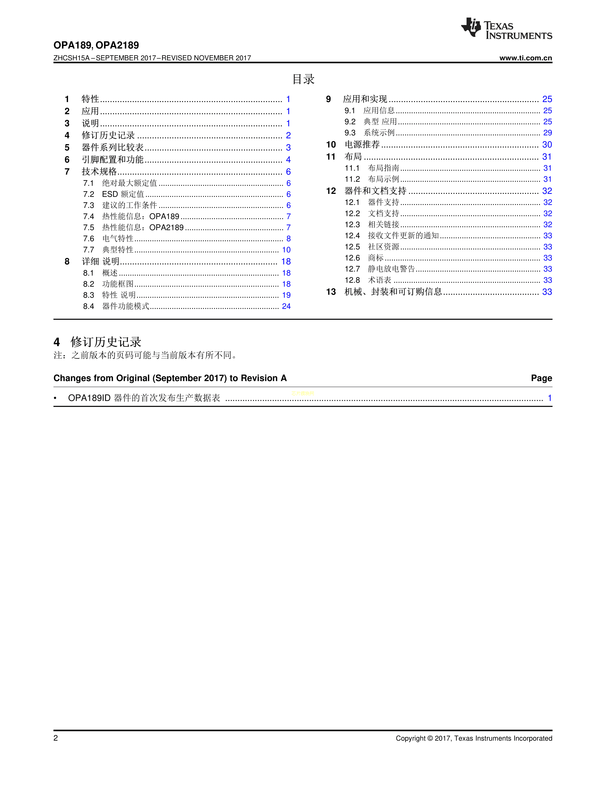 OPA2189IDR数据手册SOIC-8封装TI(德州仪器)PDF规格书,中英文下载