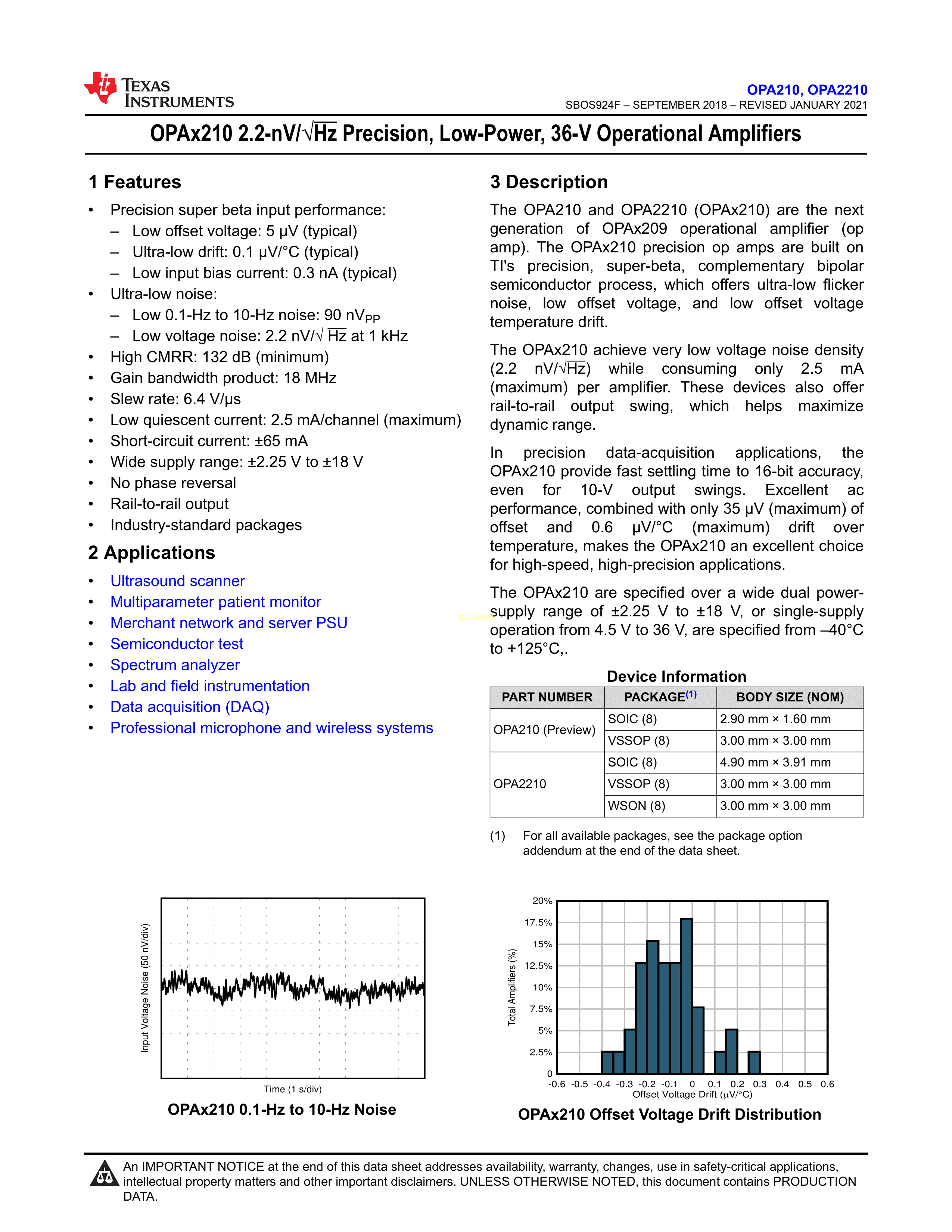 OPA2210IDRGT数据手册WSON-8封装TI(德州仪器)PDF规格书,中英文下载