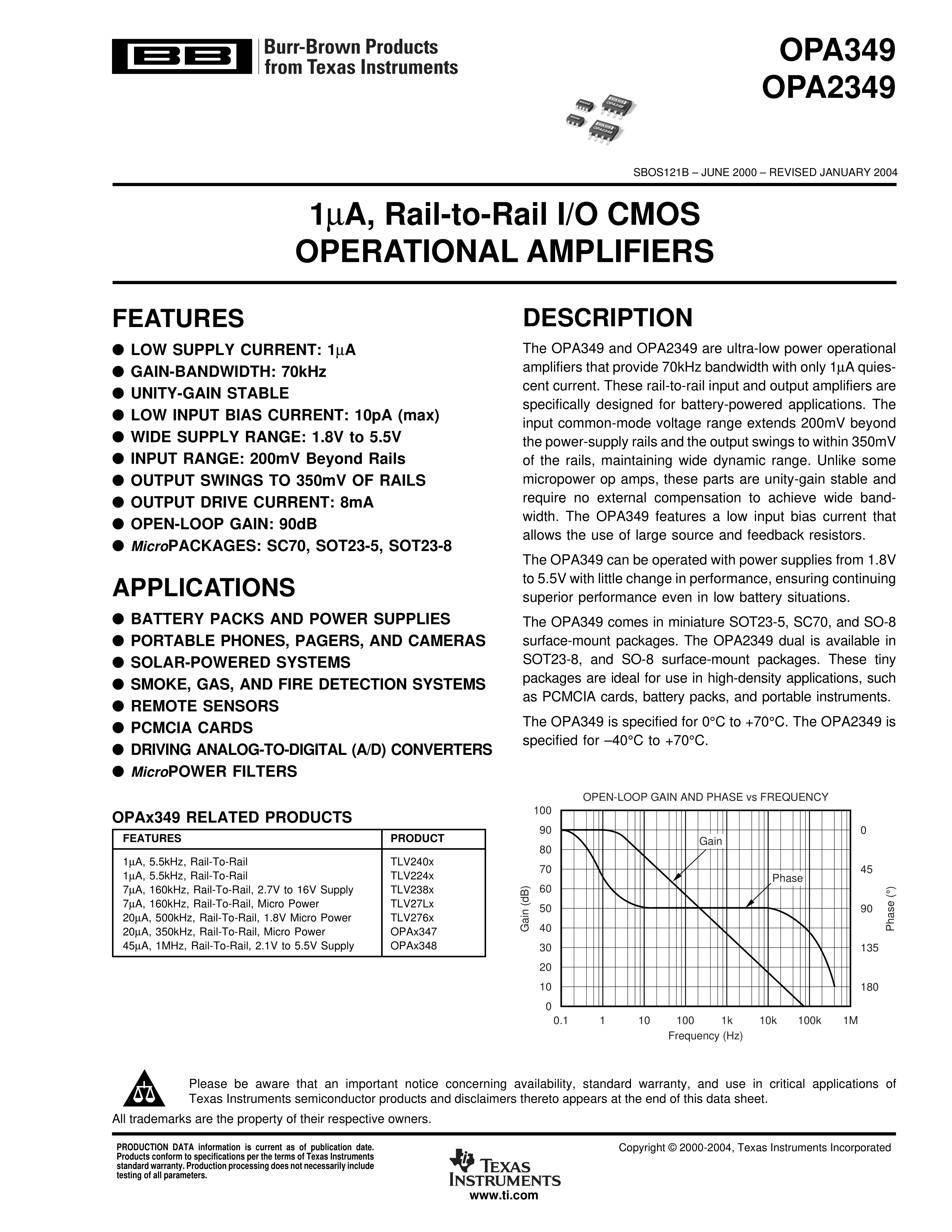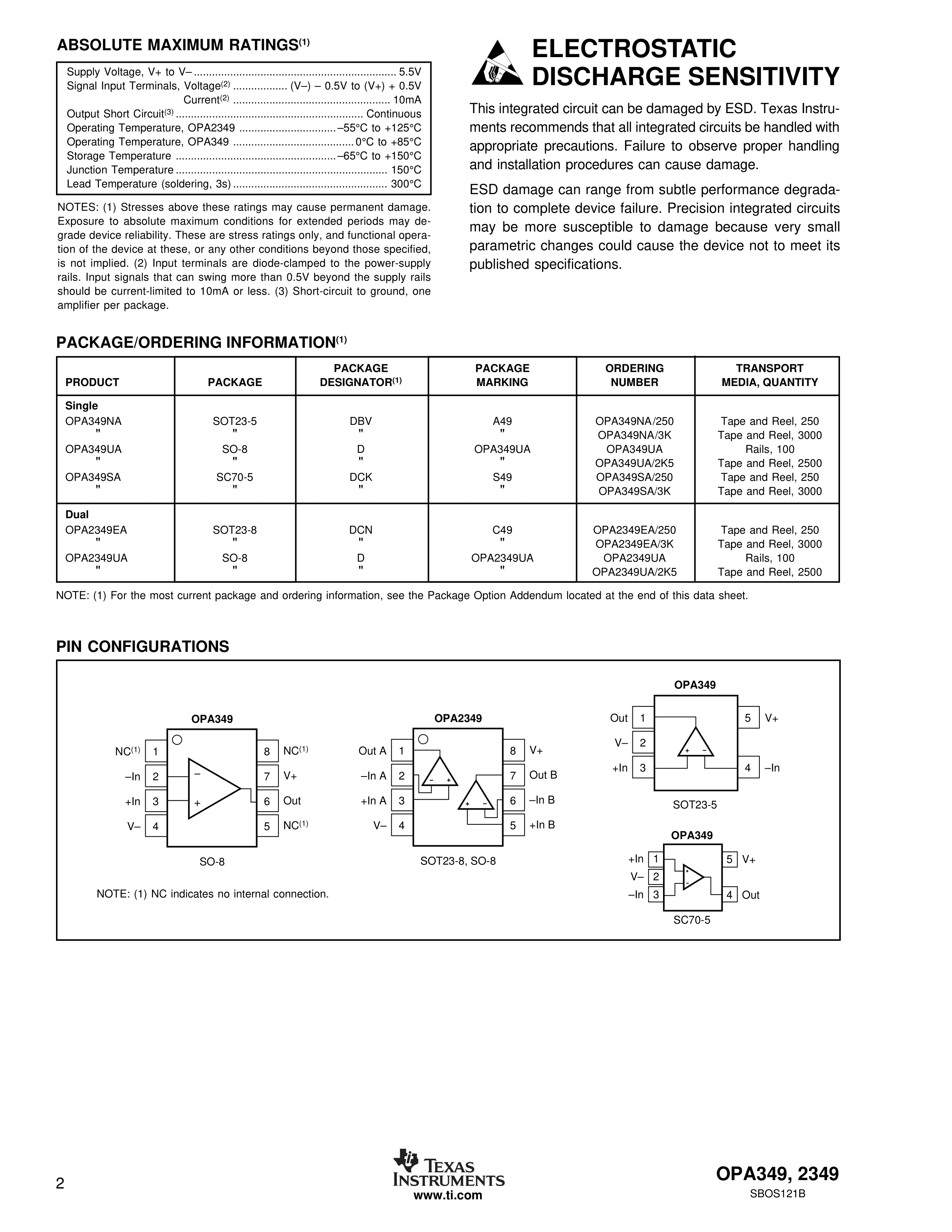 OPA2349UA-2K5数据手册SOIC-8封装TI(德州仪器)PDF规格书,中英文下载