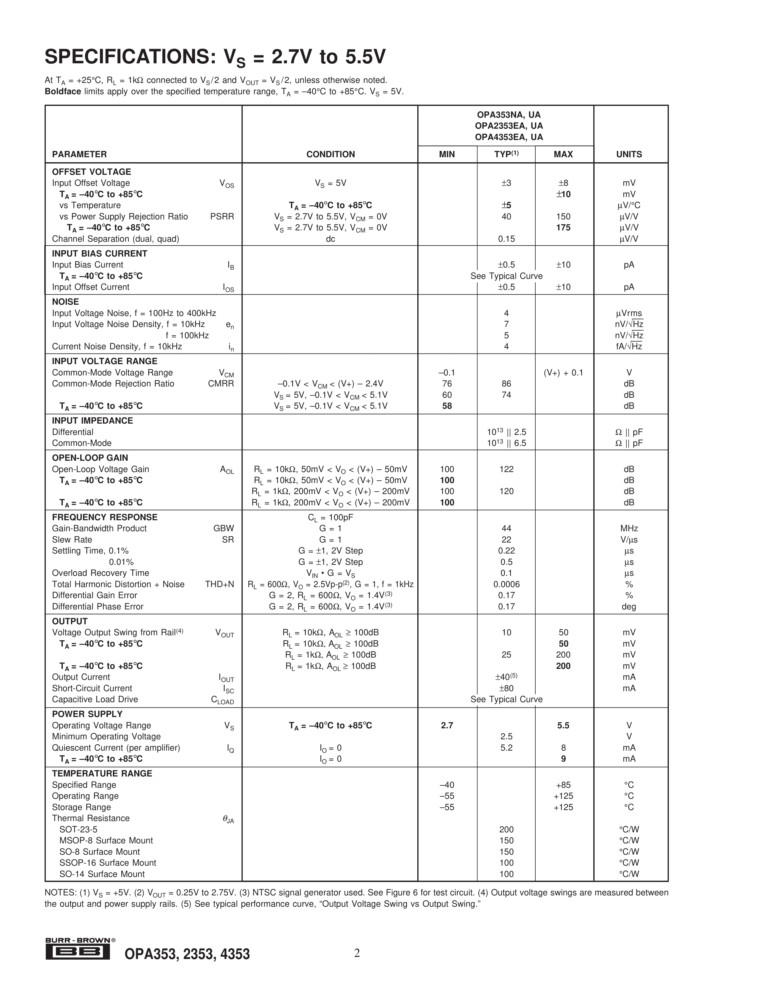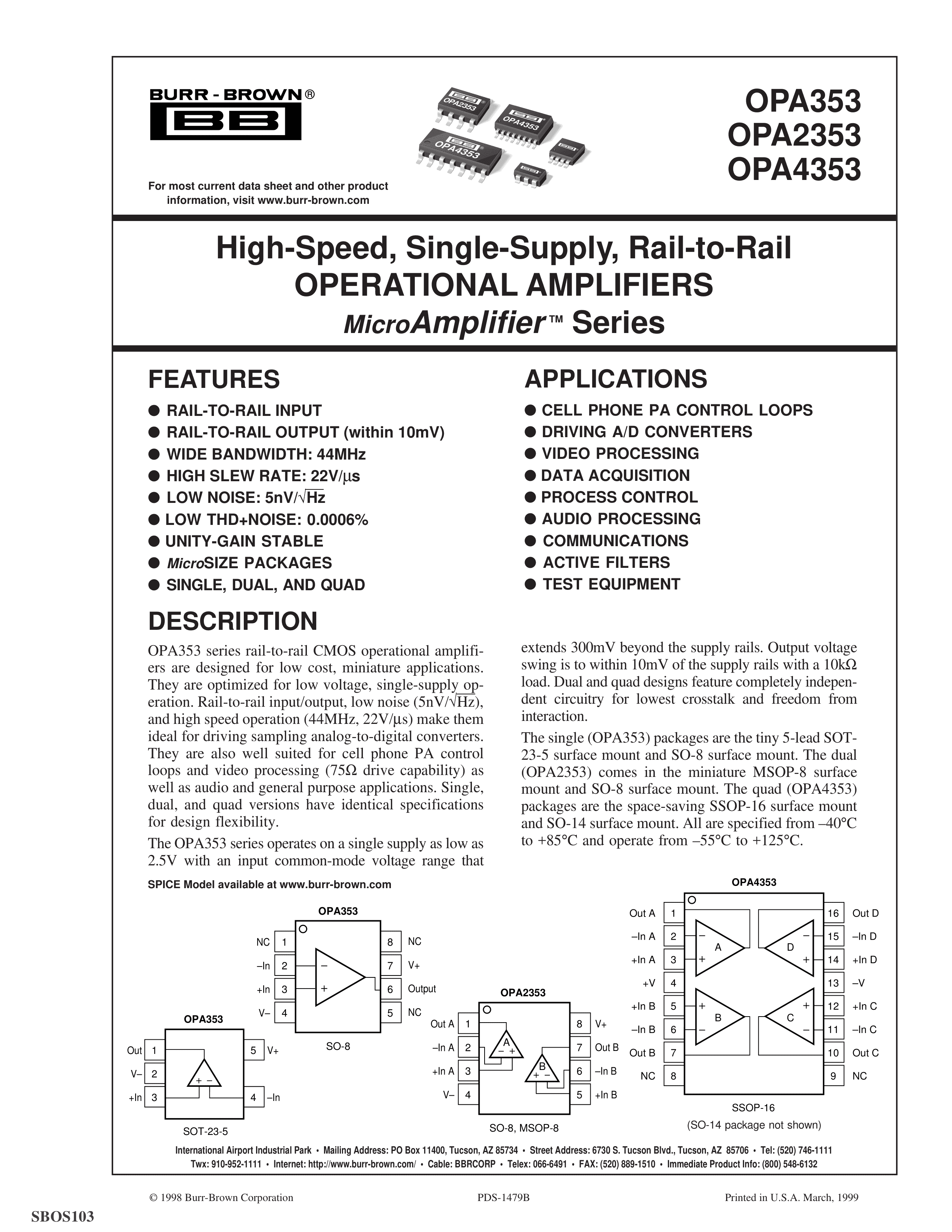OPA2353UA-2K5数据手册SO-8封装TI(德州仪器)PDF规格书,中英文下载