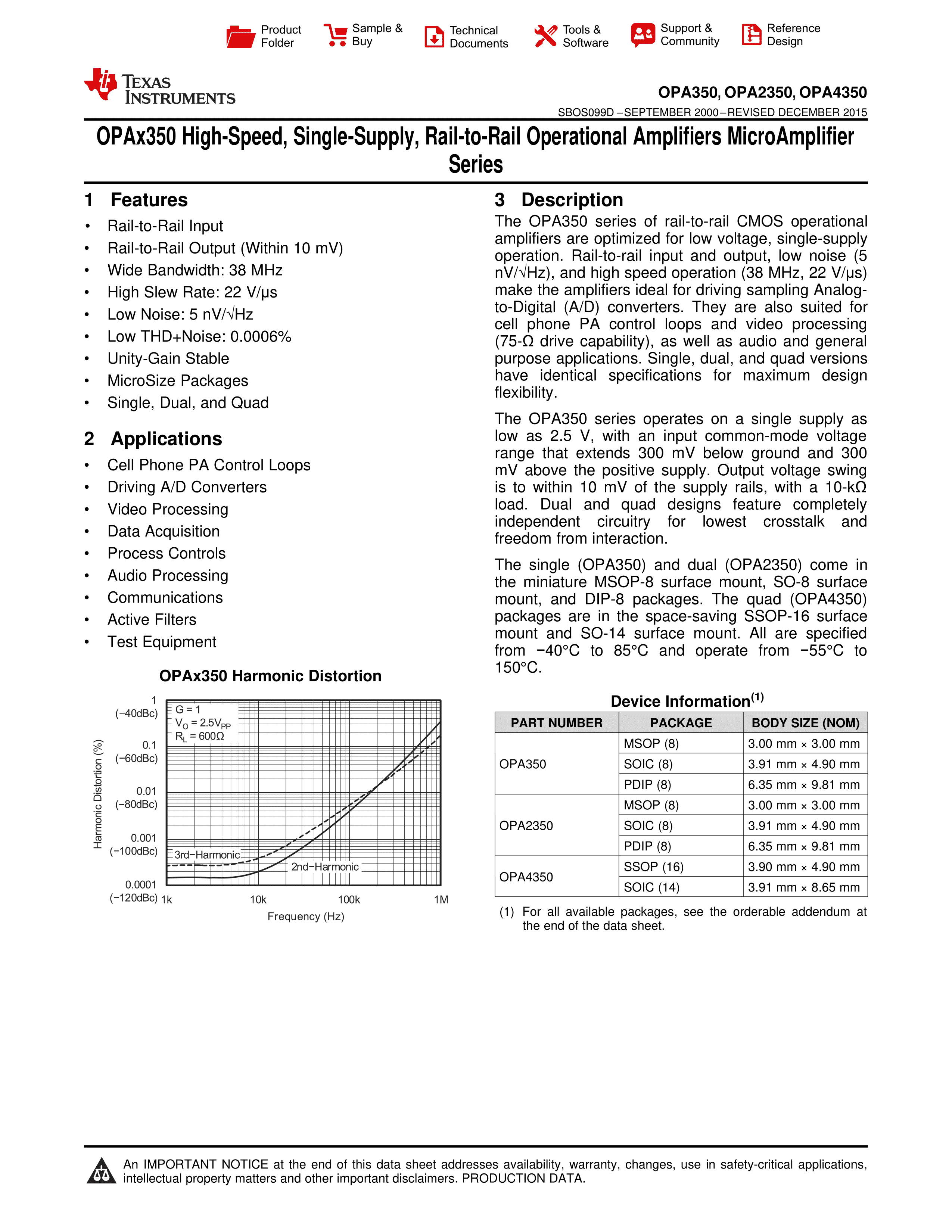 OPA350EA-2K5数据手册VSSOP-8封装TI(德州仪器)PDF规格书,中英文下载