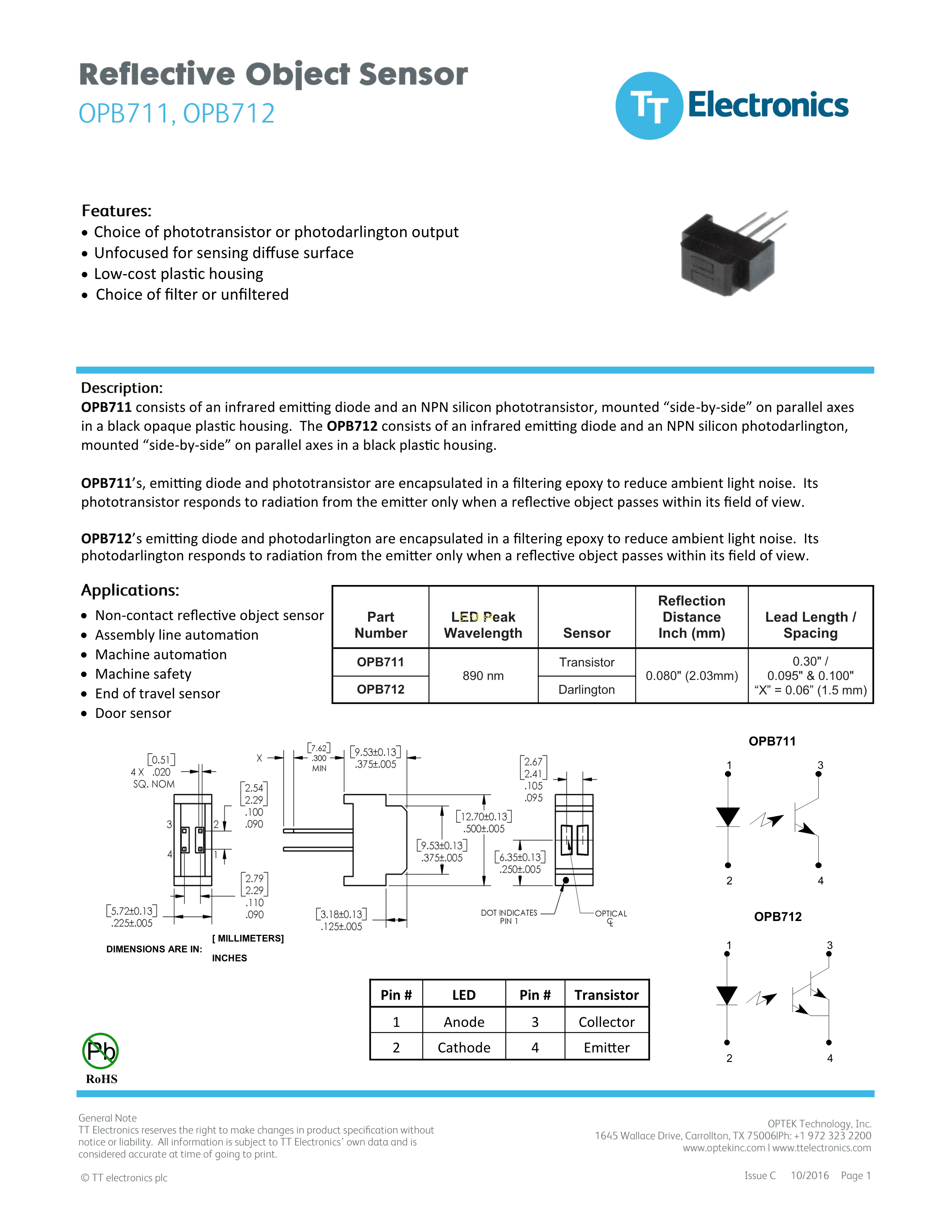 OPB712数据手册-封装OPTEKPDF规格书,中英文下载
