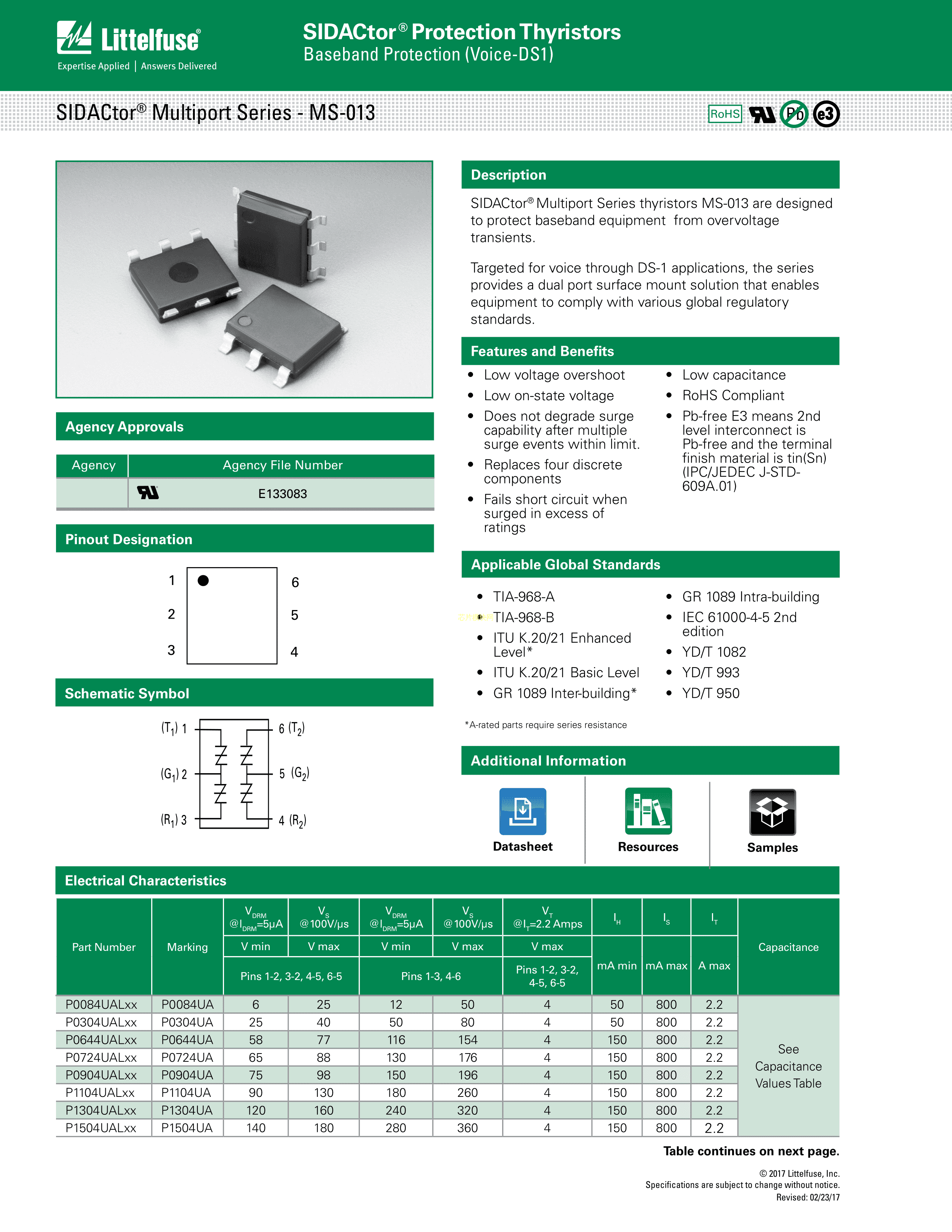 P0644UALTP数据手册SMD-6封装Littelfuse(美国力特)PDF规格书,中英文下载