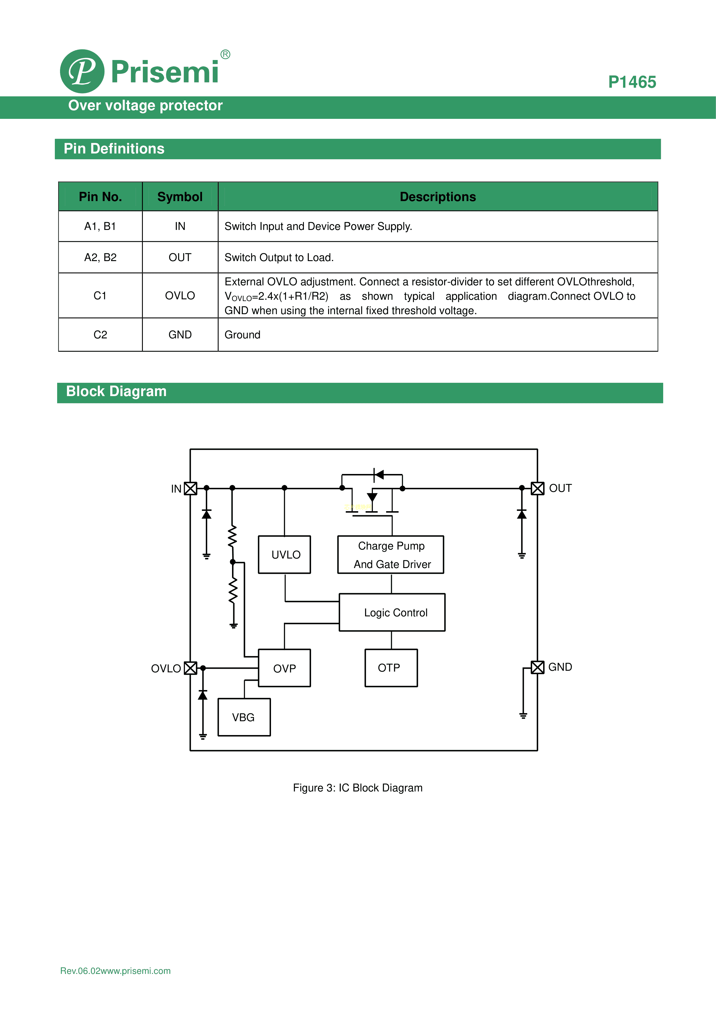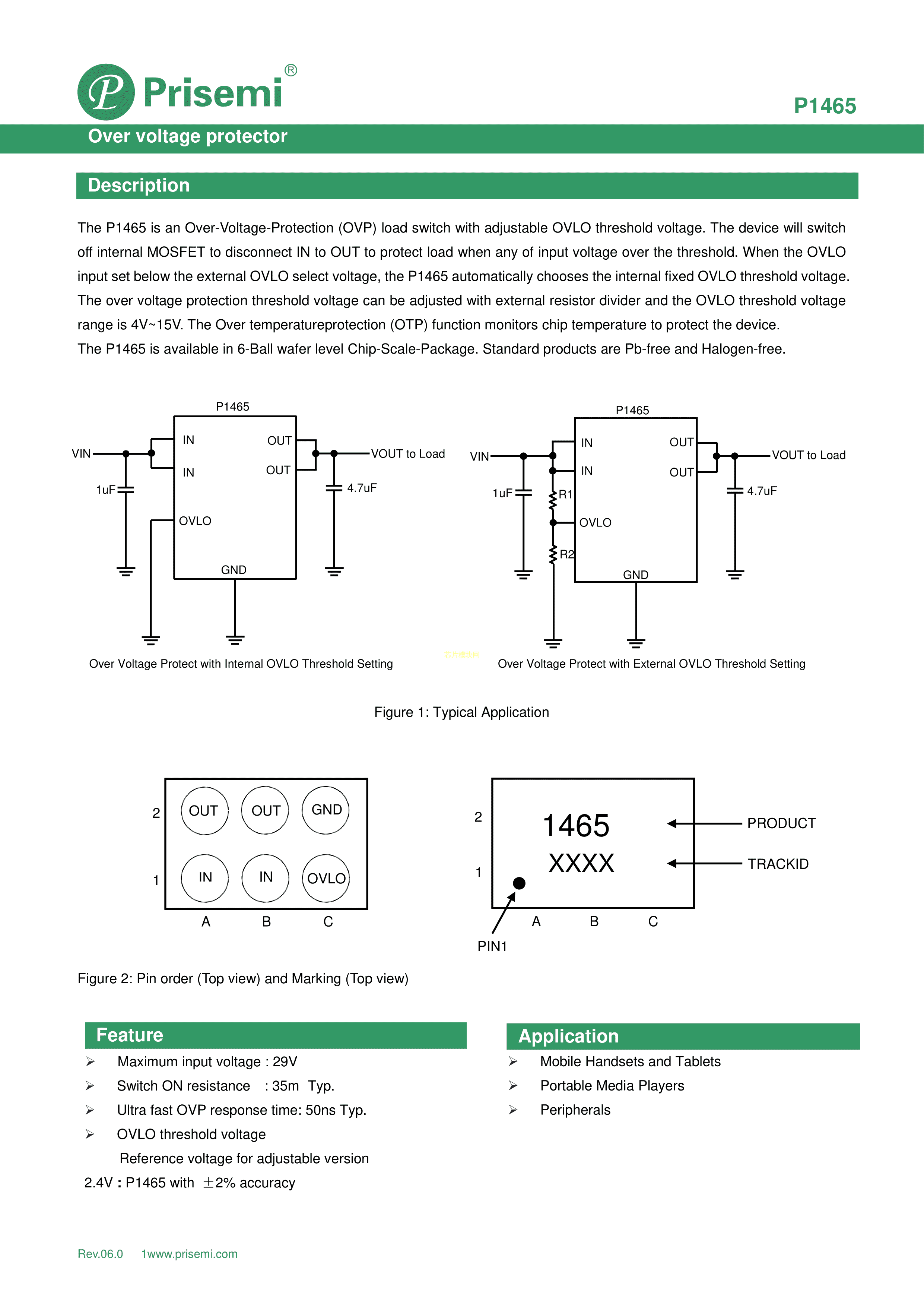 P1465数据手册WLCSP-6封装Prisemi(芯导)PDF规格书,中英文下载