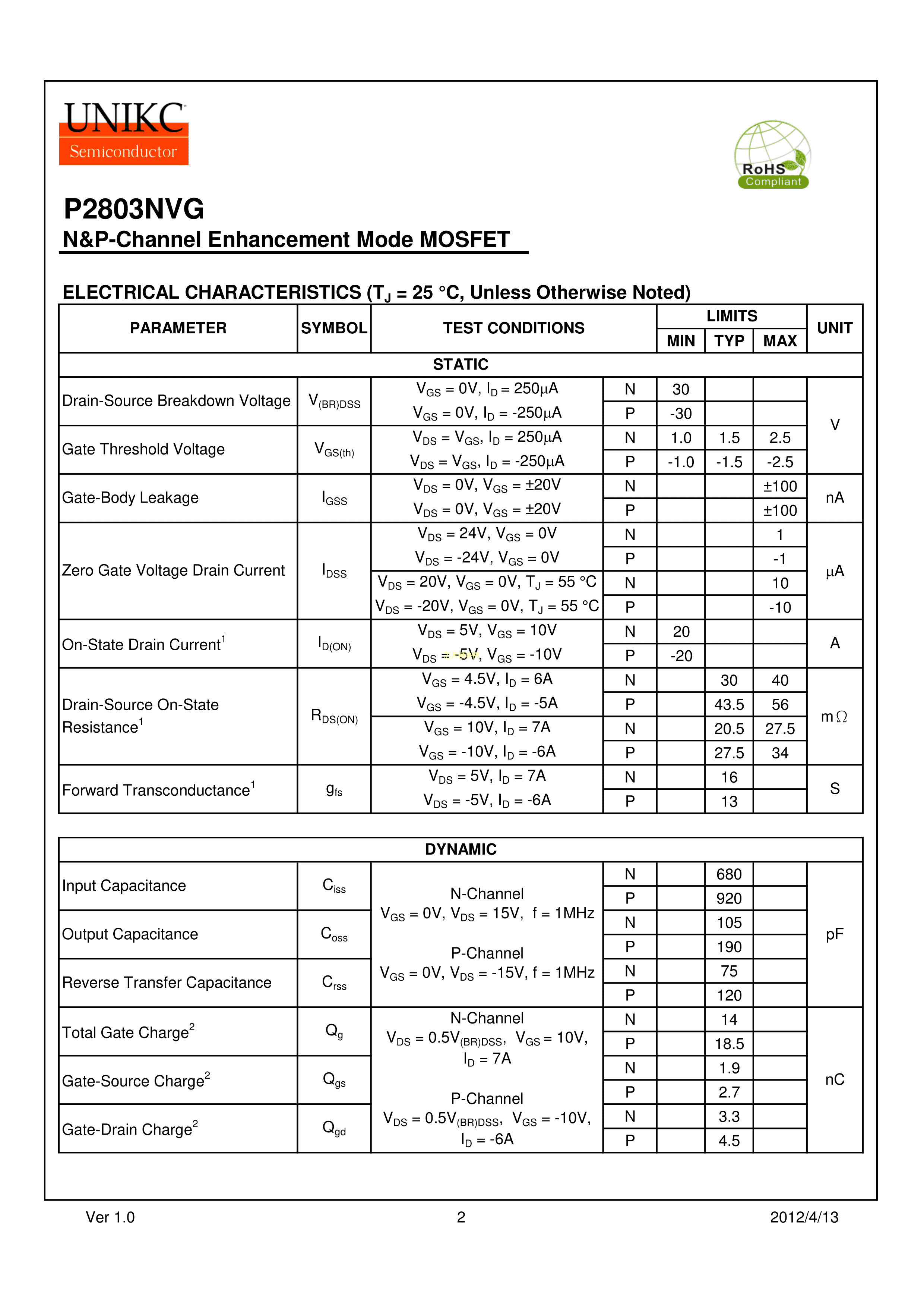 P2803NVG数据手册SOP-8_150mil封装NIKO-SEM(尼克森)PDF规格书,中英文下