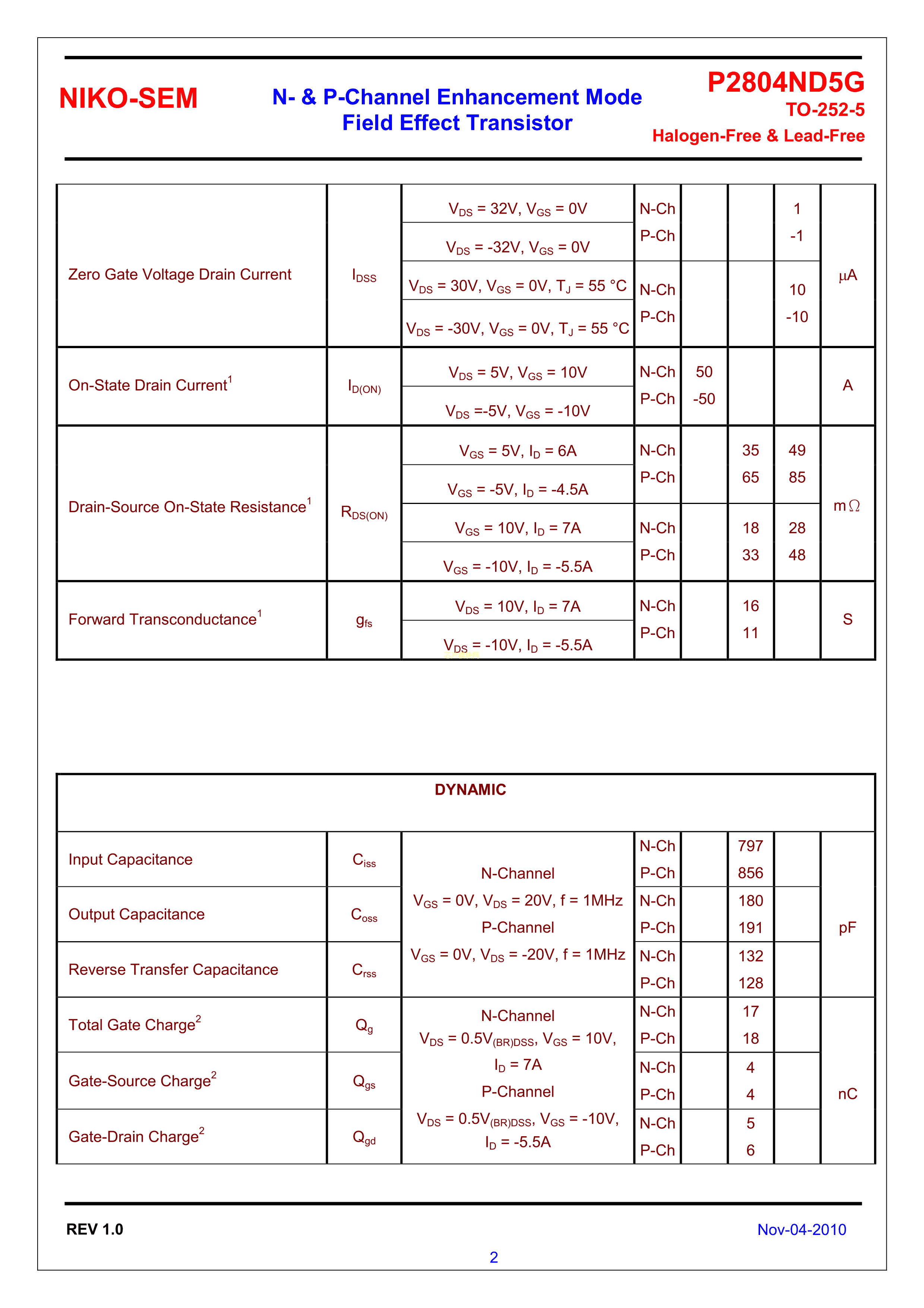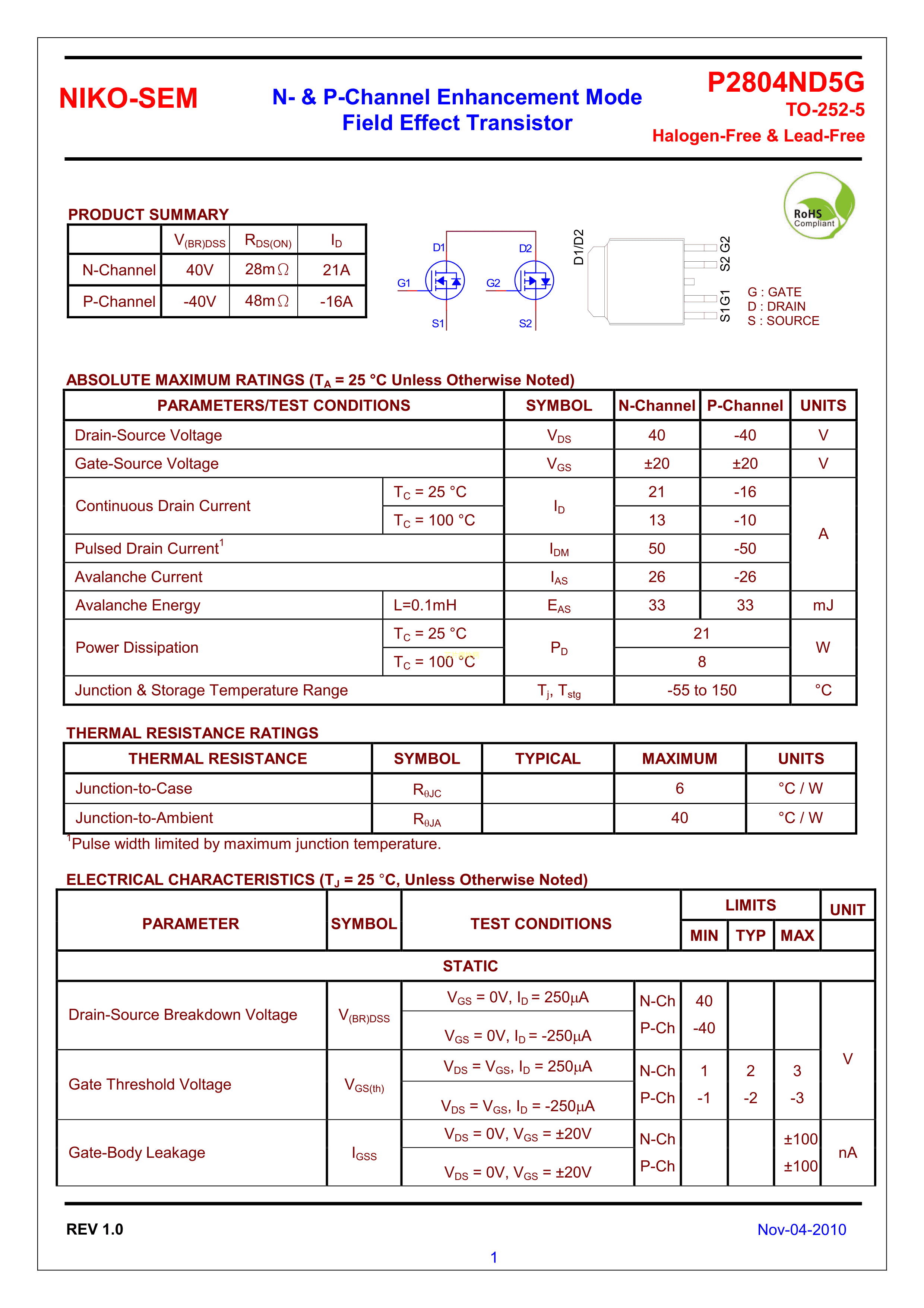 P2804ND5G数据手册TO-252-5封装NIKO-SEM(尼克森)PDF规格书,中英文下载