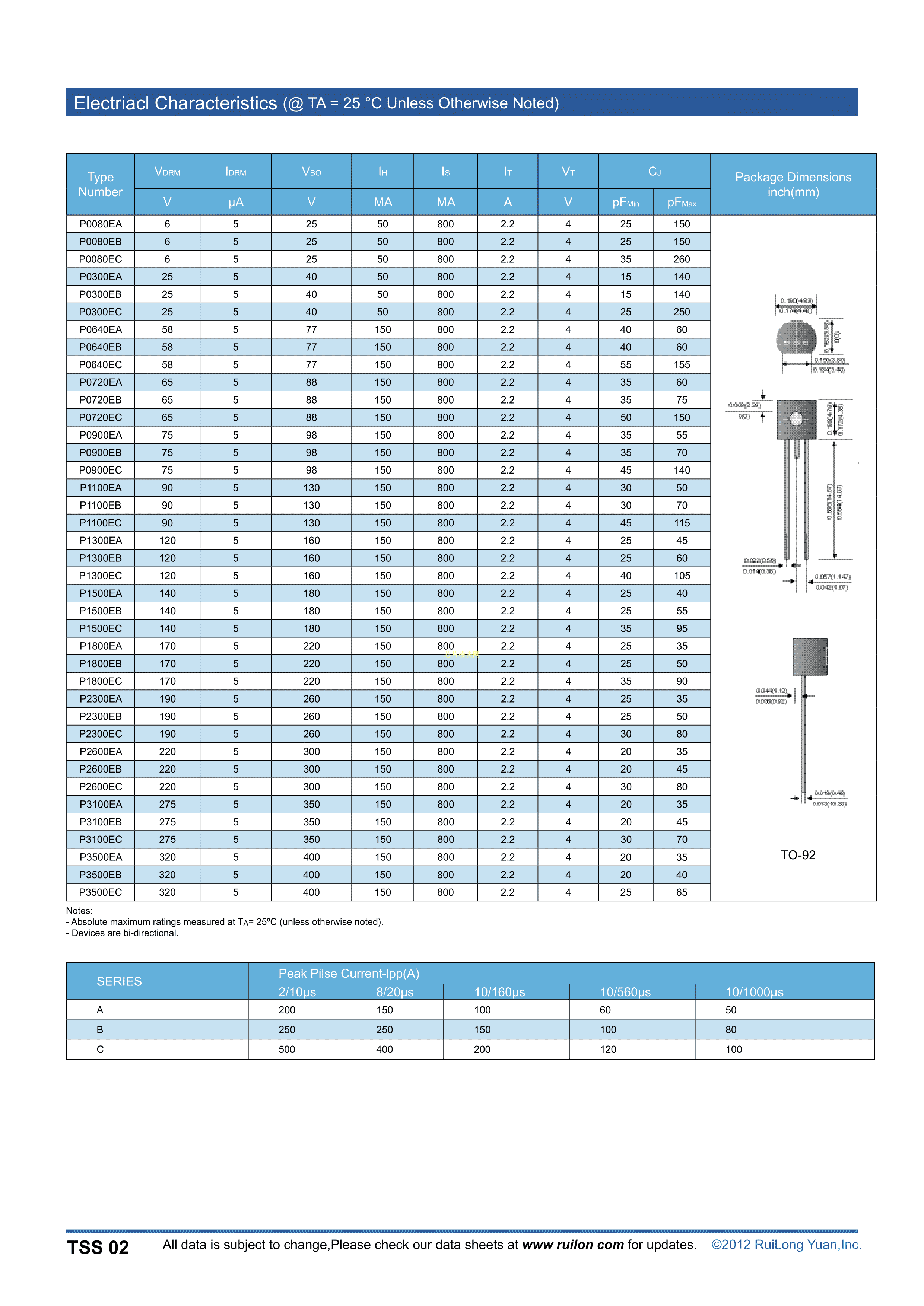 P3100EB数据手册TO-92-2封装RUILON(瑞隆源)PDF规格书,中英文下载