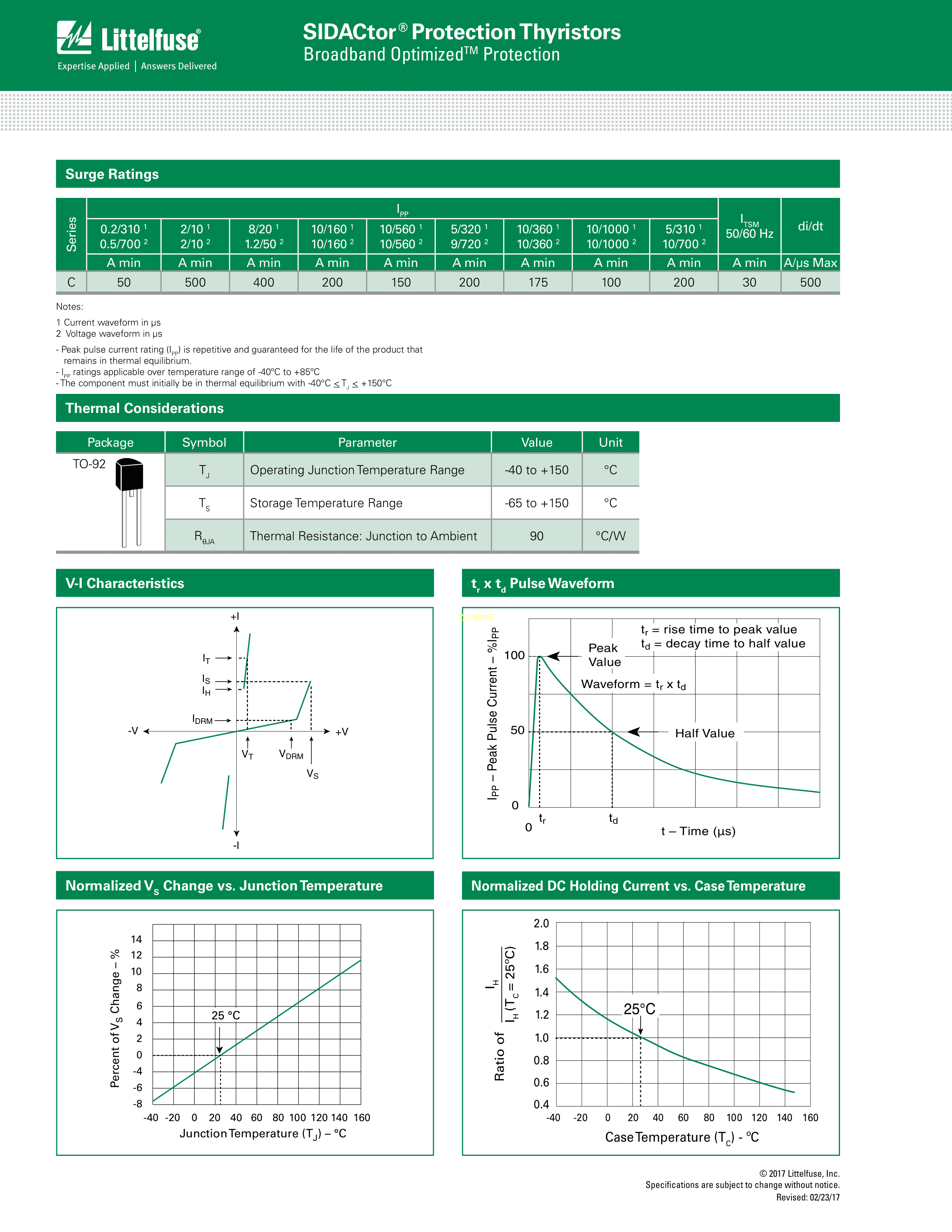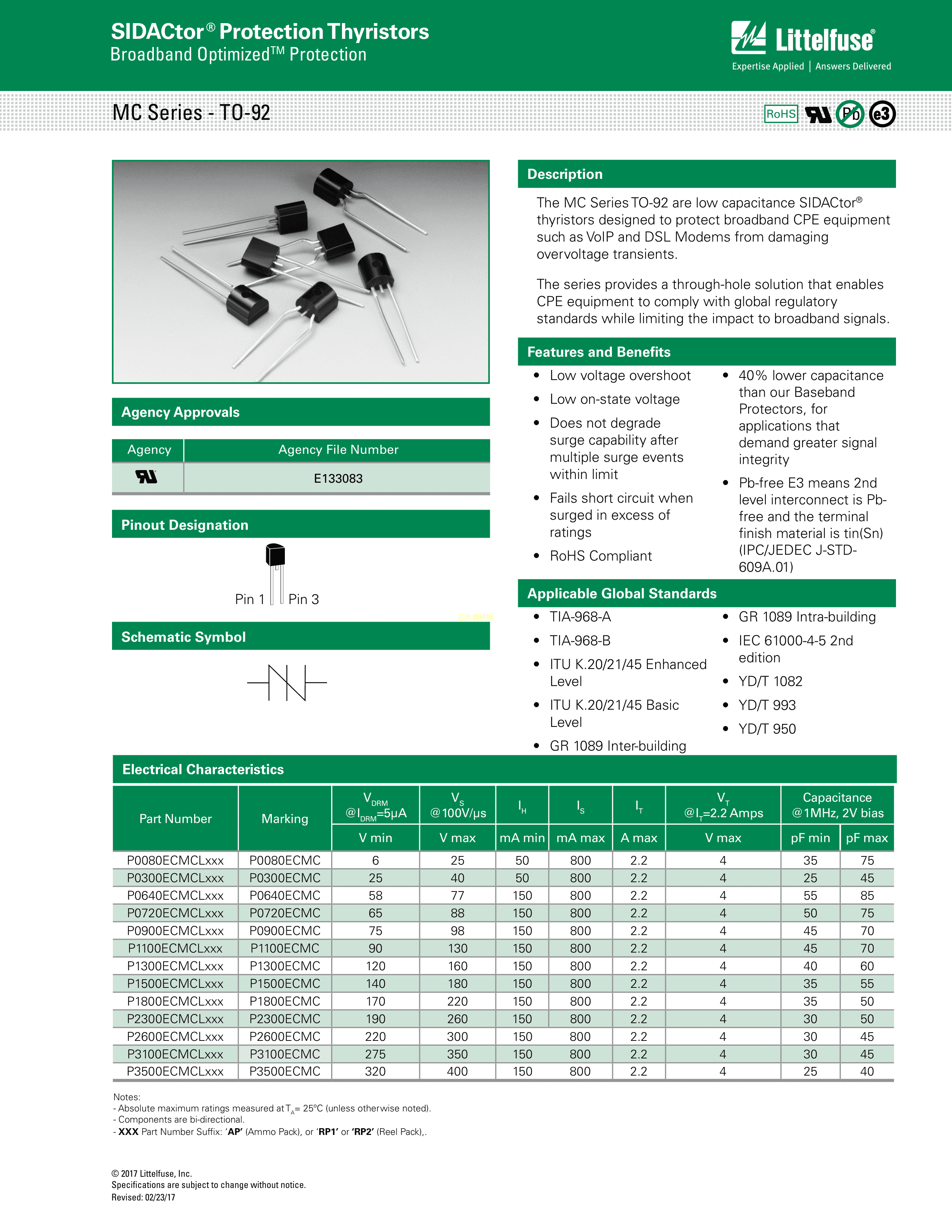 P3100ECMCL数据手册TO-92-2封装Littelfuse(美国力特)PDF规格书,中英文下