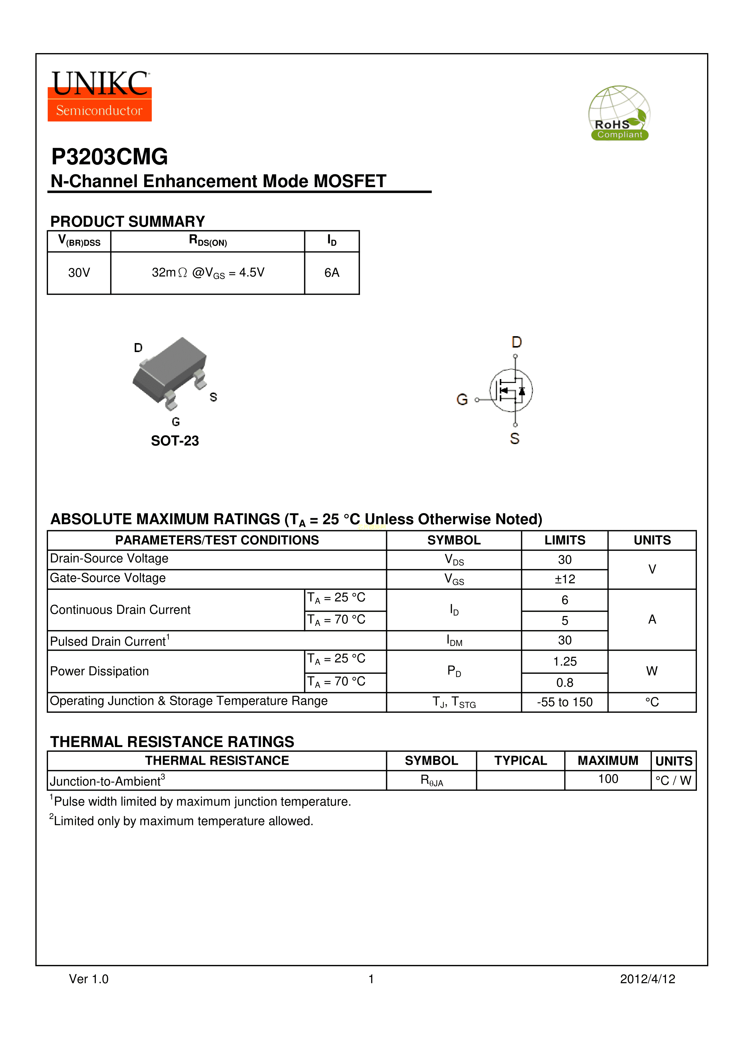 P3203CMG数据手册SOT-23(SOT-23-3)封装NIKO-SEM(尼克森)PDF规格书,