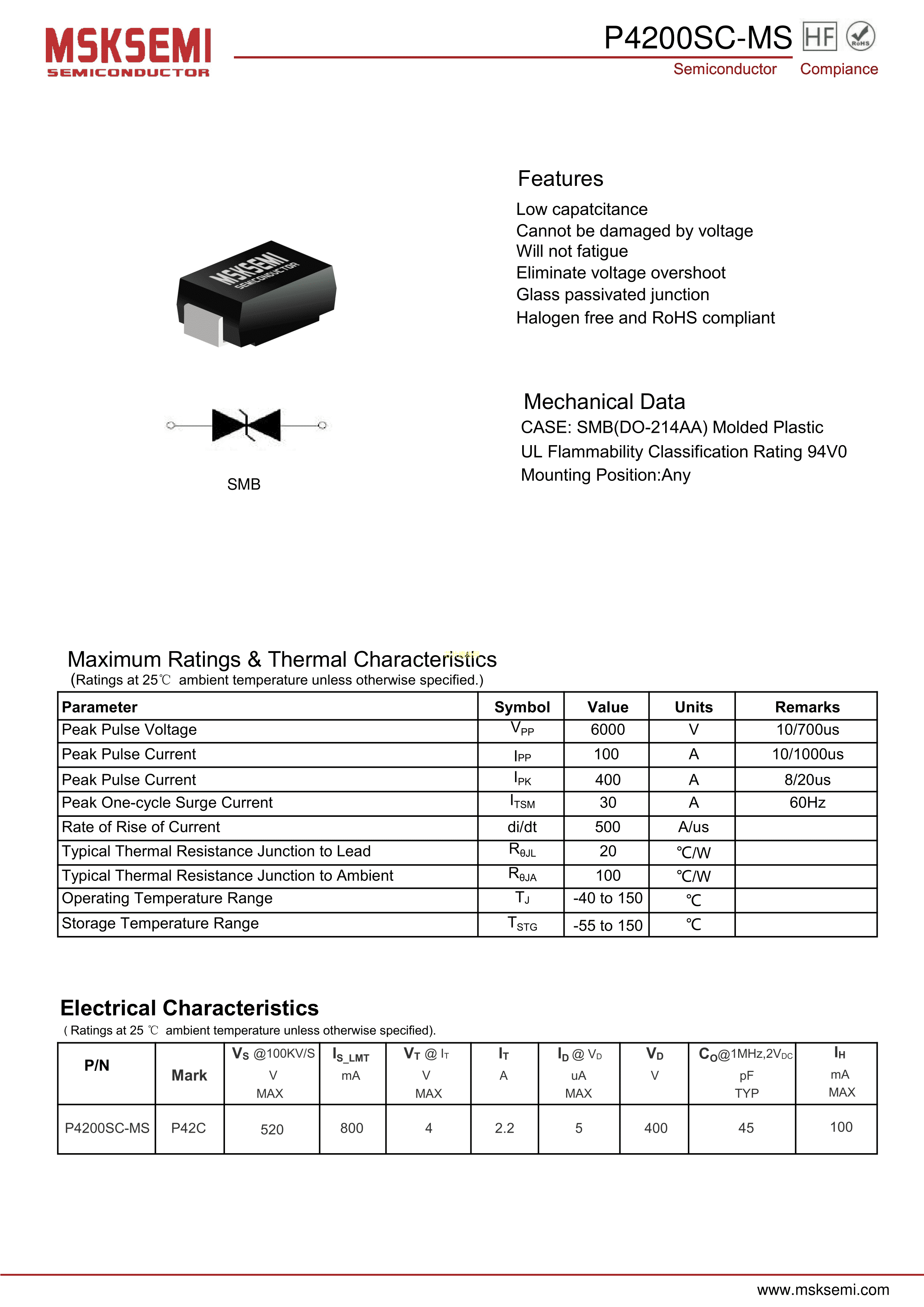 P4200SC-MS数据手册SMB封装MSKSEMI(美森科)PDF规格书,中英文下载