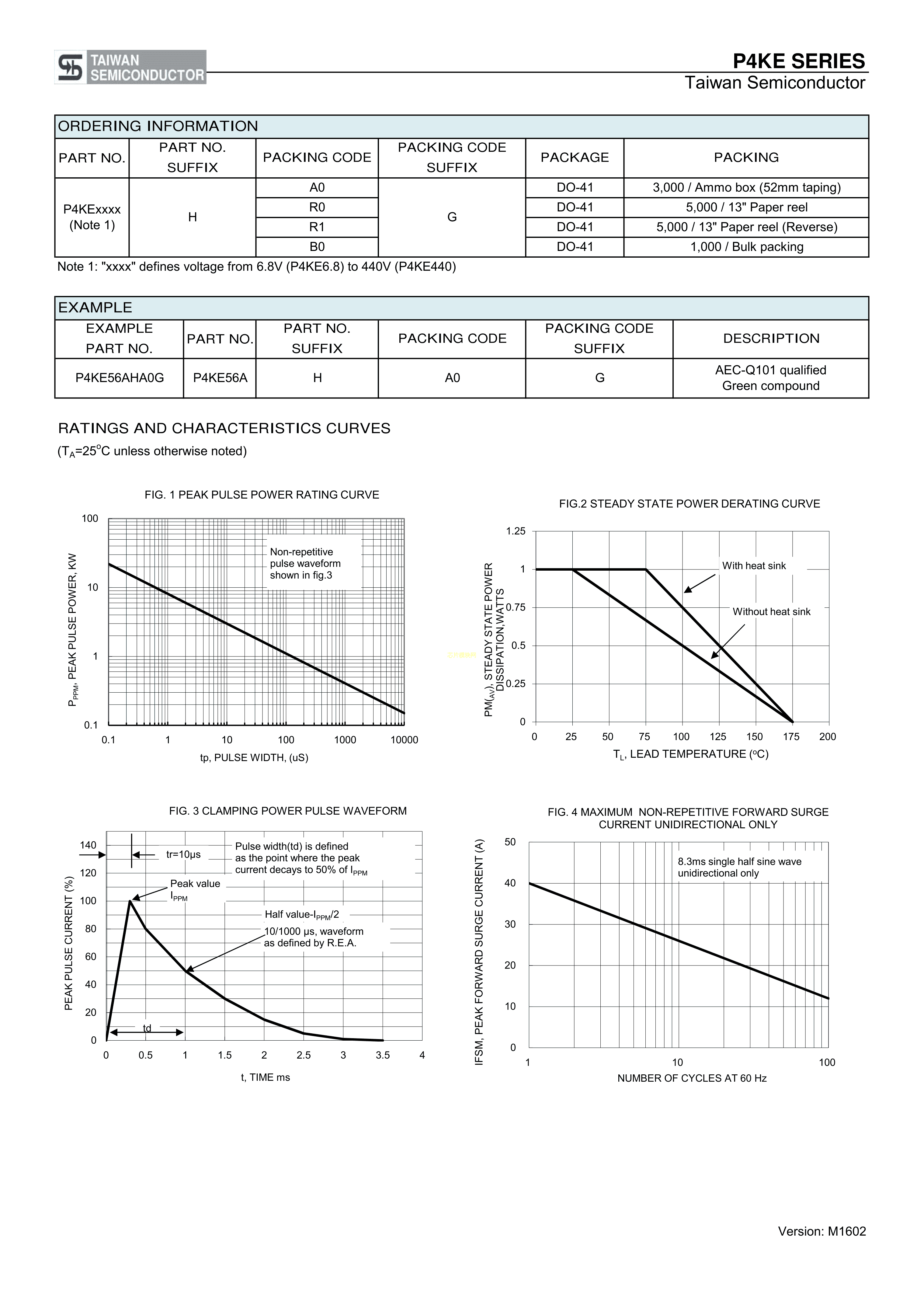P4KE180CA R0G数据手册DO-41(DO-204AL)封装Taiwan Semicondu