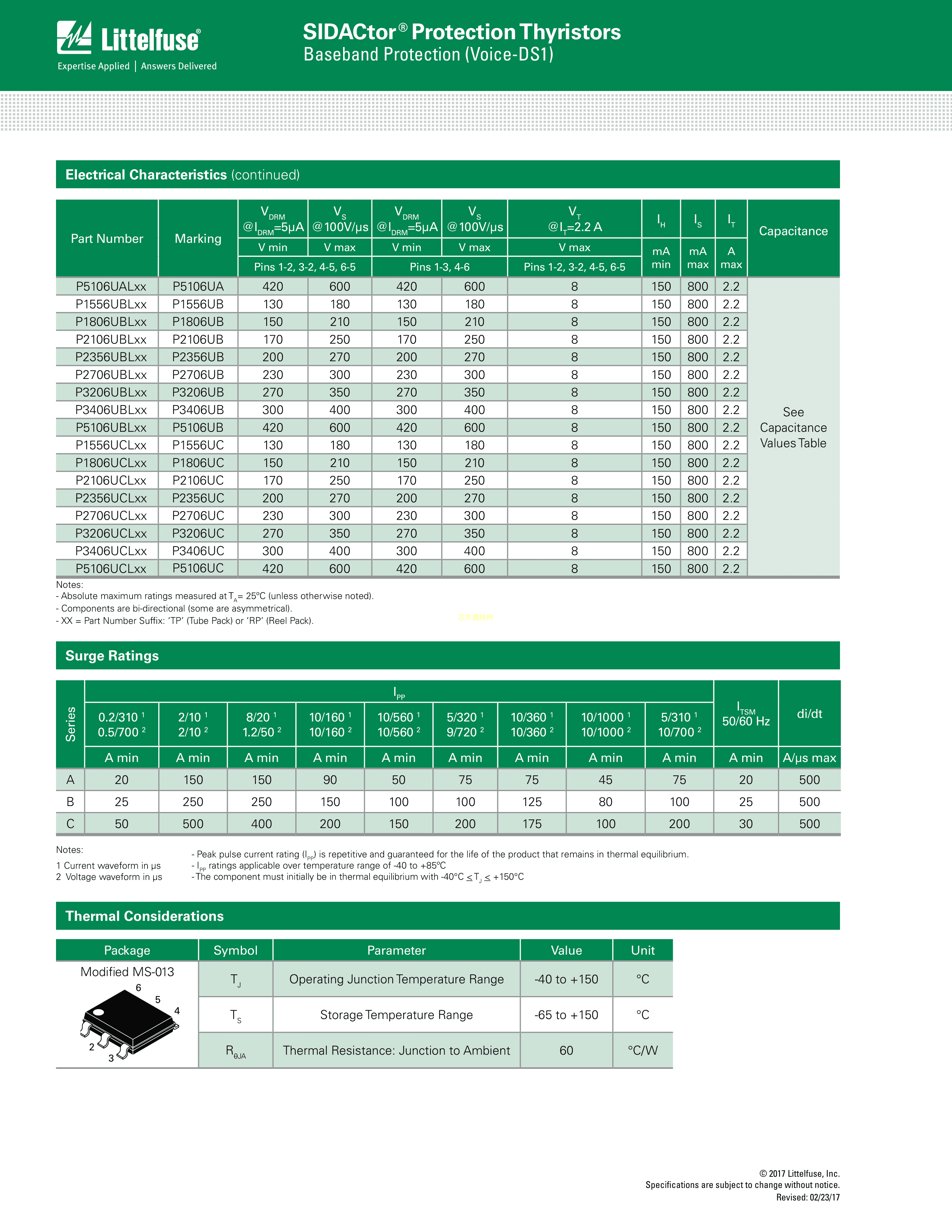 P5106UCLRP数据手册SMD-6封装Littelfuse(美国力特)PDF规格书,中英文下载