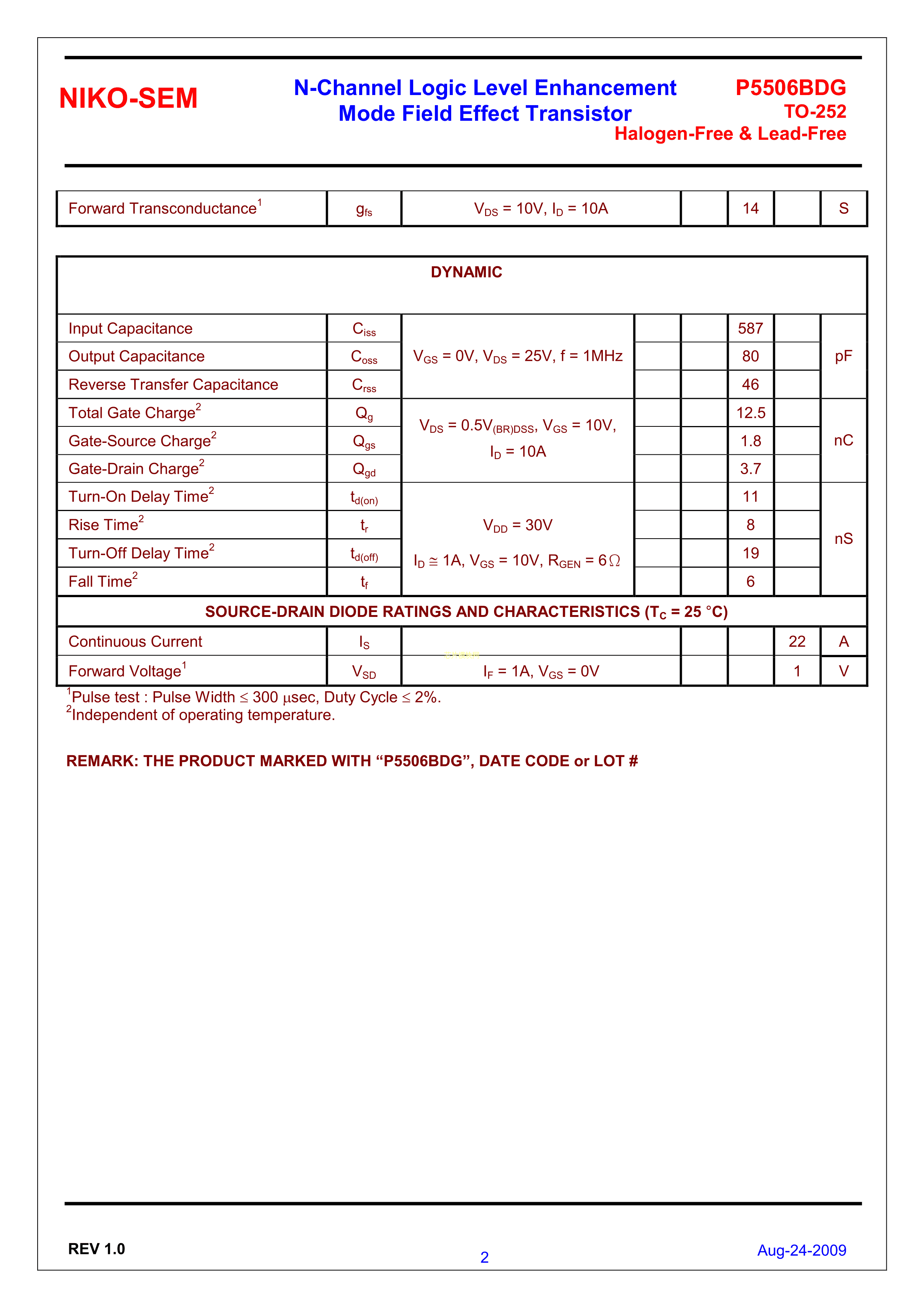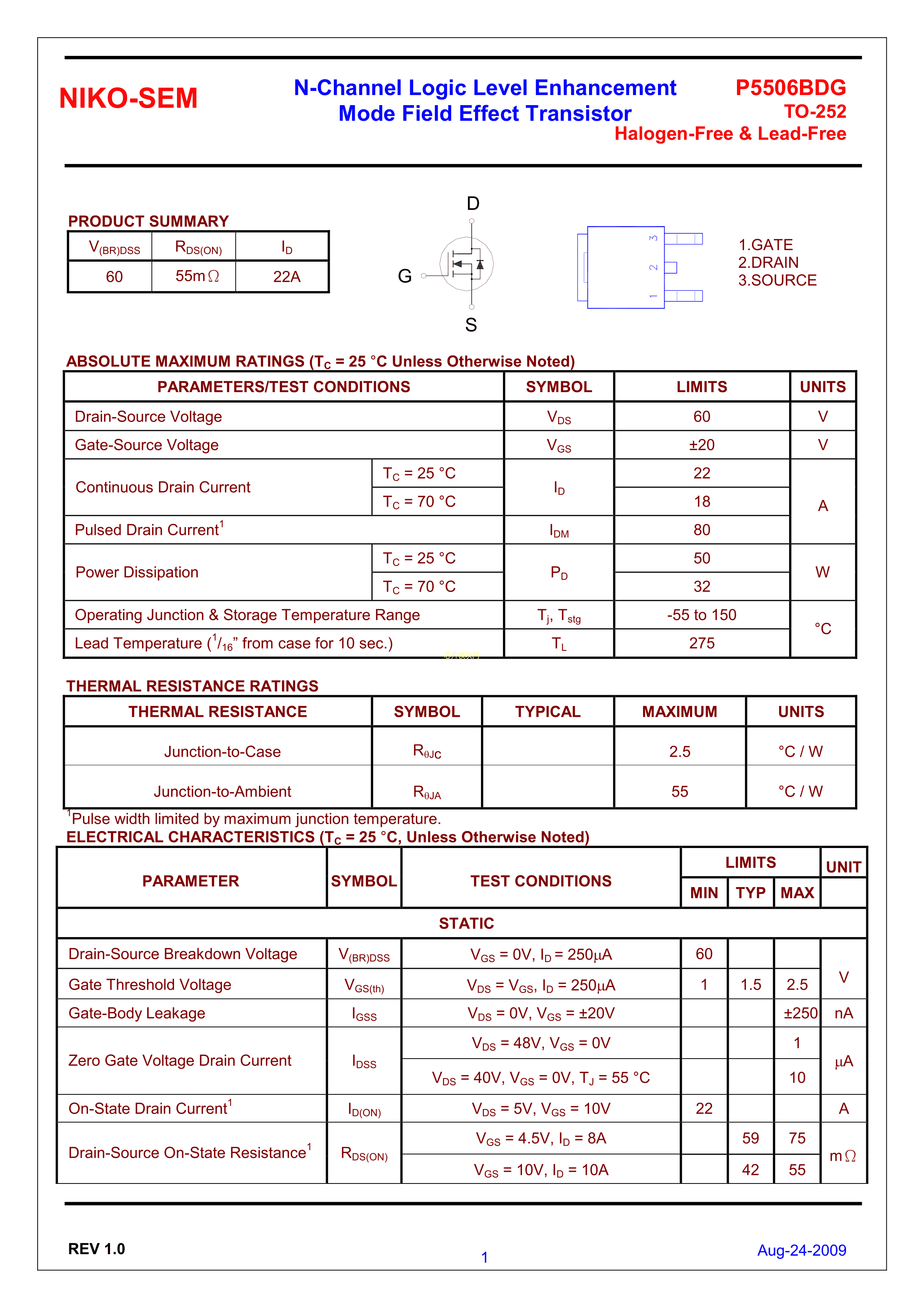 P5506BDG数据手册TO-252封装NIKO-SEM(尼克森)PDF规格书,中英文下载