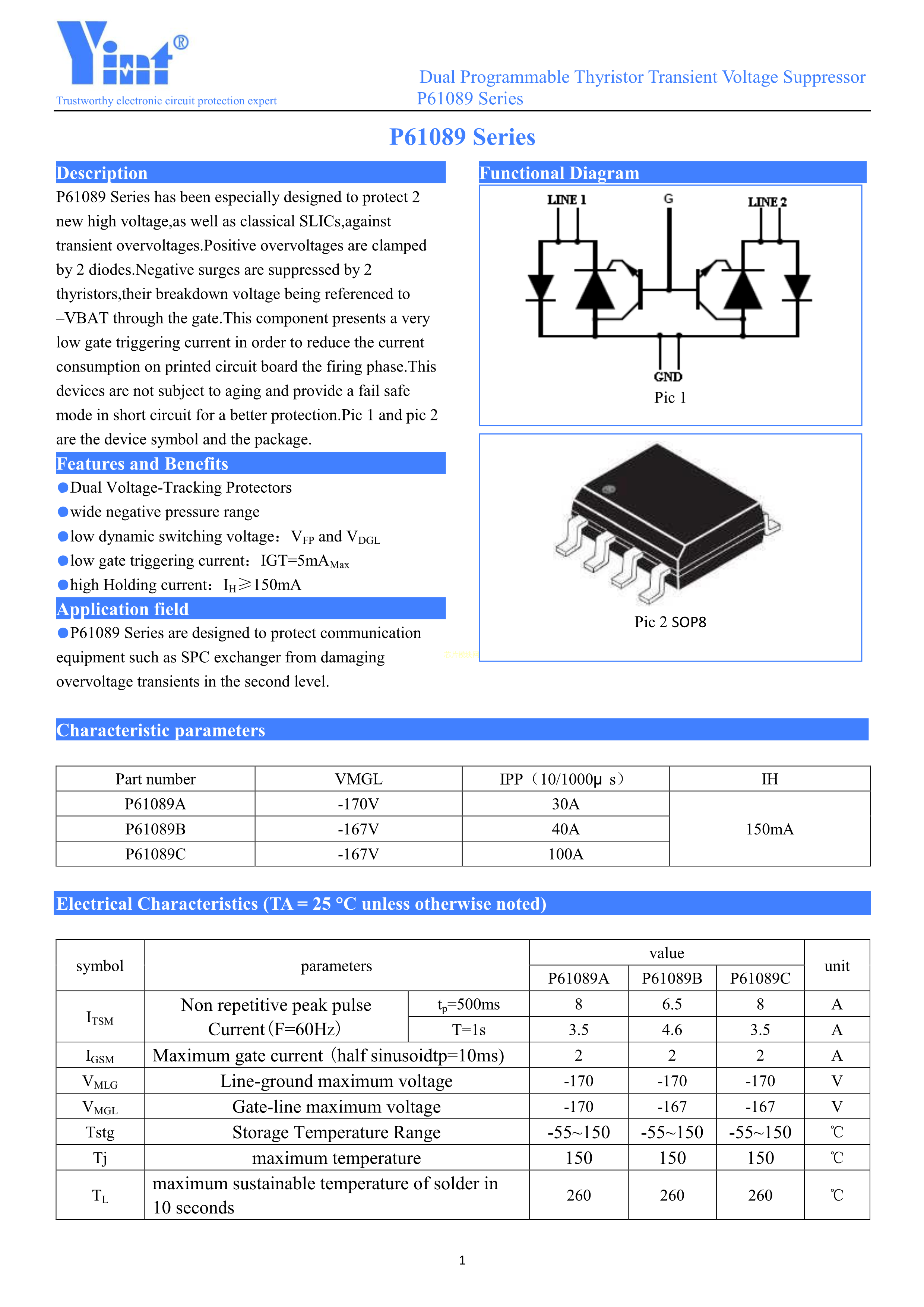 P61089B数据手册S0P-8封装Yint(音特电子)PDF规格书,中英文下载