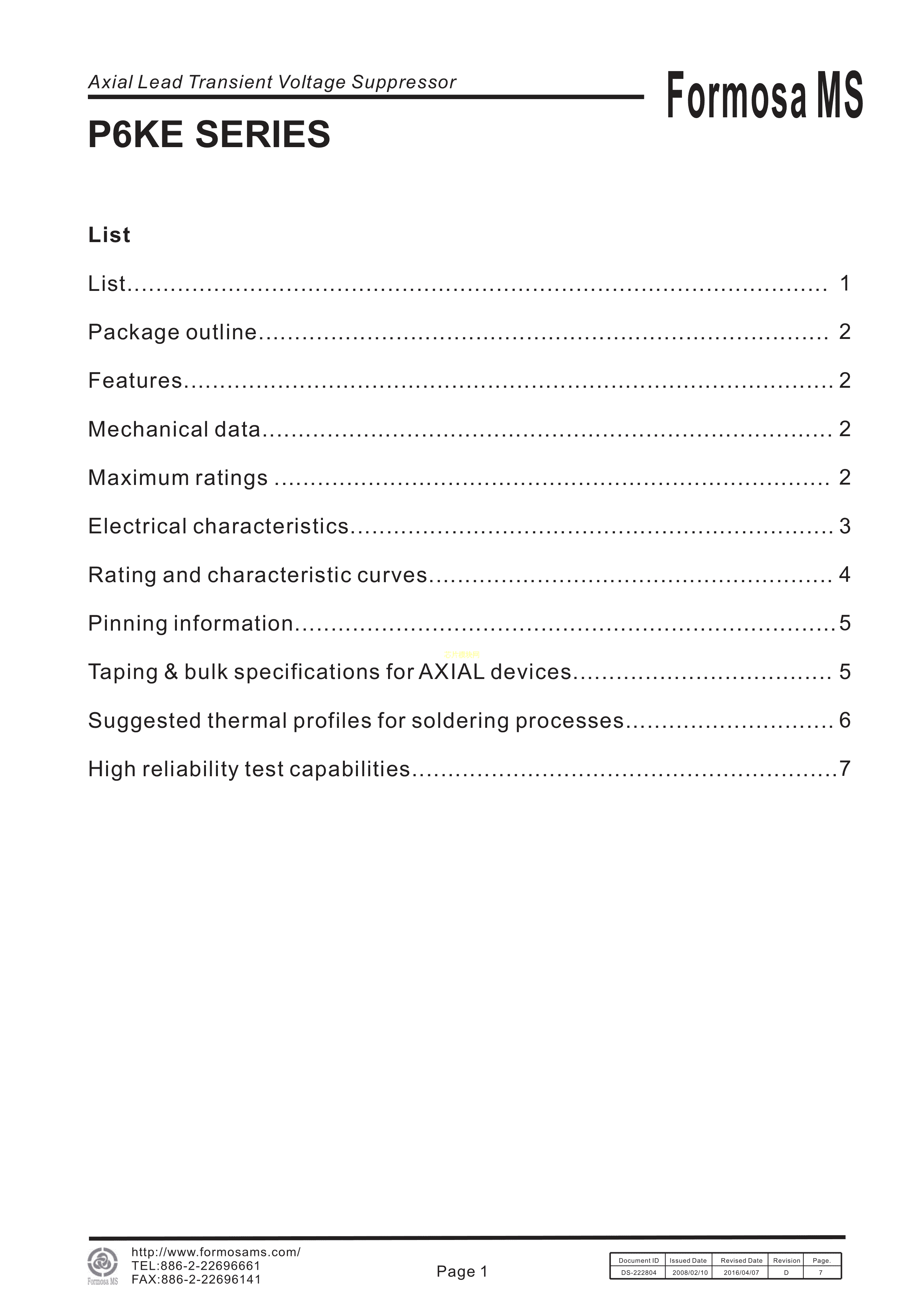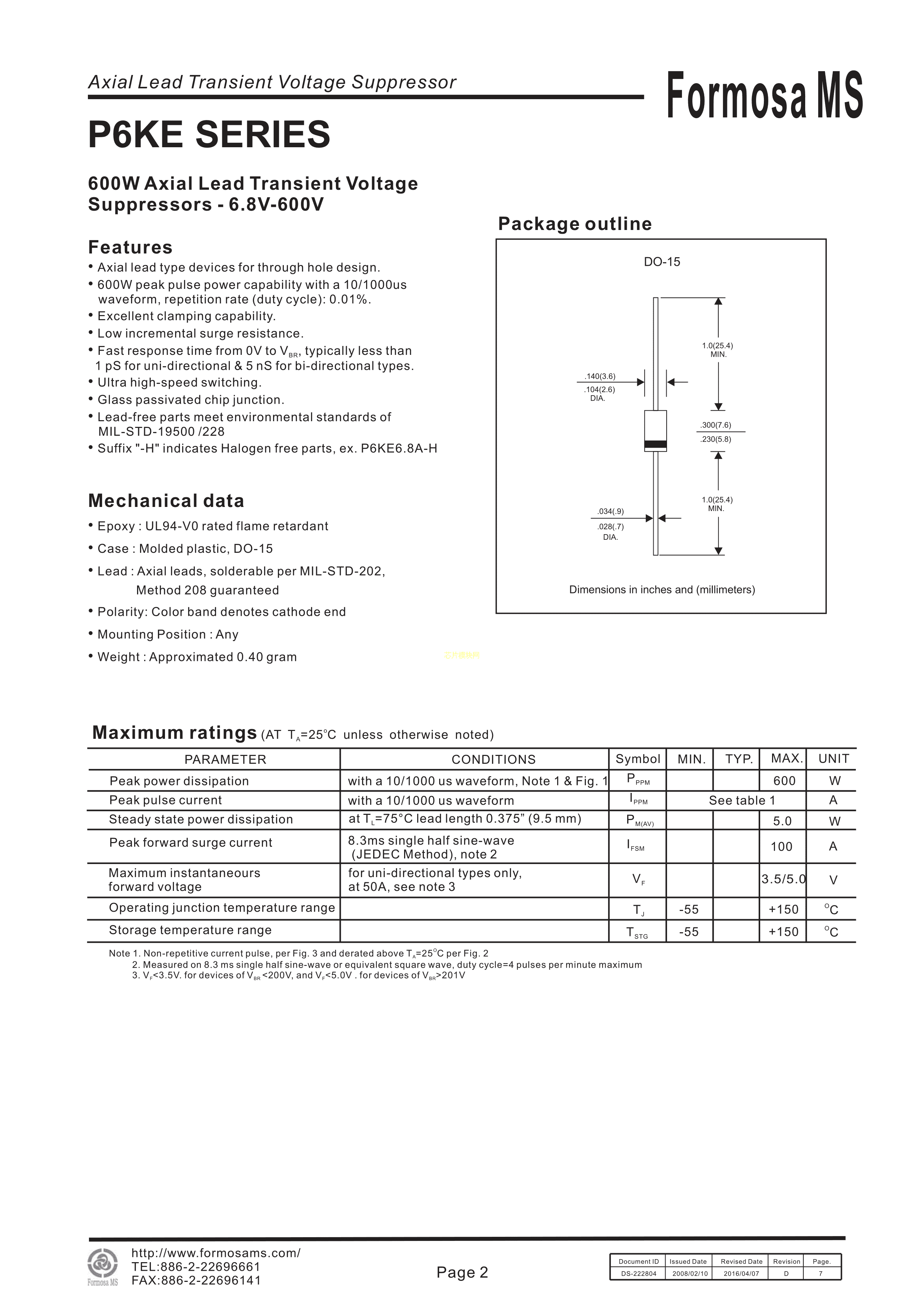 P6KE20CA数据手册DO-15封装FMS(台湾美丽微)PDF规格书,中英文下载