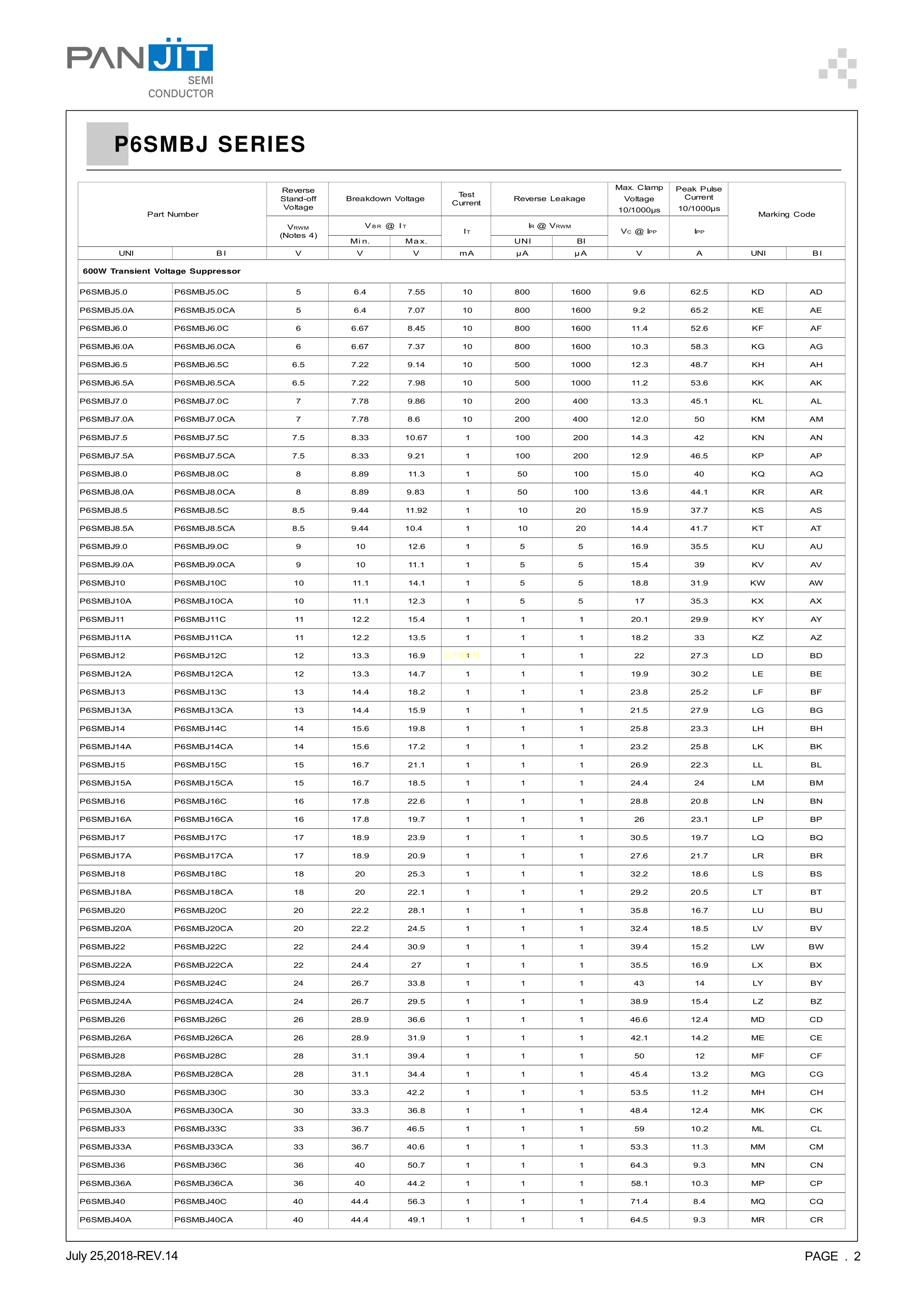 P6SMBJ150A_R1_00001数据手册SMB封装PANJIT(强茂)PDF规格书,中英文下载