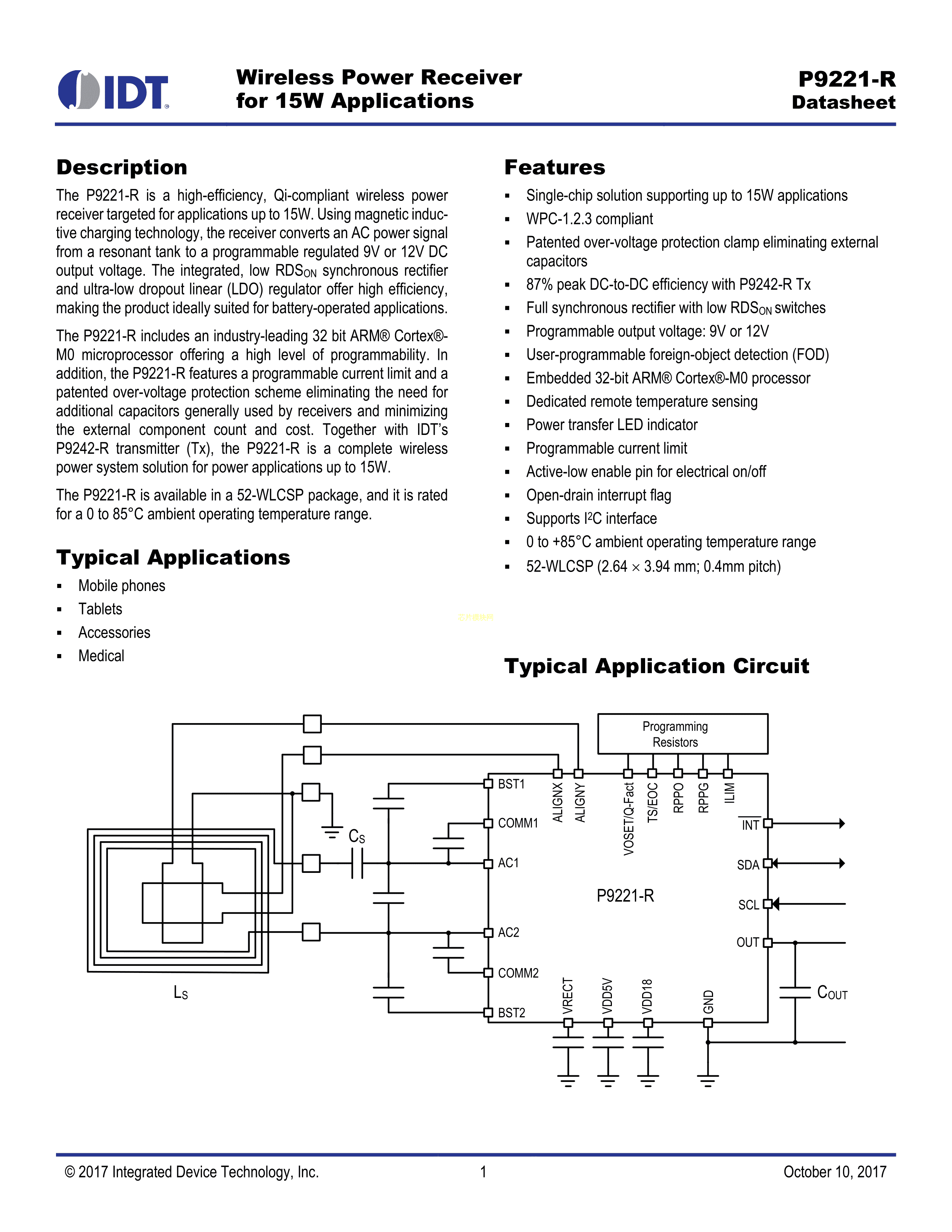 P9221-RAHGI8数据手册WLCSP-52封装RENESAS(瑞萨)-IDTPDF规格书,中英