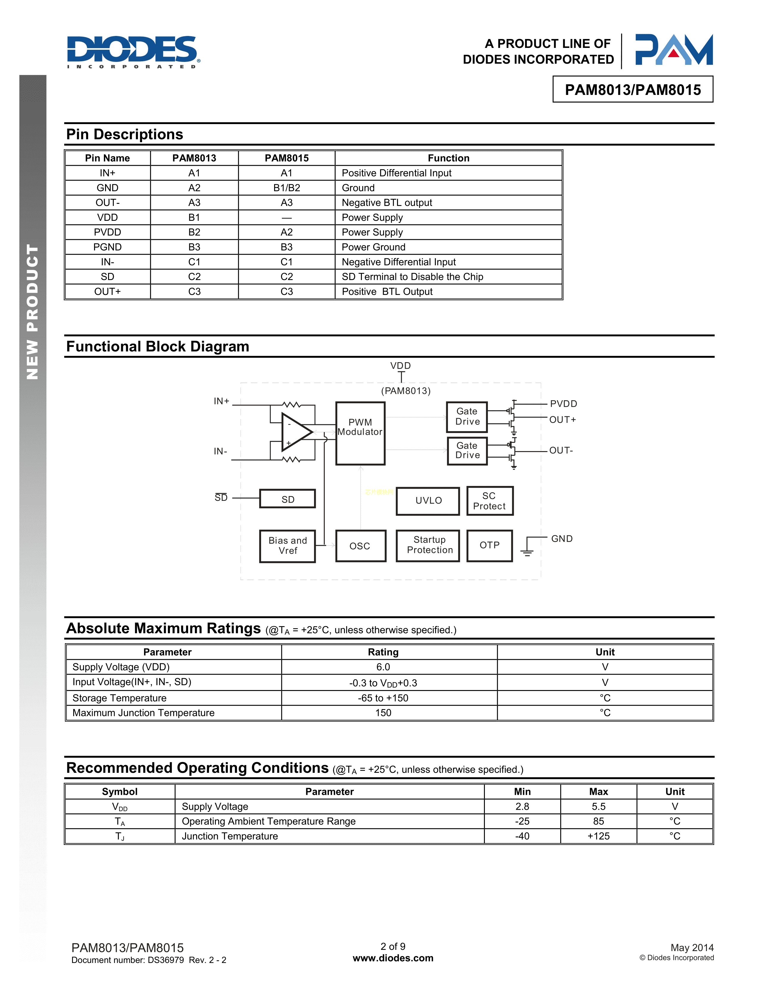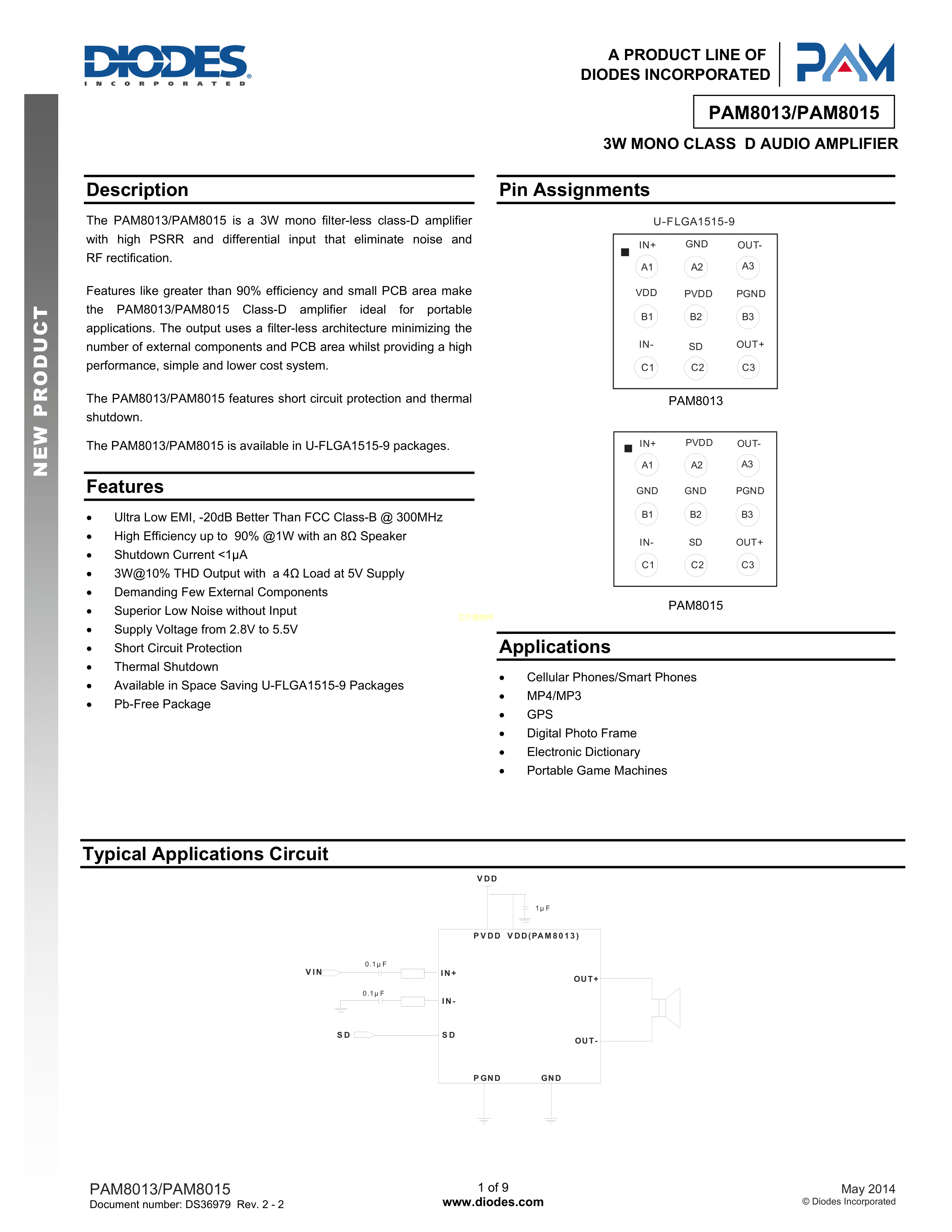 PAM8013AKR数据手册U-FLGA1515-9封装DIODES(美台)PDF规格书,中英文下载